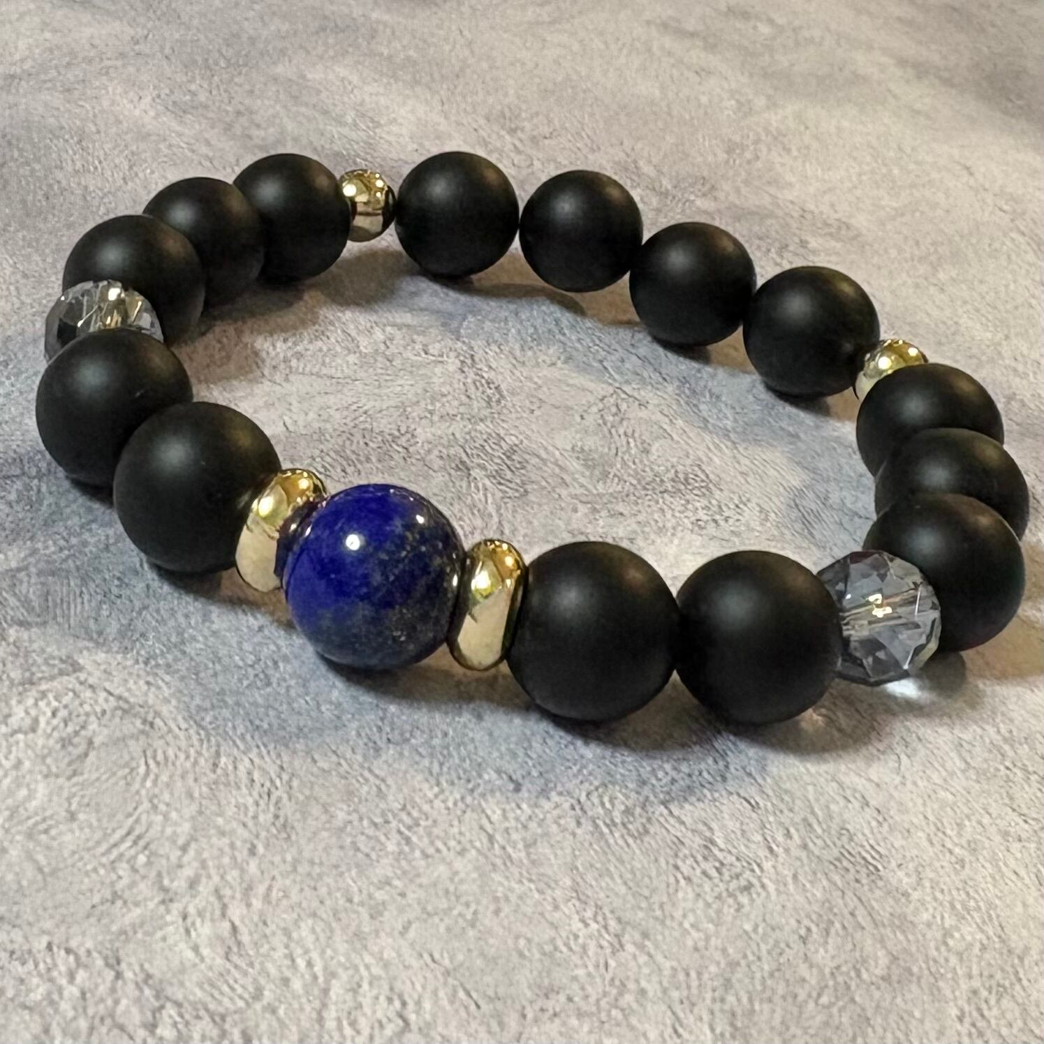 ラピスラズリ×マットオニキスお守りデザインブレスレット