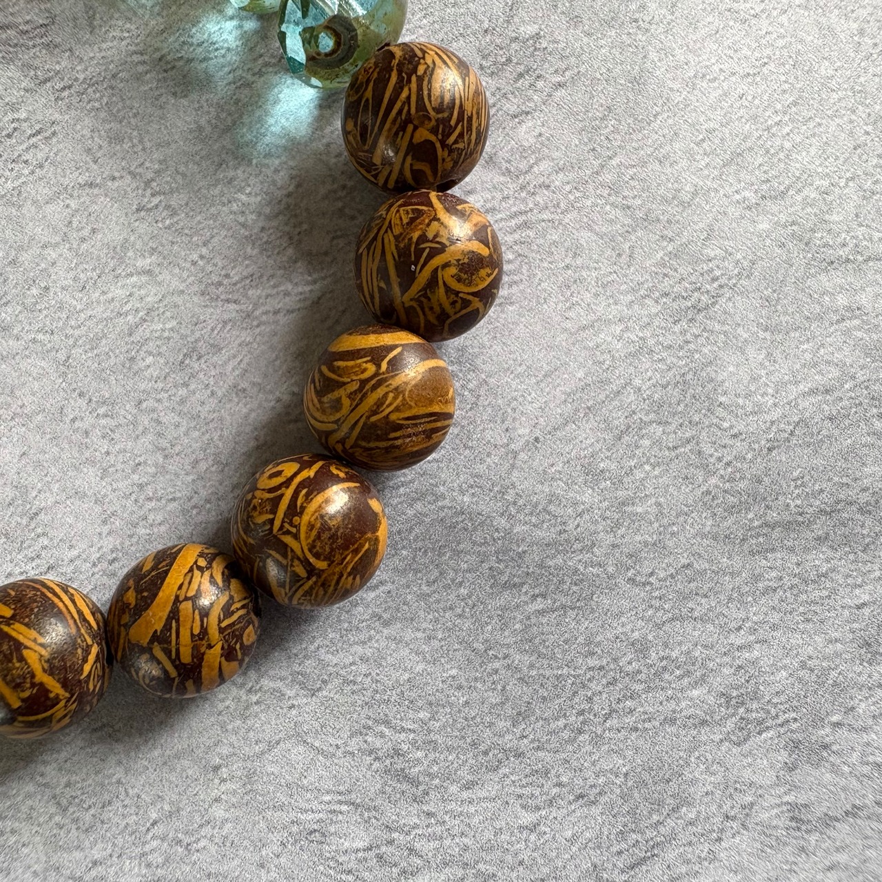 天然石、アンティークガラスビーズ、ウッドビーズなどの異なる素材を組み合わせて男女問わず身につけられるファッションデザインブレスレットです。