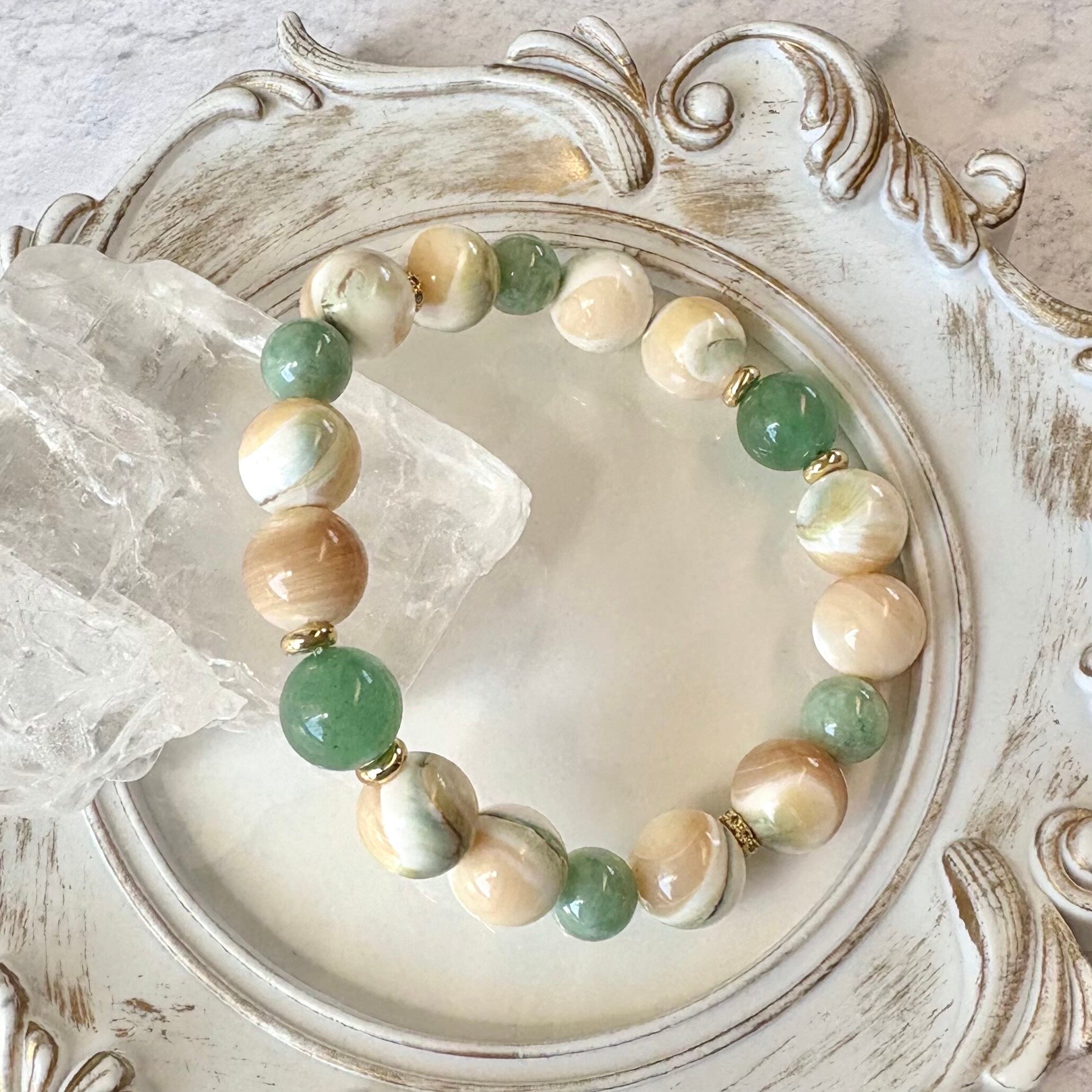 summerブレスレット✶マザーオブパールグリーンMIX×グリーンアベンチュリン×ビルマ翡翠のデザインブレスレット