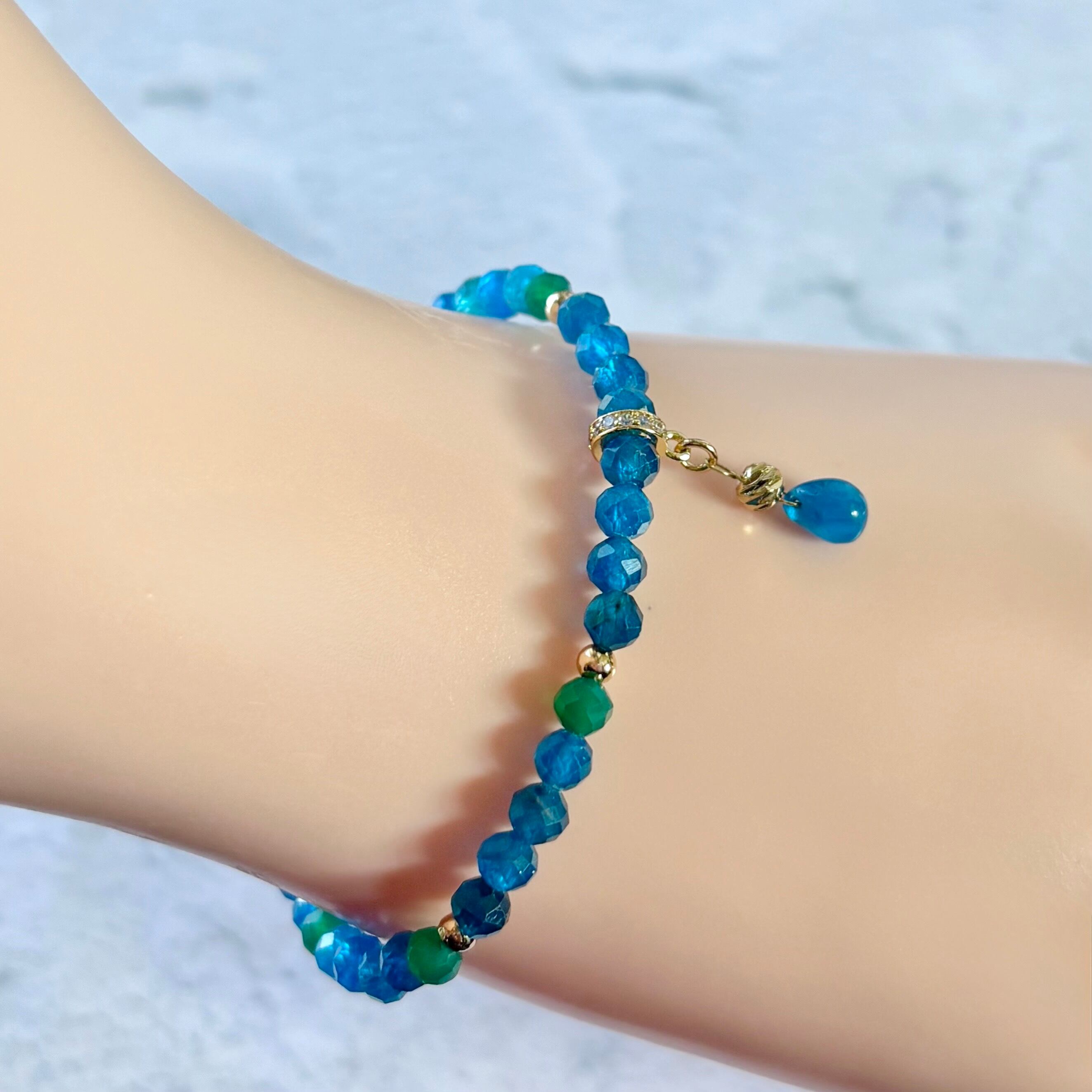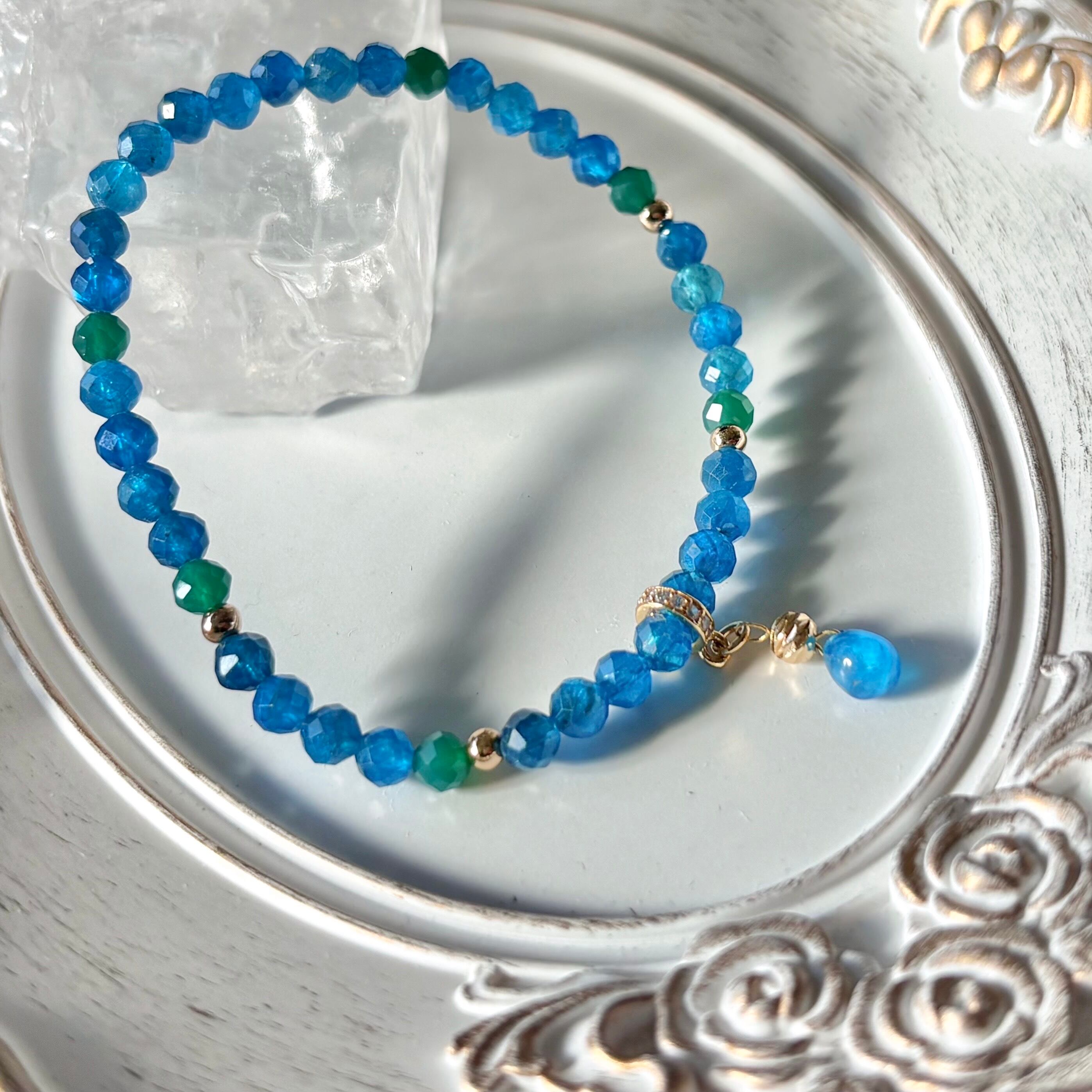 #天然石ブレスレット #パワーストーンブレスレット #アパタイト #ネオンブルーアパタイト #グリーンオニキス #華奢ブレスレット #ブルー