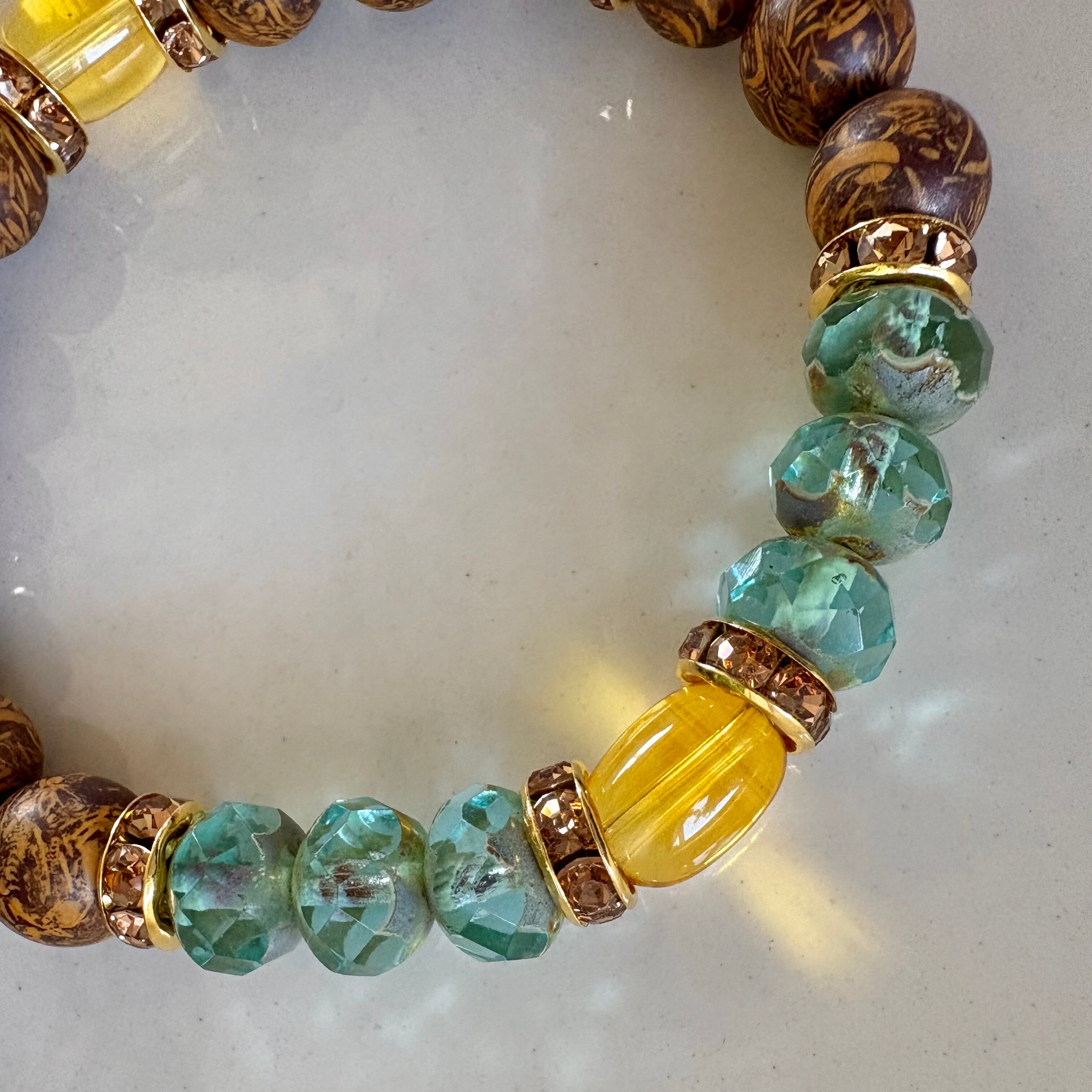 シトリン&アクアブルーチェコガラス × エレファントスキンジャスパーデザインブレスレット