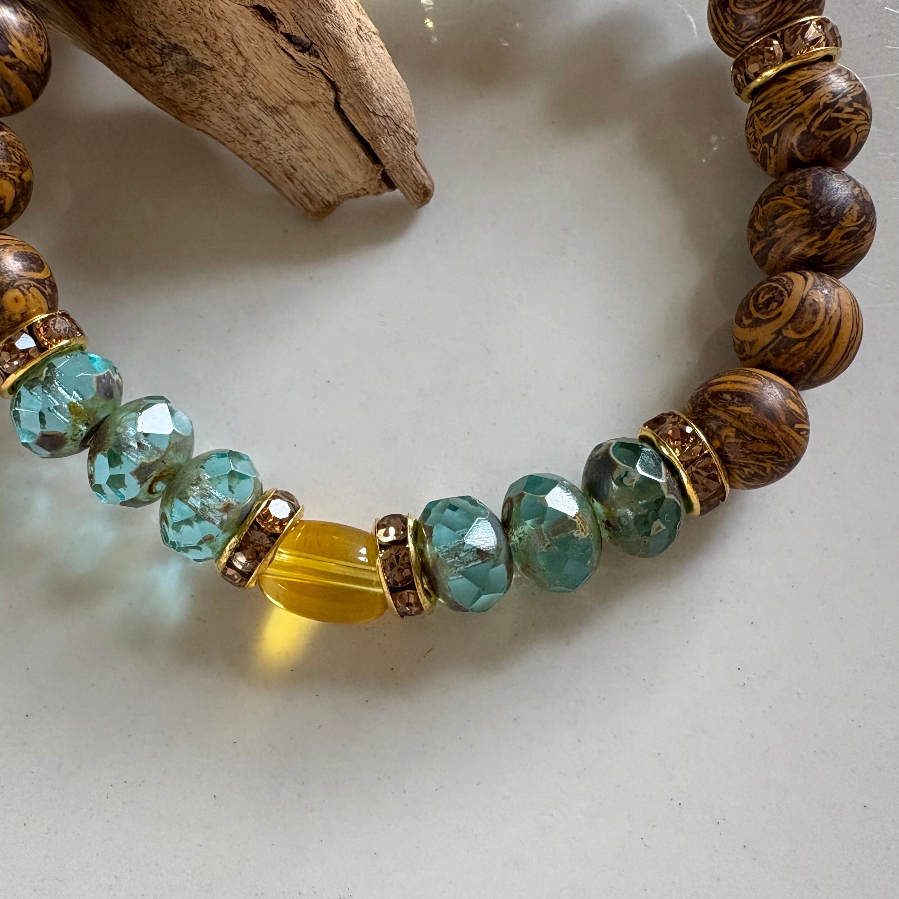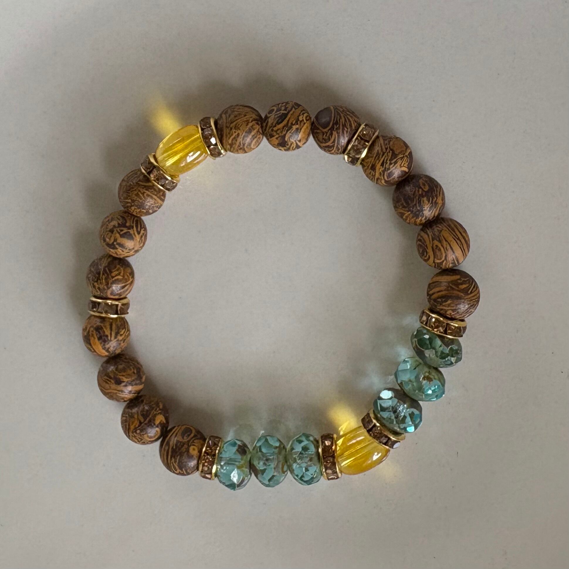 シトリン&アクアブルーチェコガラス × エレファントスキンジャスパーデザインブレスレット