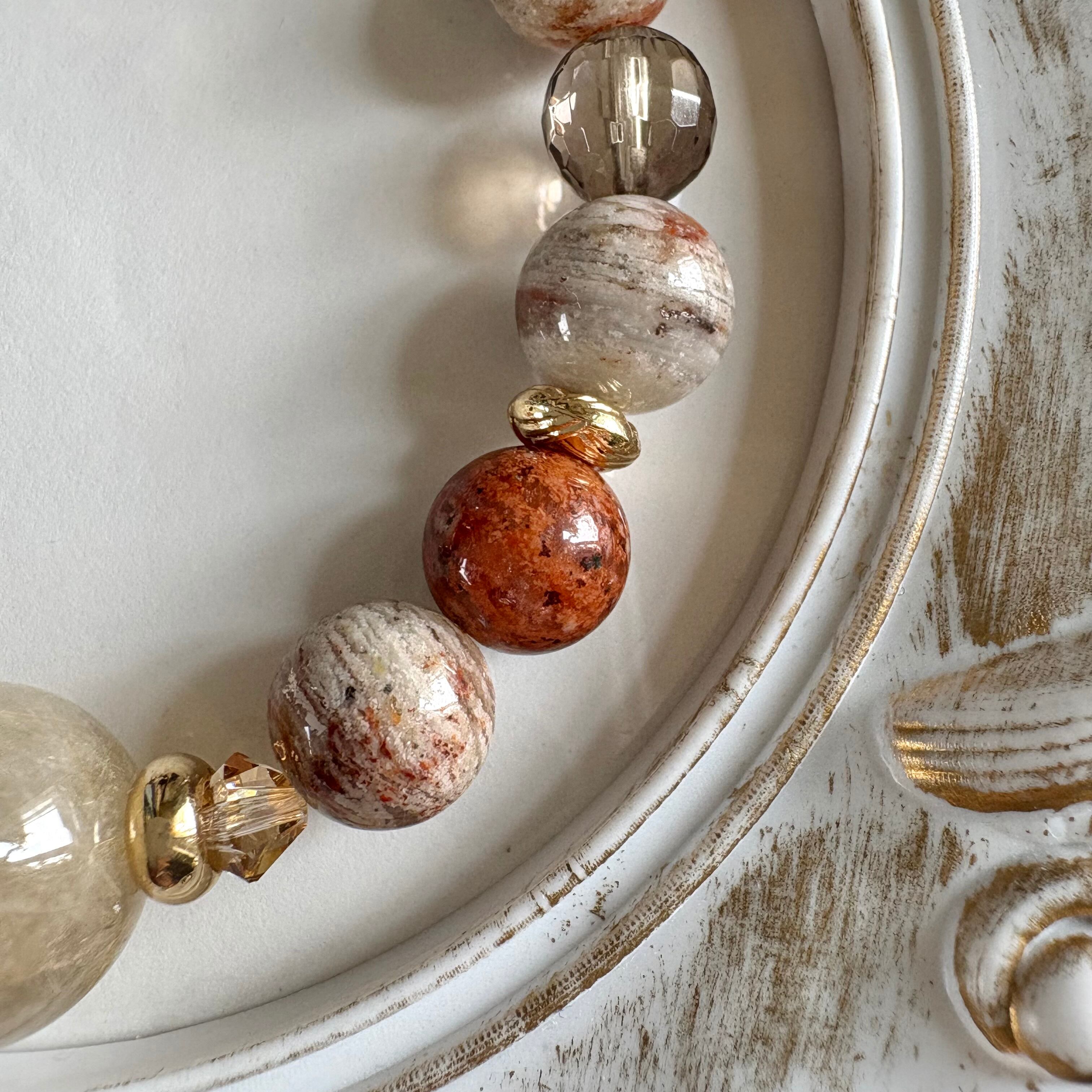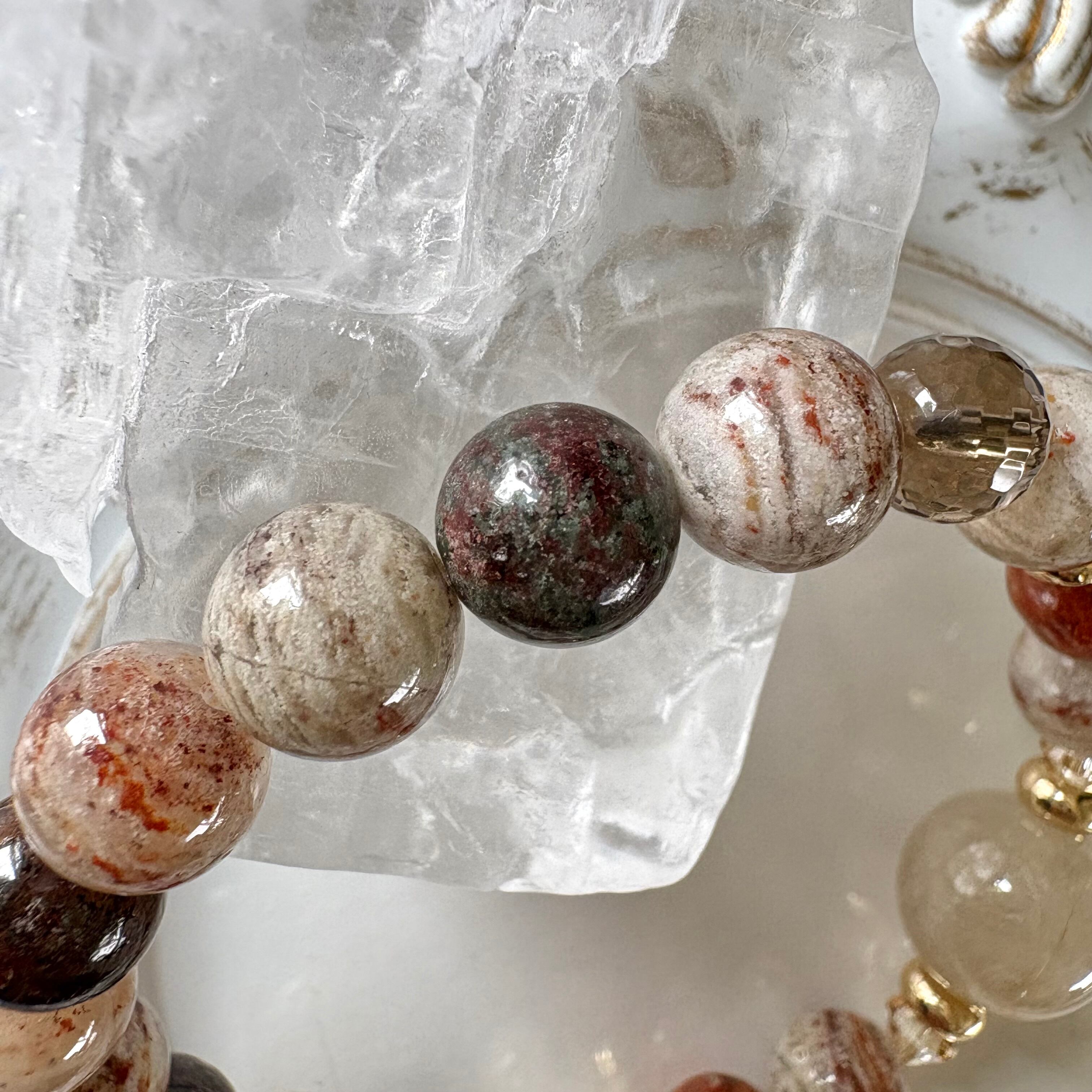 正財運をつかむ✶エレスチャルクォーツ×千層ガーデンクォーツ×ガーデンクォーツ×スモーキークォーツのデザインブレスレット