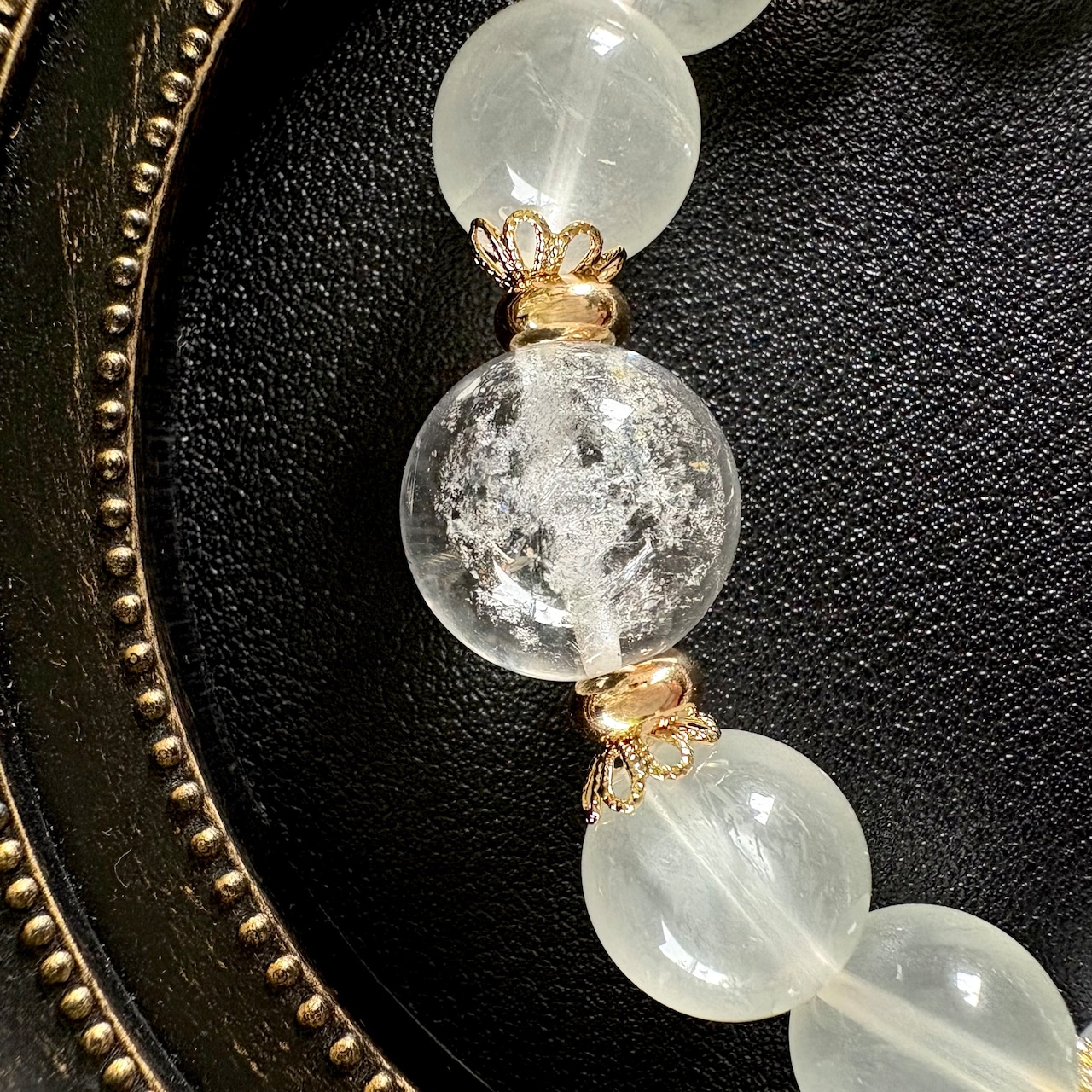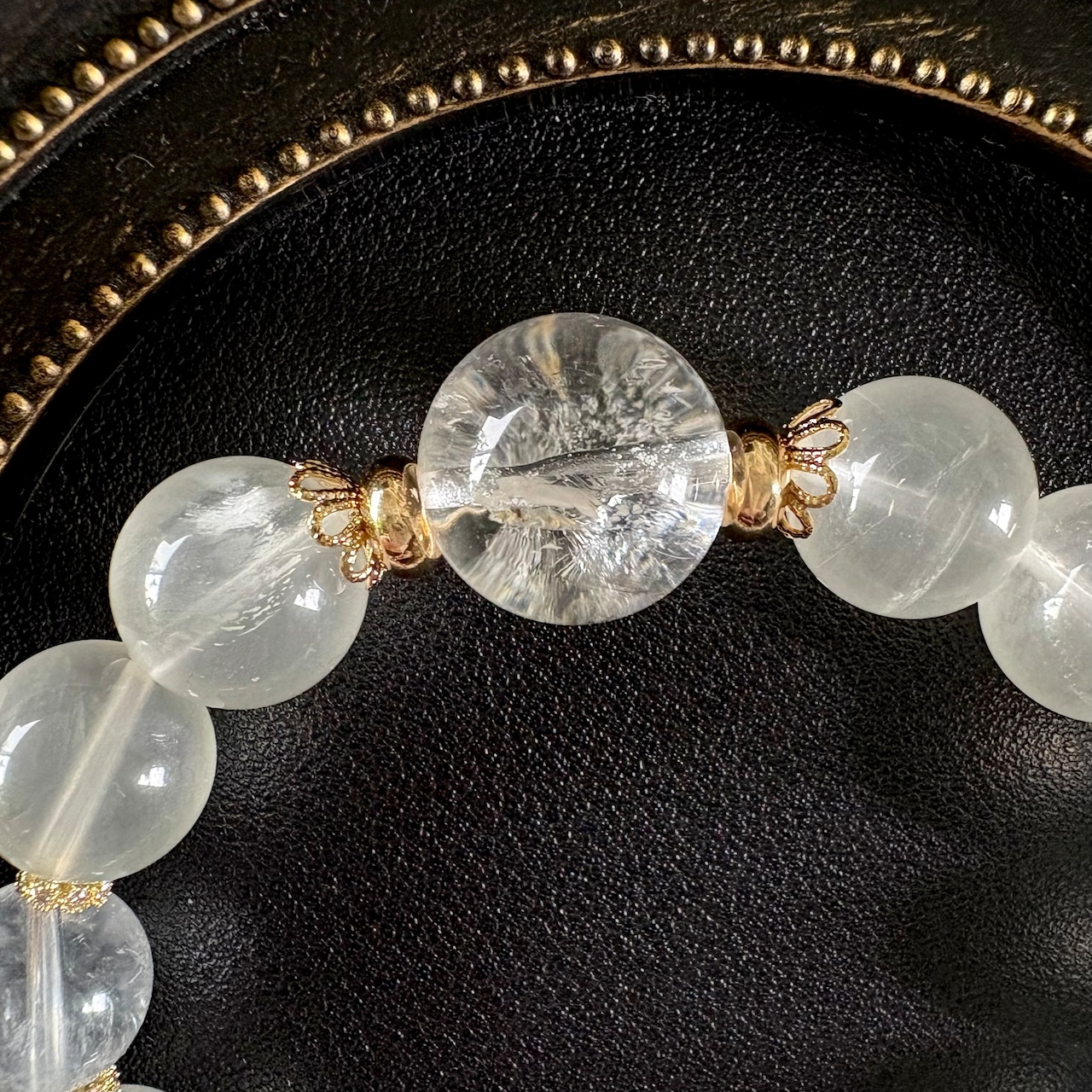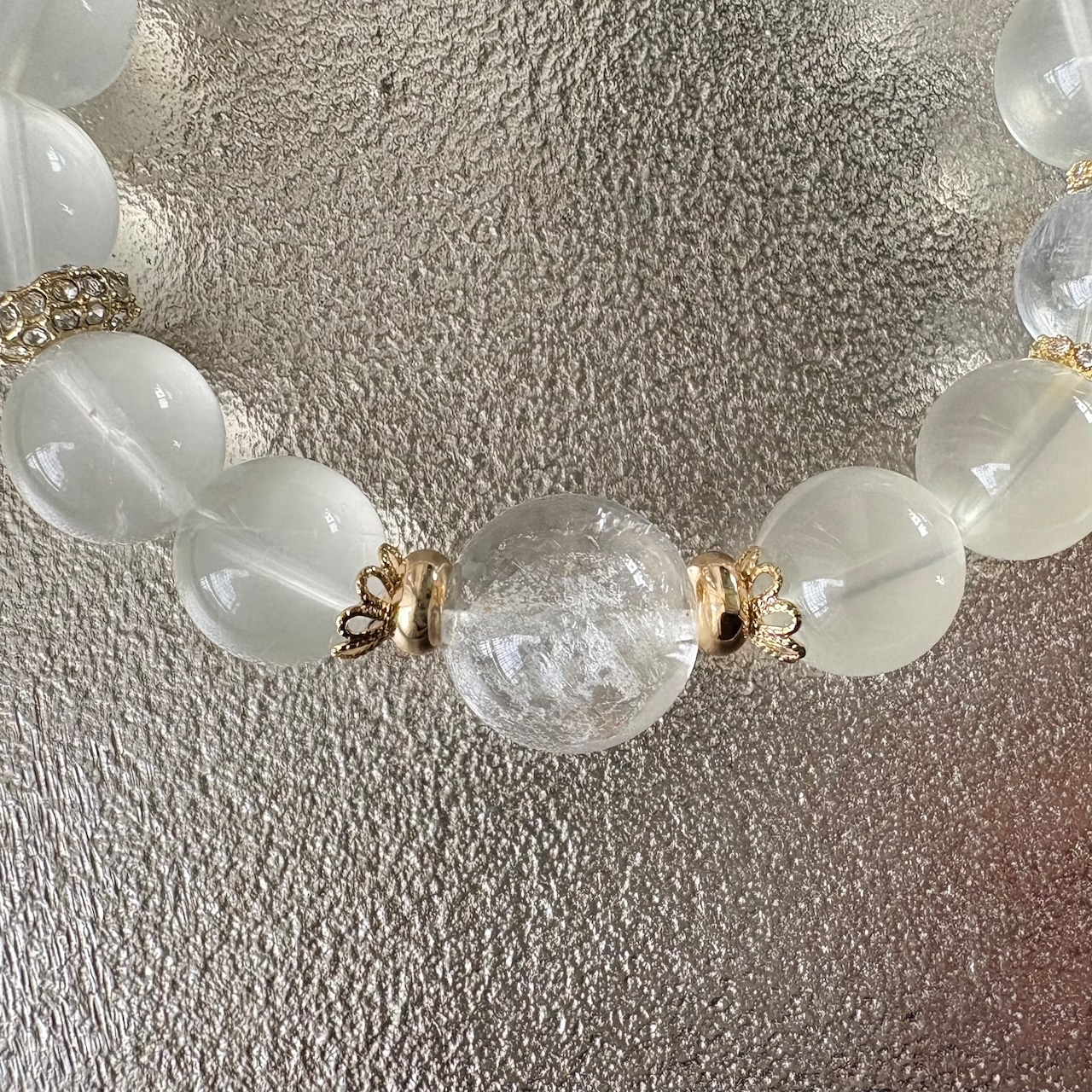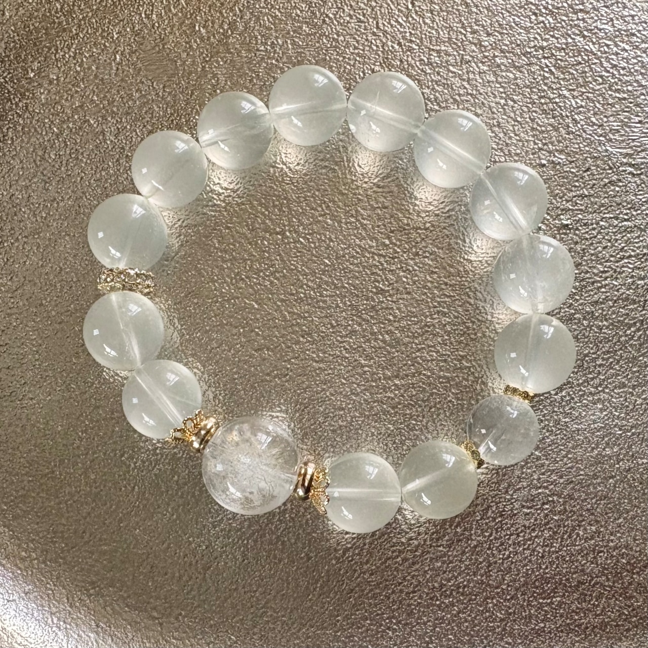 オウロヴェルデクォーツ×エレスチャルクォーツ×ヒマラヤ産アイスクォーツのデザインブレスレット