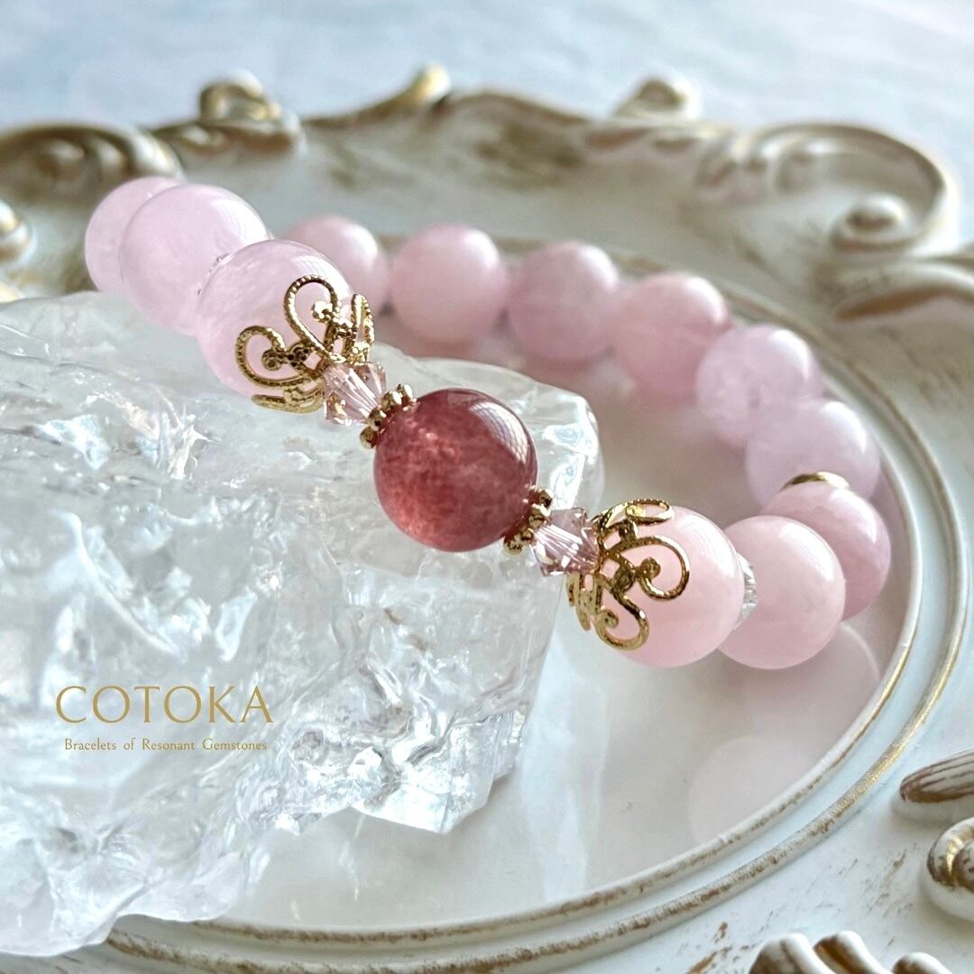 恋愛だけではなく、家族・友人・職場での人間関係などの過去の傷を癒し、愛のエネルギーで前向きな気持ちになり自分を愛し周りにも優しく自然と愛の輪が広がっていくようなイメージのテーマのブレスレットです。