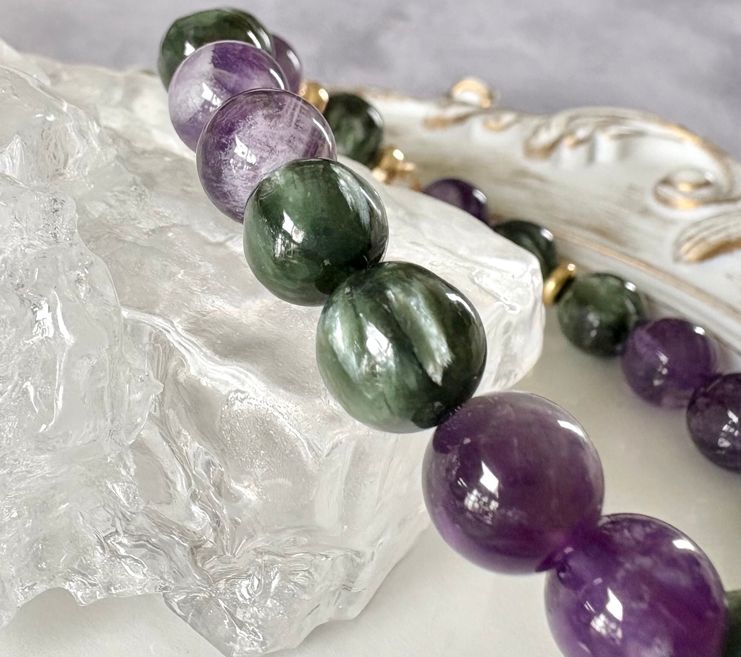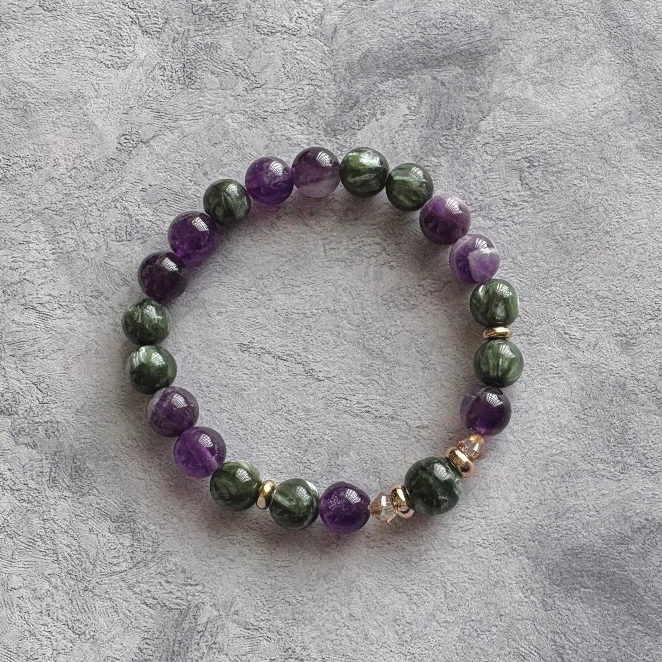 天使の羽根がそっと寄り添う✶セラフィナイト×ケープアメジストのデザインブレスレット