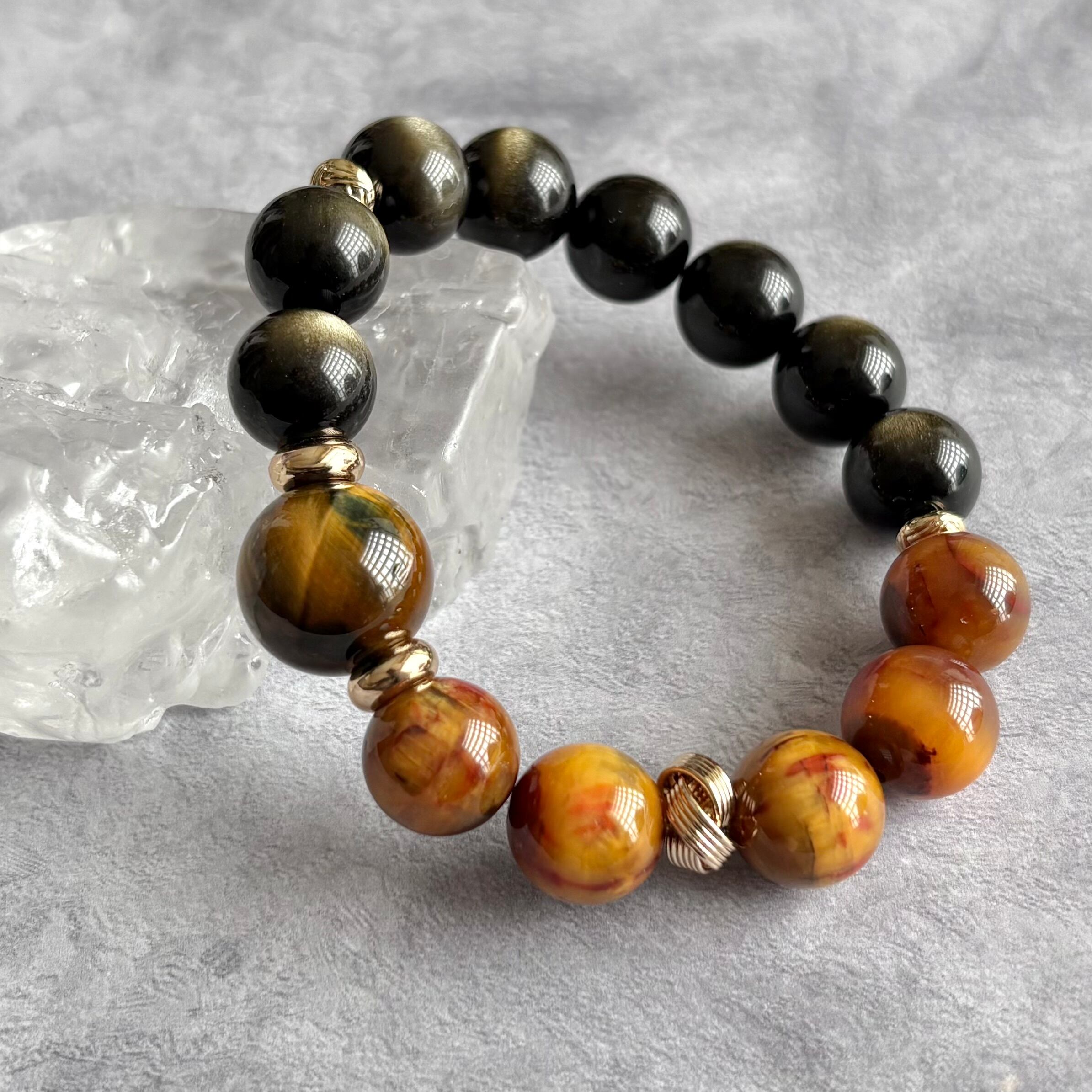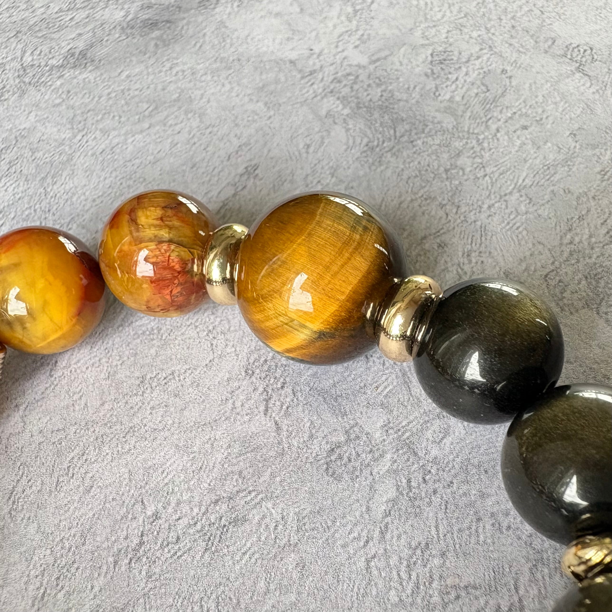 イエロータイガーアイ × ゴールデンピーターサイト × ゴールデンオブシディアン