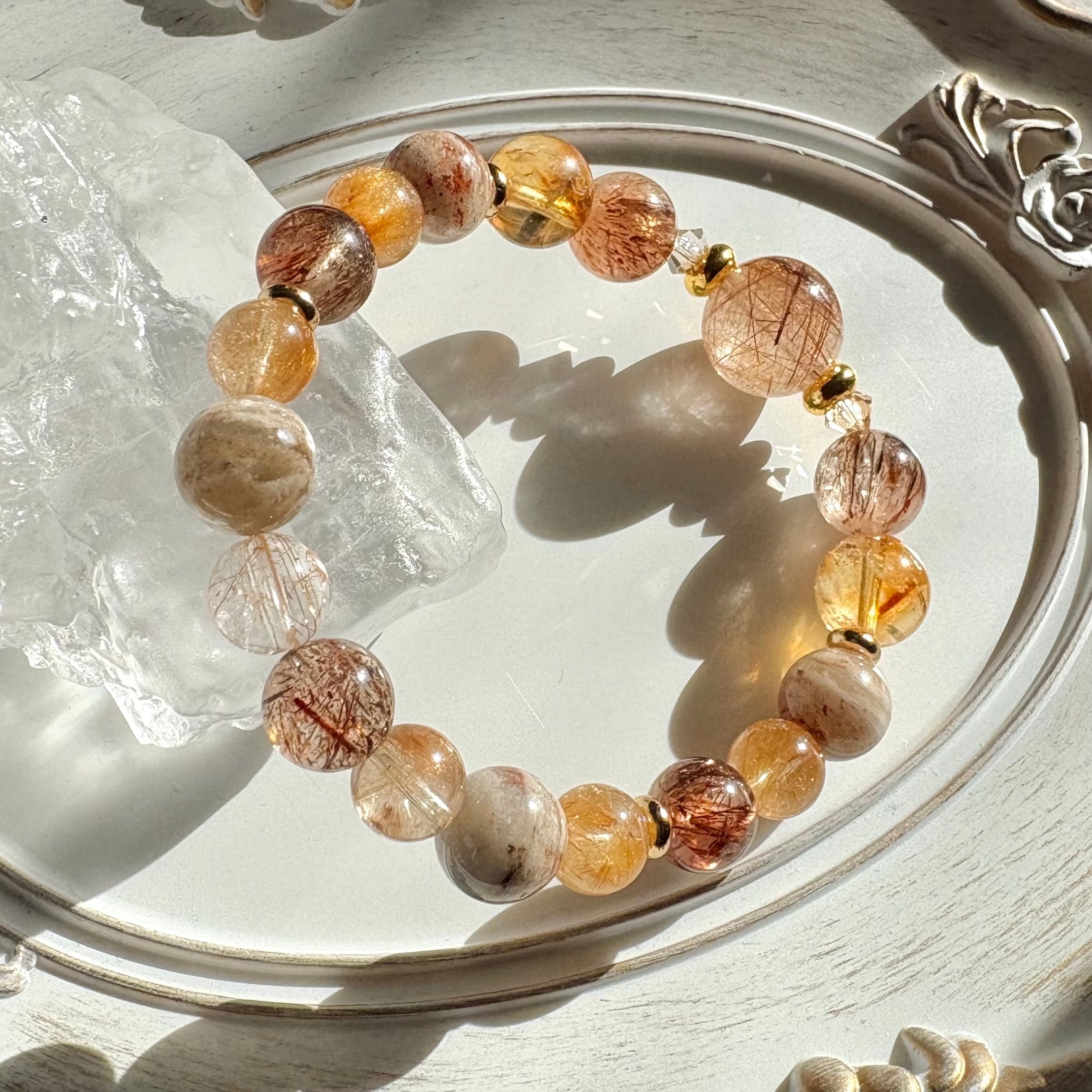 #天然石ブレスレット #パワーストーンブレスレット #ルチルクォーツ #シトリン #千層ガーデンクォーツ #ブラウンルチル #金運 #金運ブレスレット #開運