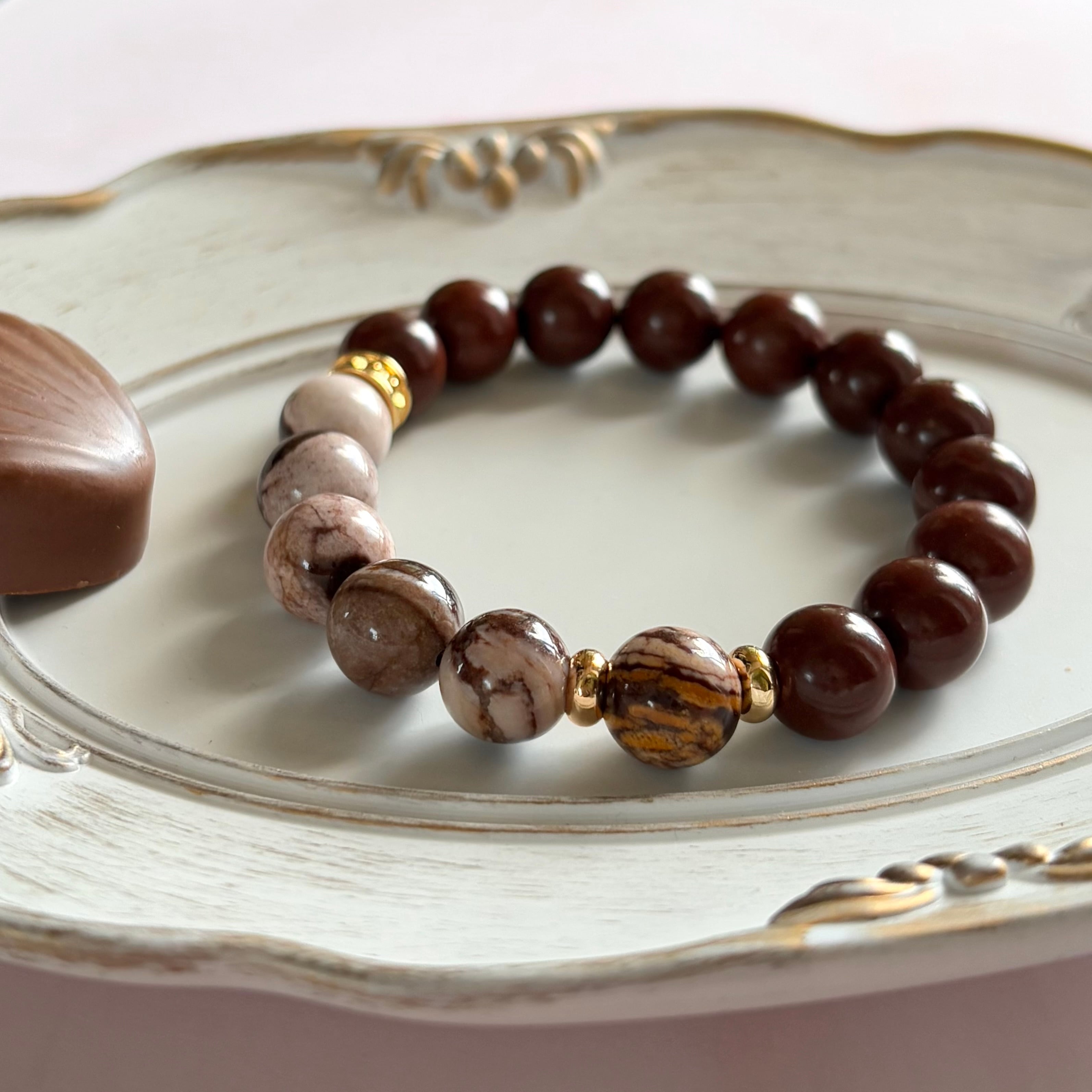 ビター&カプチーノチョコレートブレスレット✶セドナストーン × カプチーノジャスパー 10mm