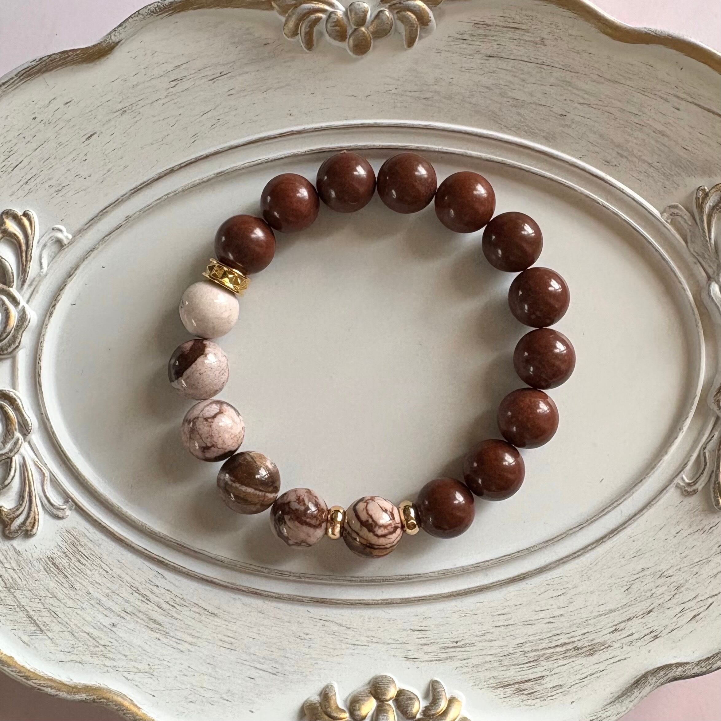予約販売✴︎ビター&カプチーノチョコレートブレスレット✶セドナストーン × カプチーノジャスパー 10mm