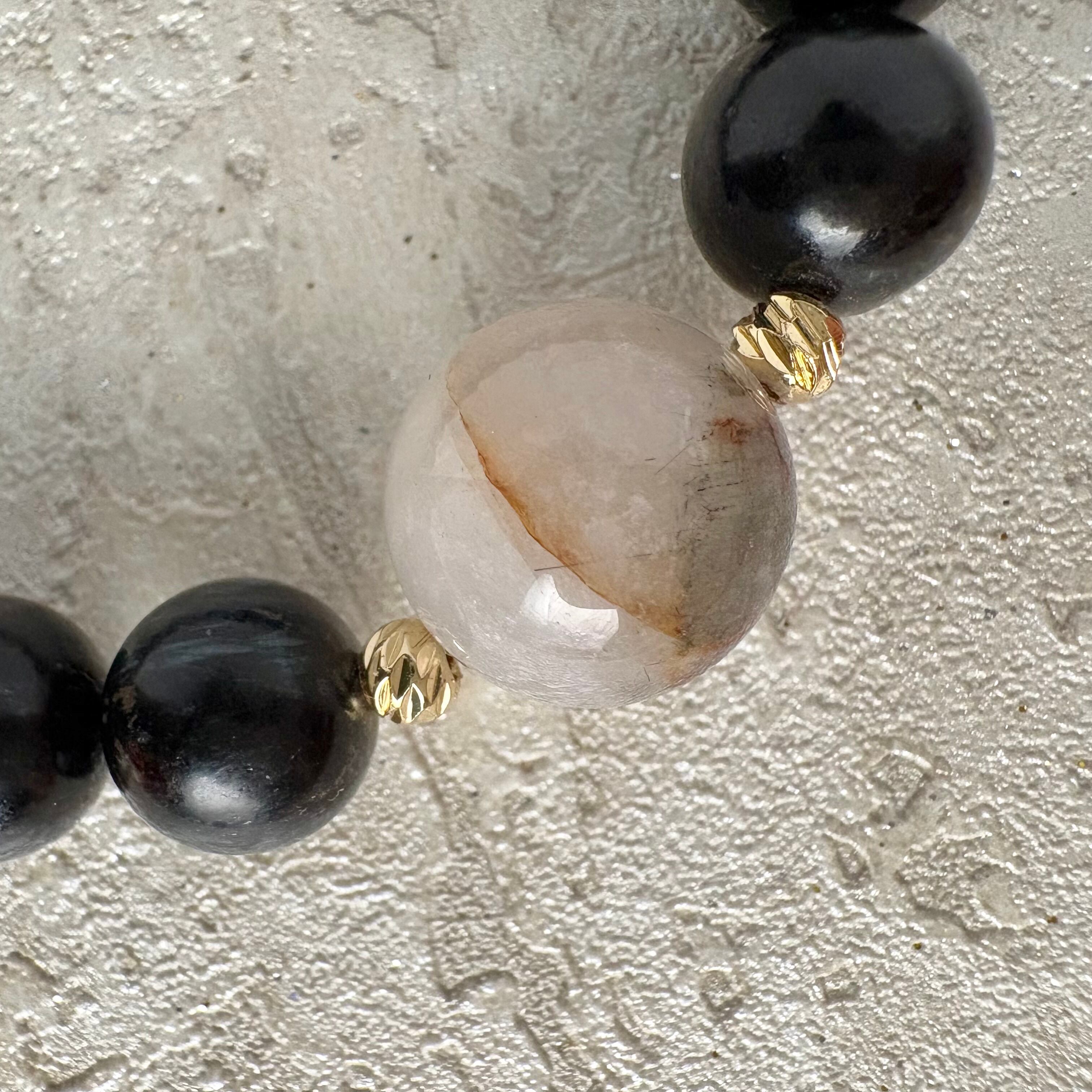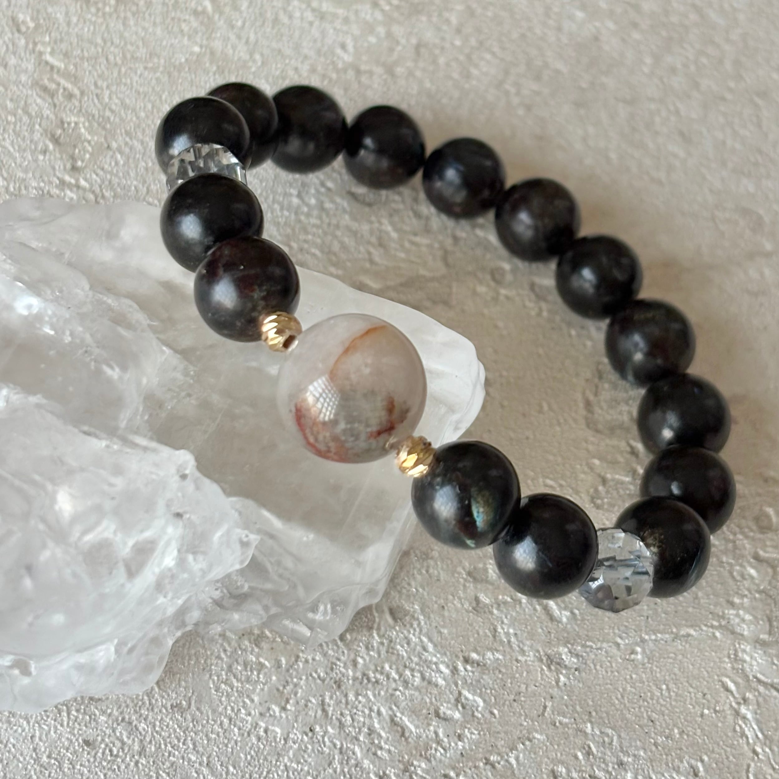 再販!最古の鉱物・魔術師の石✶グリーンランド産ヌーマイトとエレスチャルクォーツのデザインブレスレット