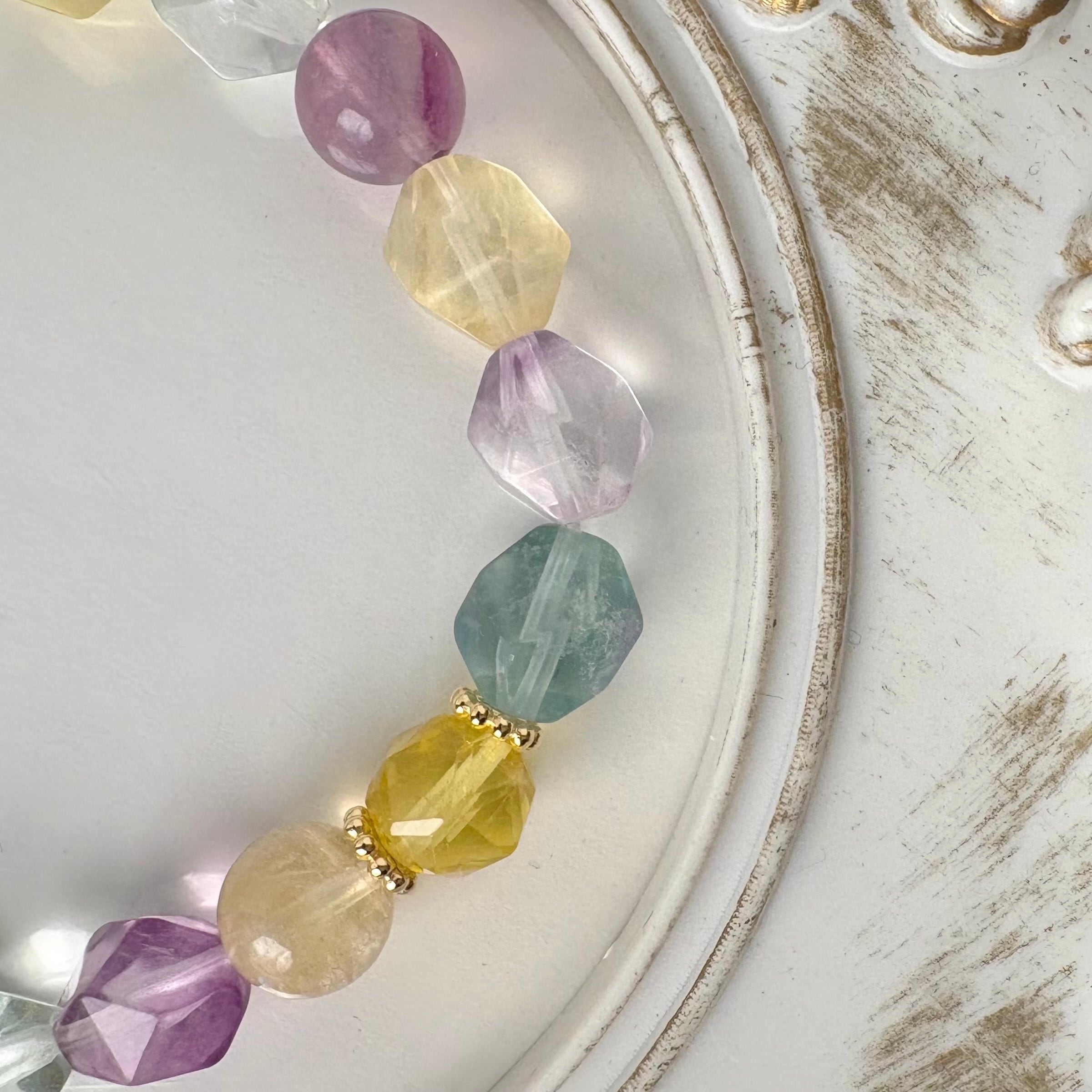 淡いパステルの輝き✴︎ライトカラーのフローライトデザインブレスレット