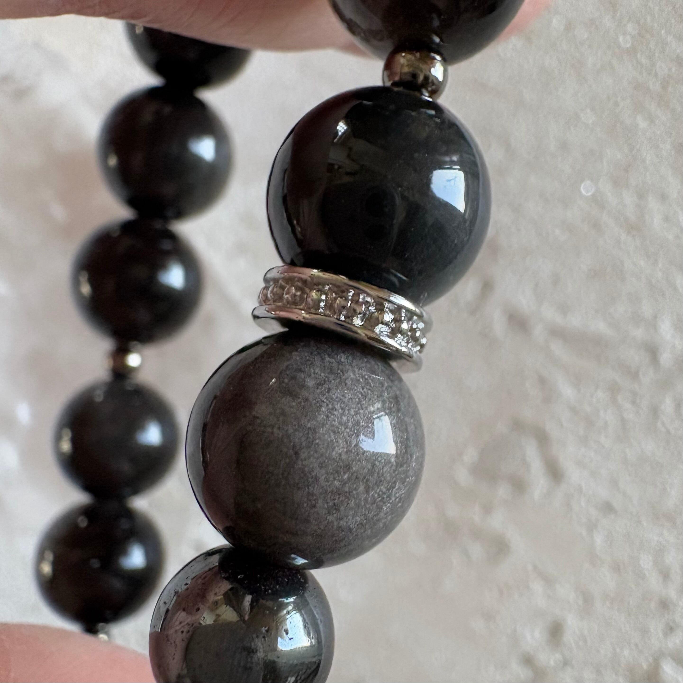 【SILENT SHADOW】シルバーオブシディアン×エレスチャルクォーツ×ヘマタイトブレスレット