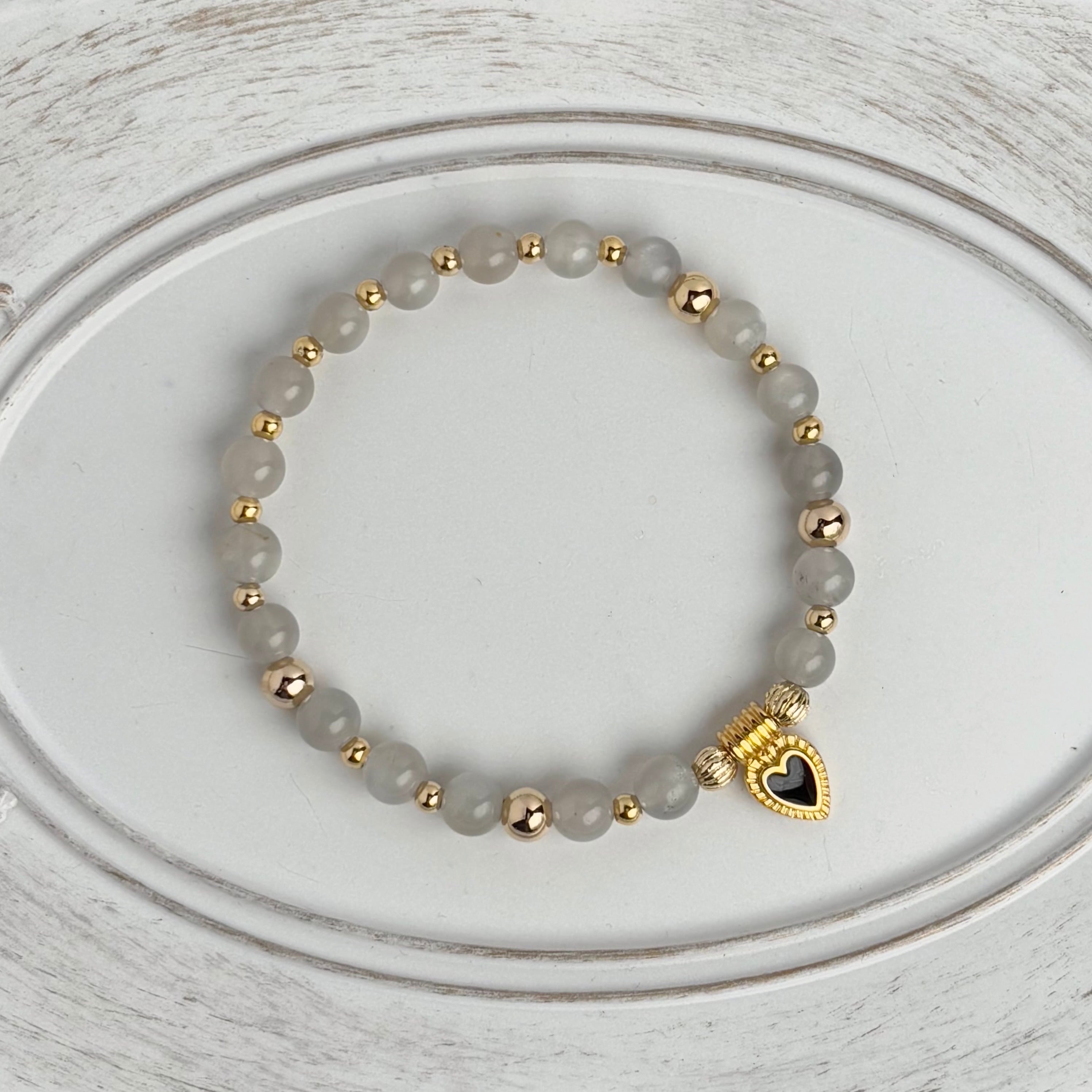 ブラックーハート ✴︎ グレームーンストーン ブレスレット