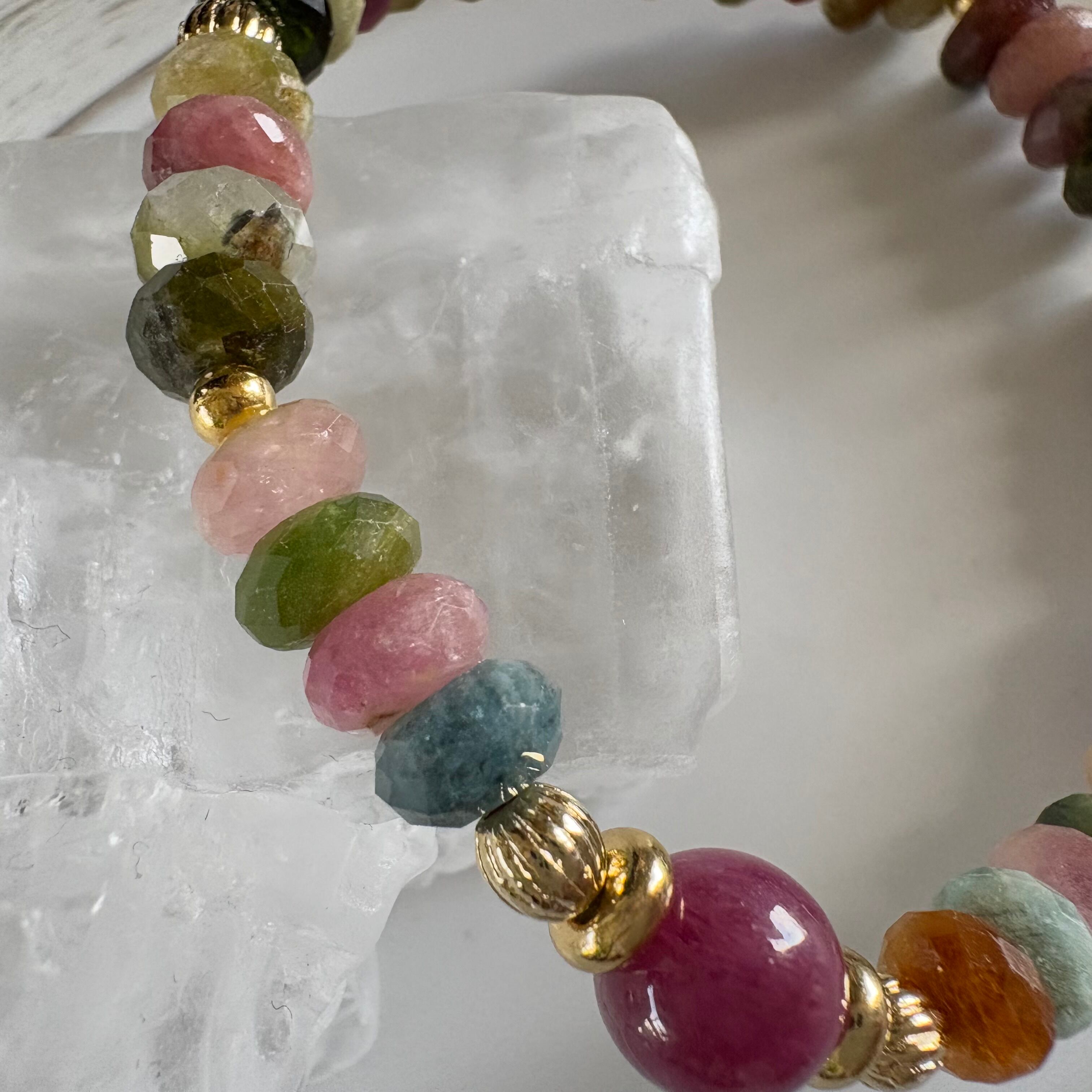 輝きが美しい✶マルチカラーのトルマリンデザインブレスレット