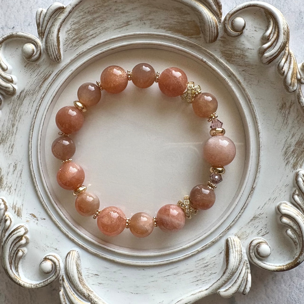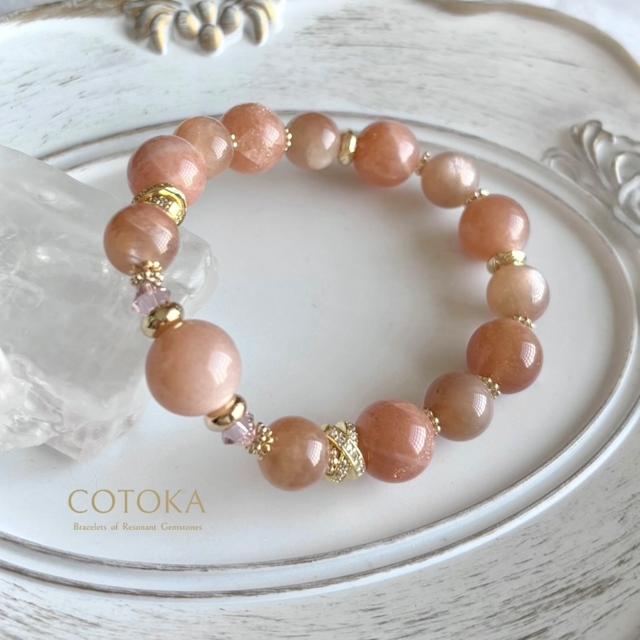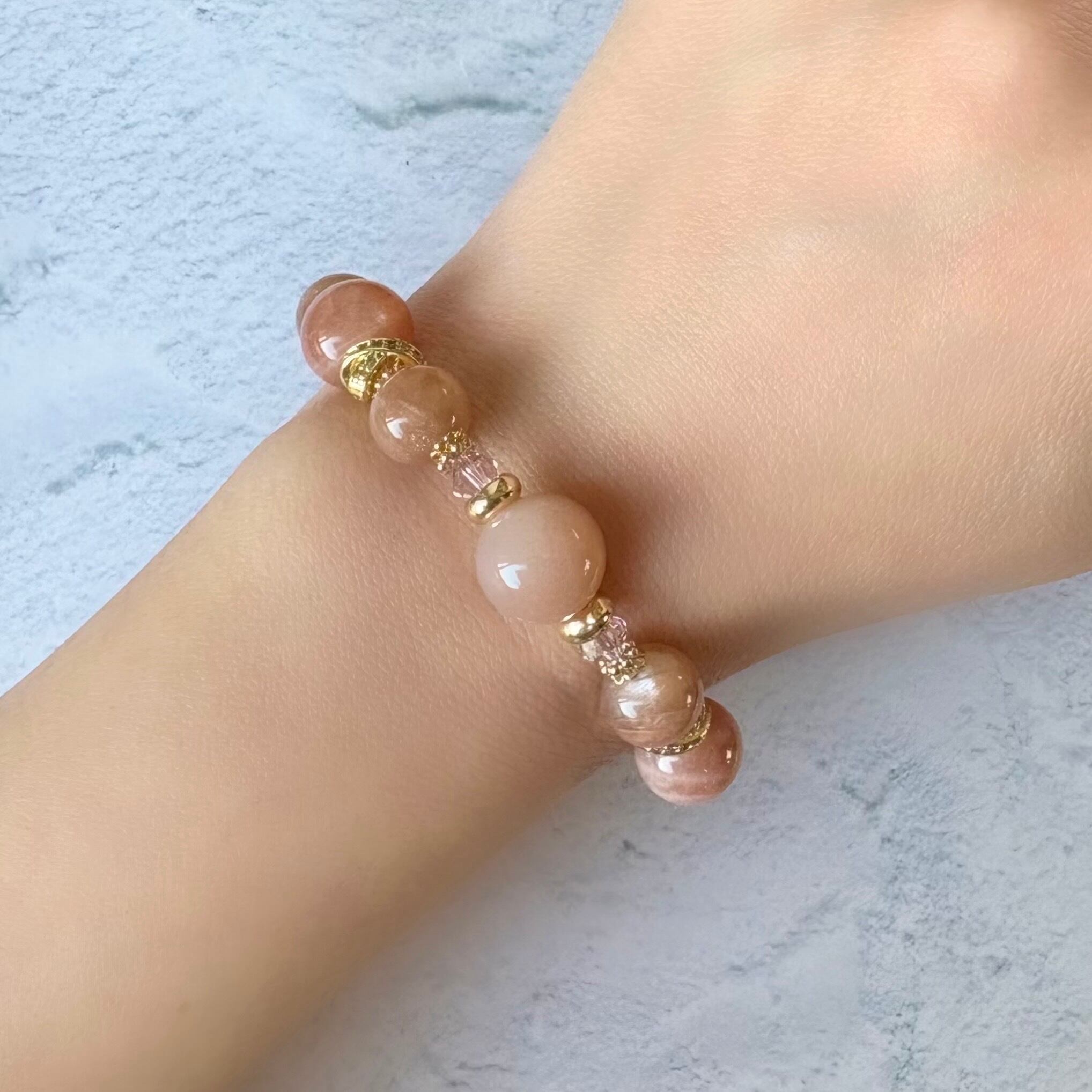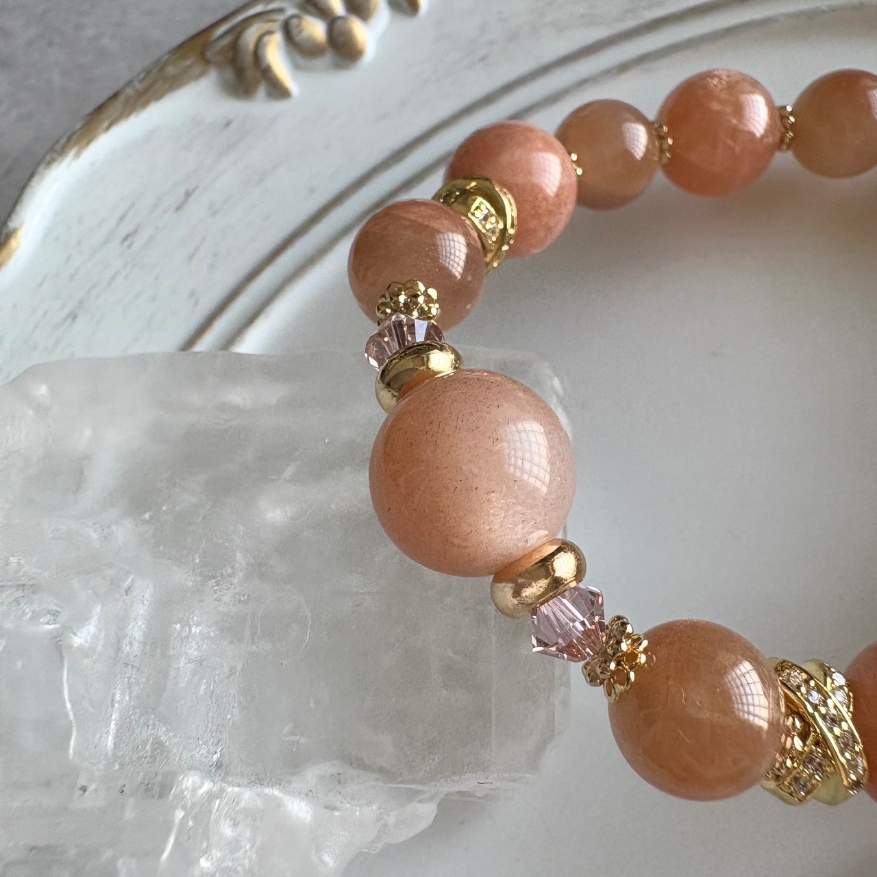 月の光をまとう✶オレンジムーンストーン×サンムーンストーン×ブラウンムーンストーンデザインブレスレット
