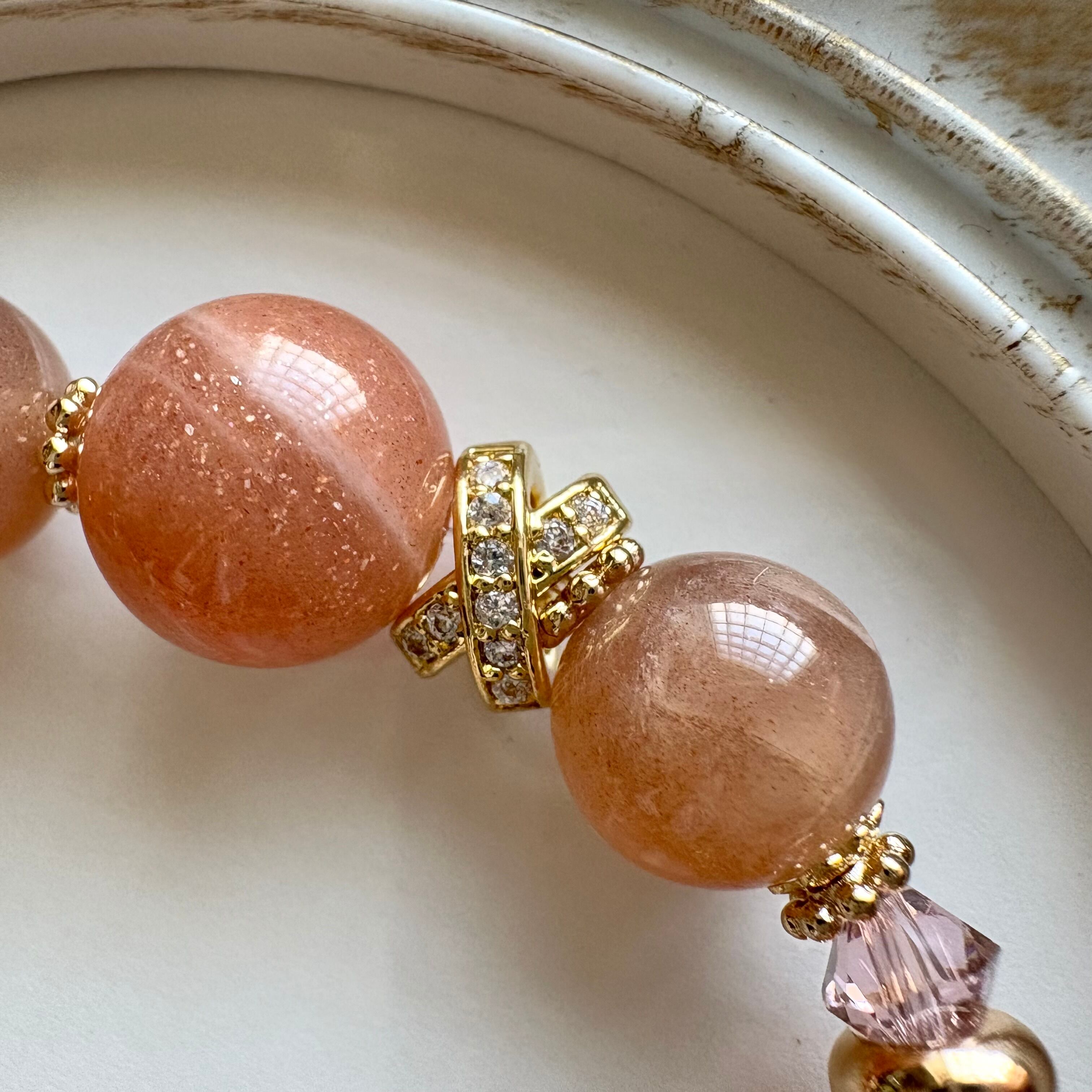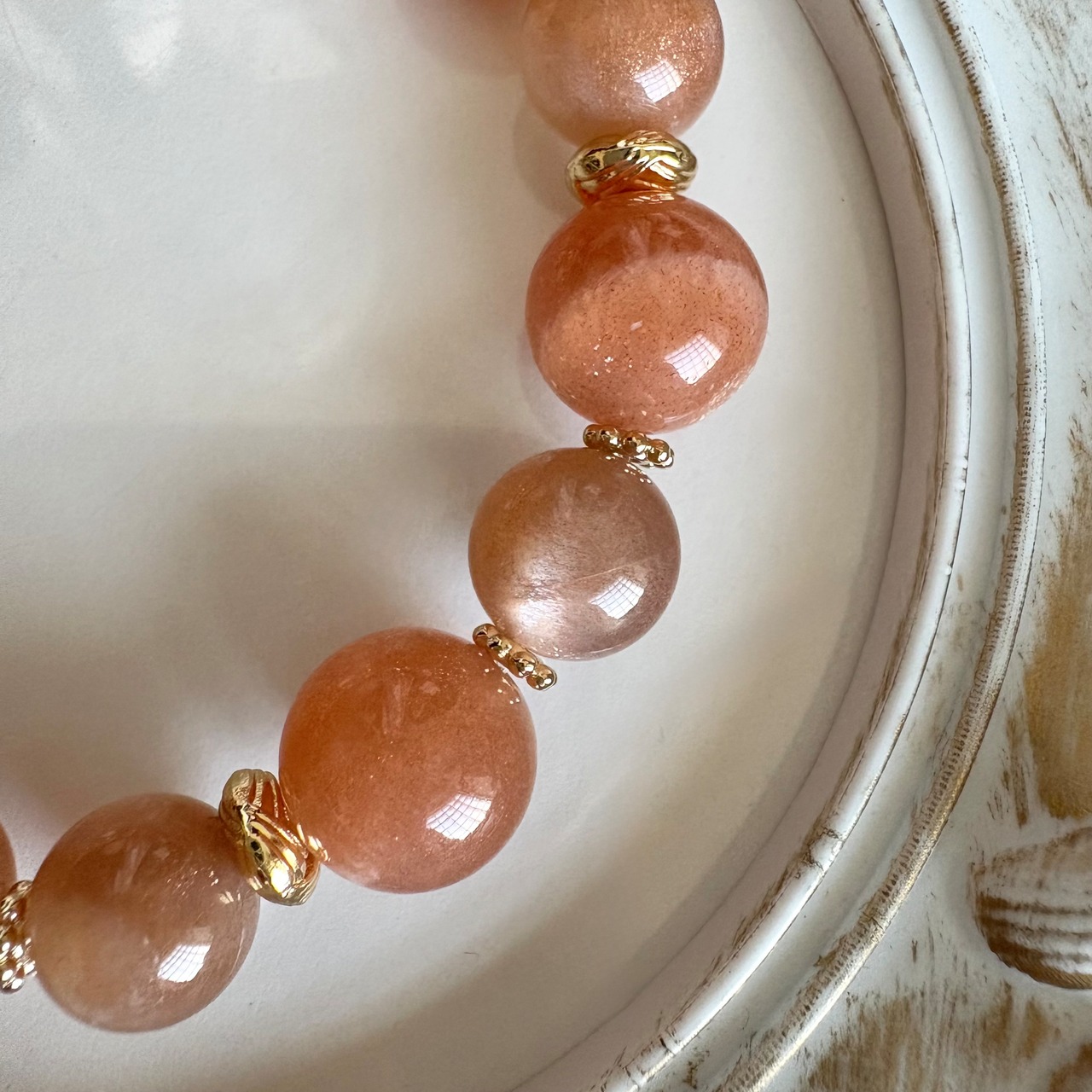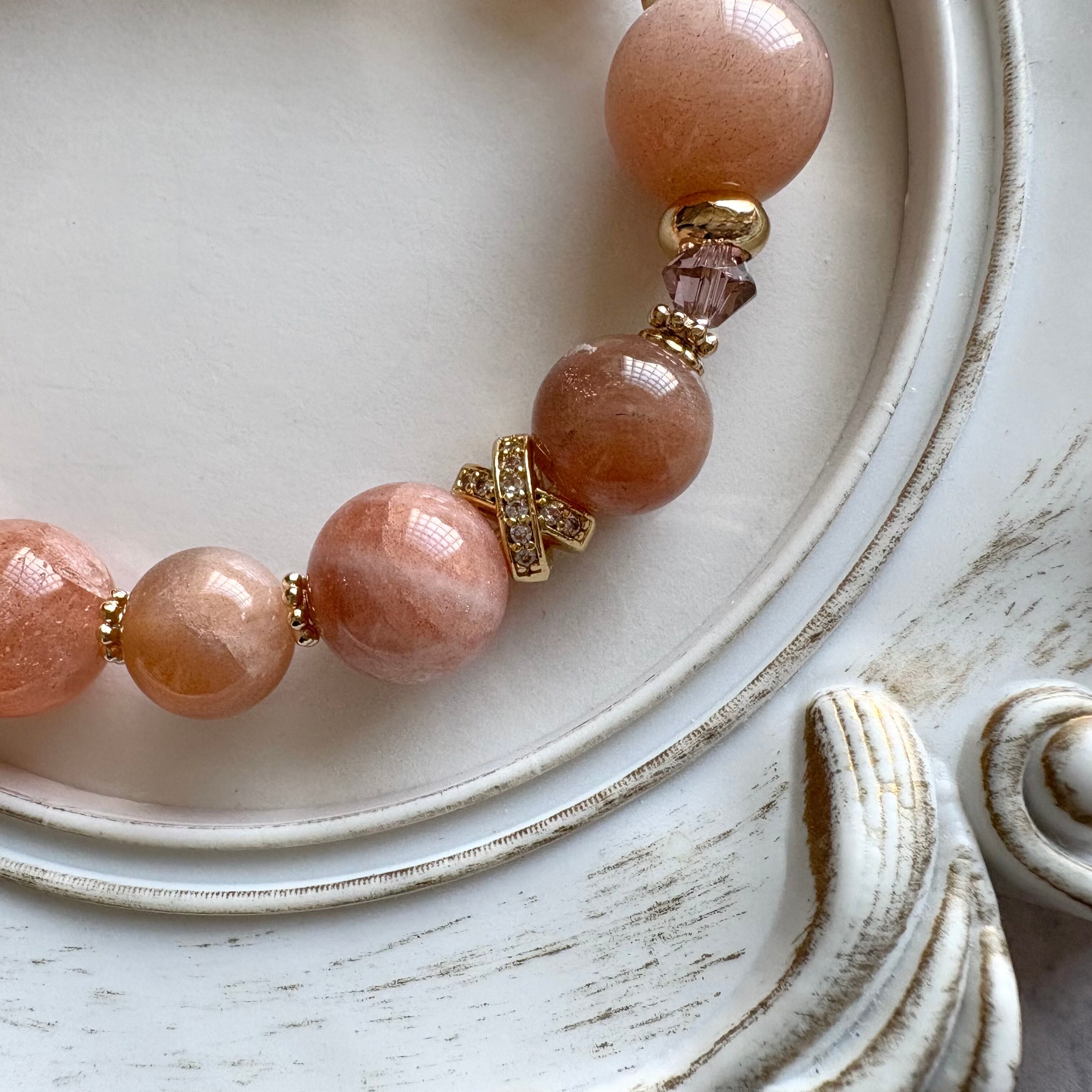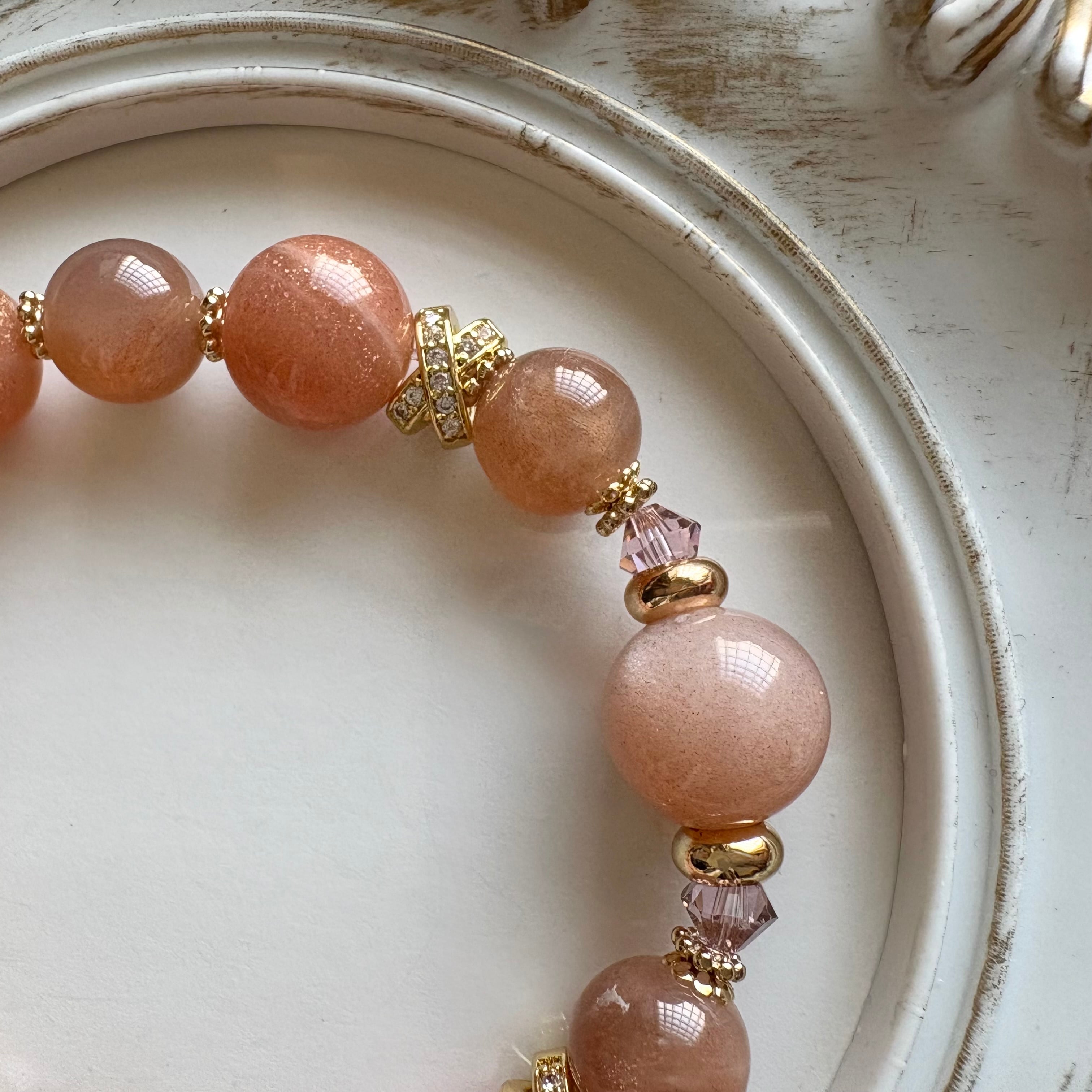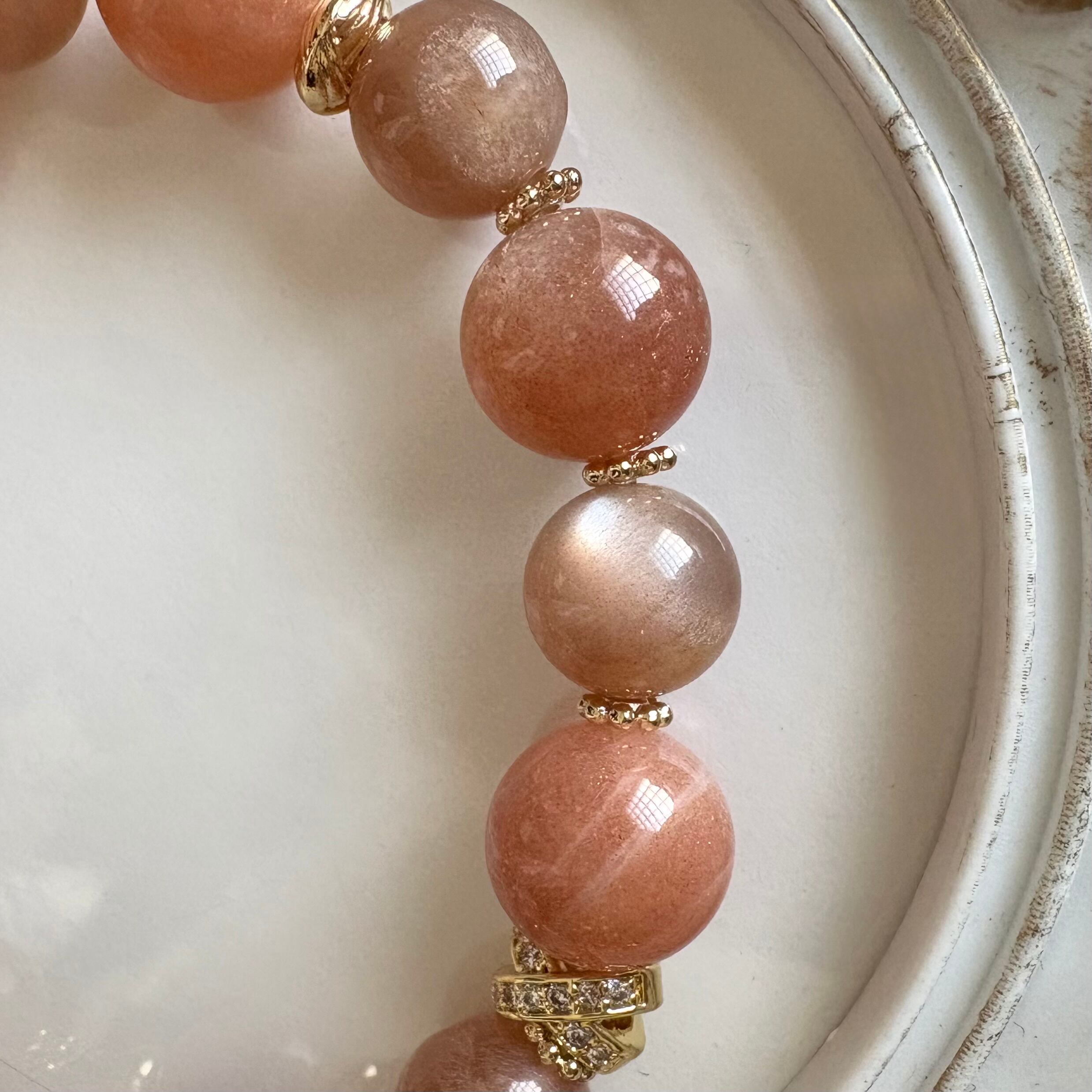 月の光をまとう✶オレンジムーンストーン×サンムーンストーン×ブラウンムーンストーンデザインブレスレット