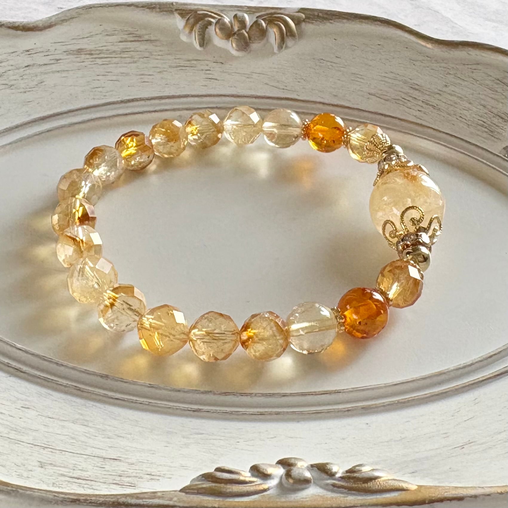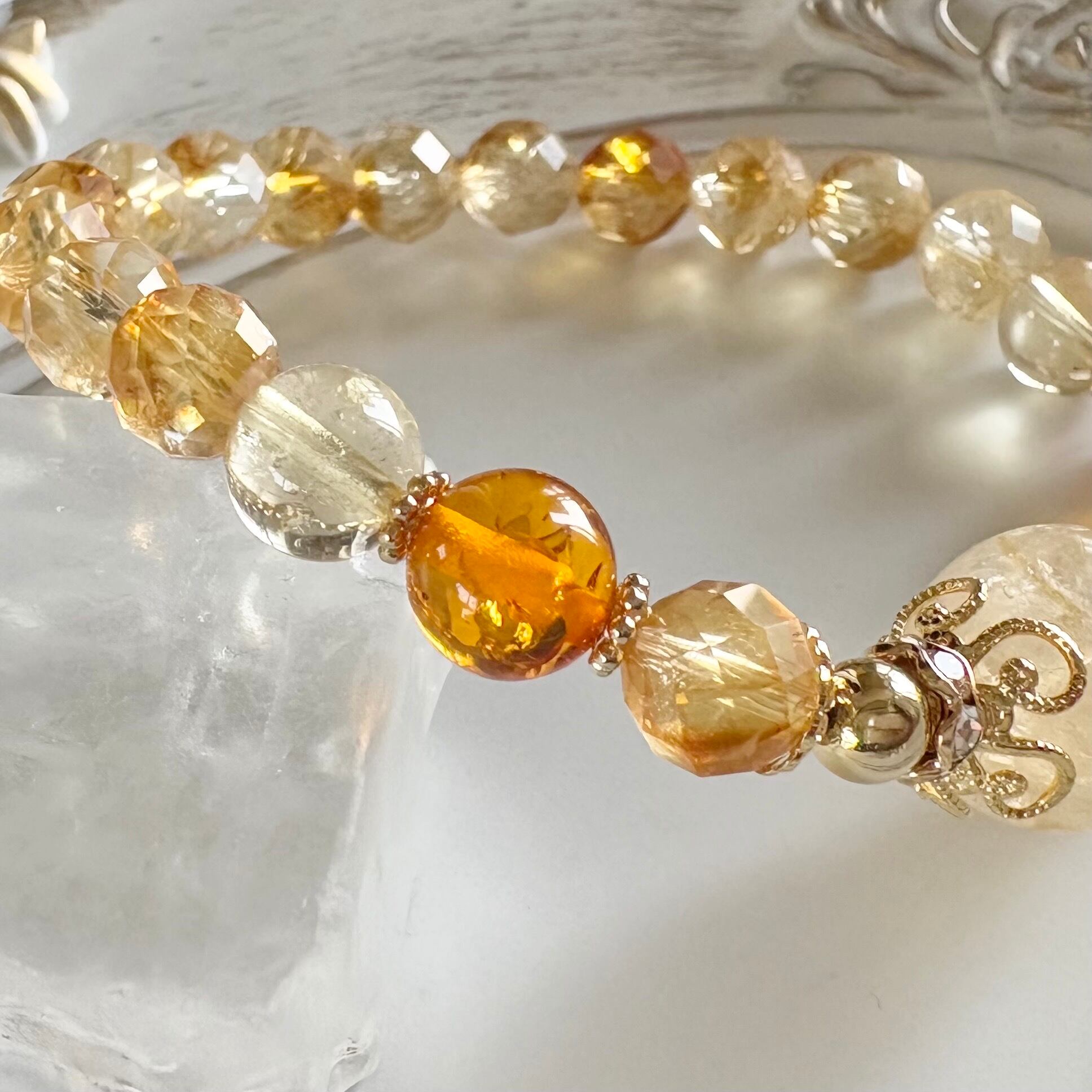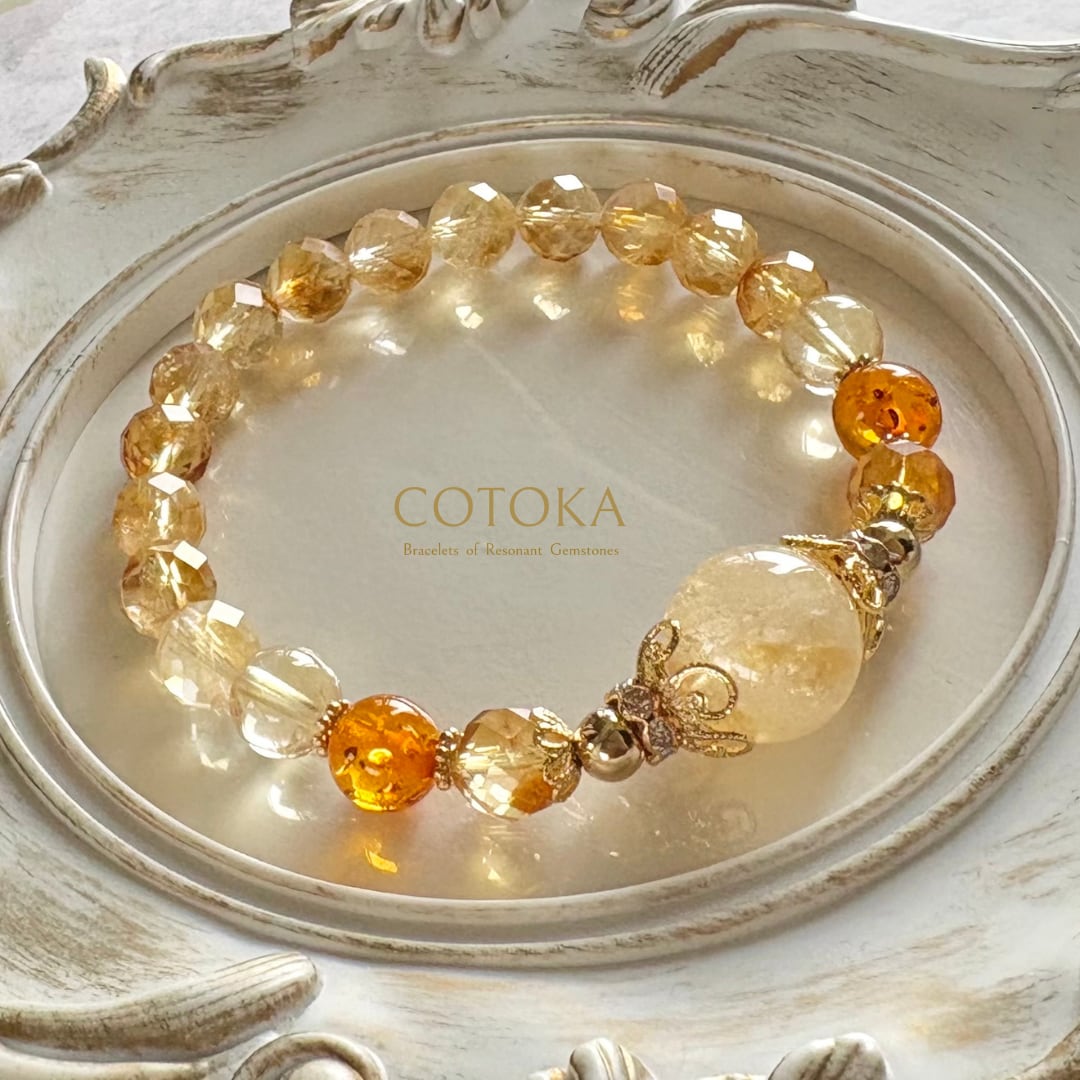 金運✴︎シトリン×アンバー(琥珀)ジュエリー✴︎デザインブレスレット