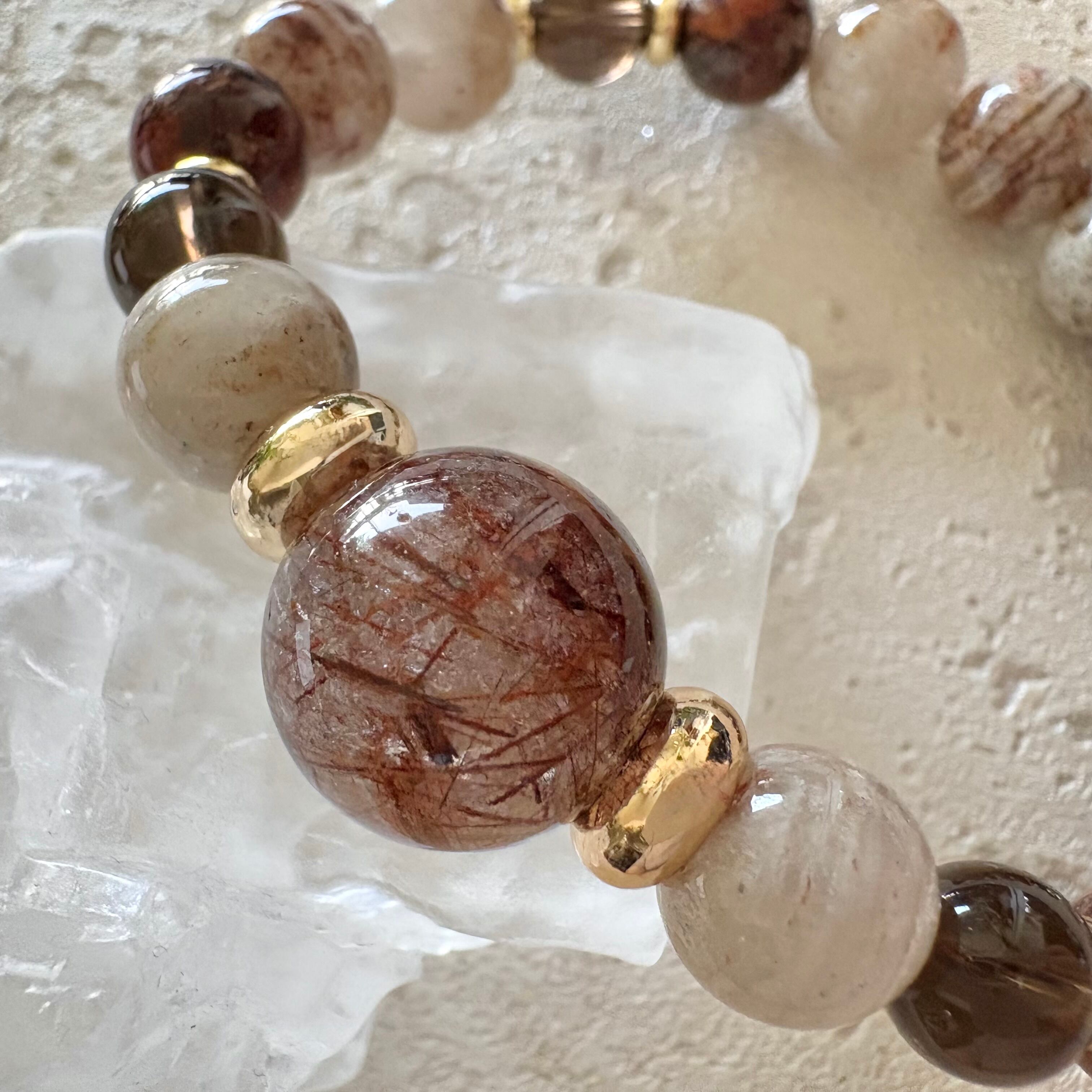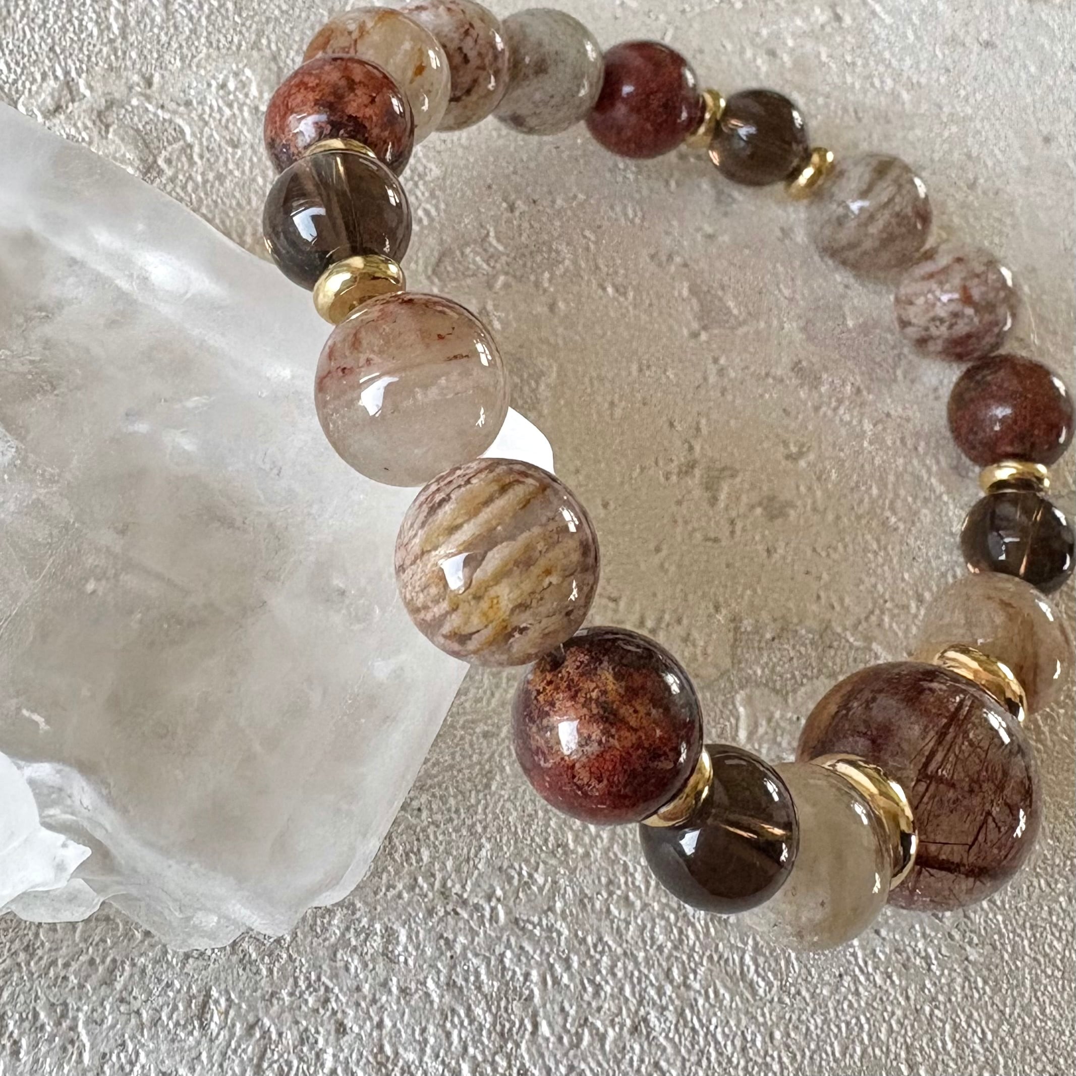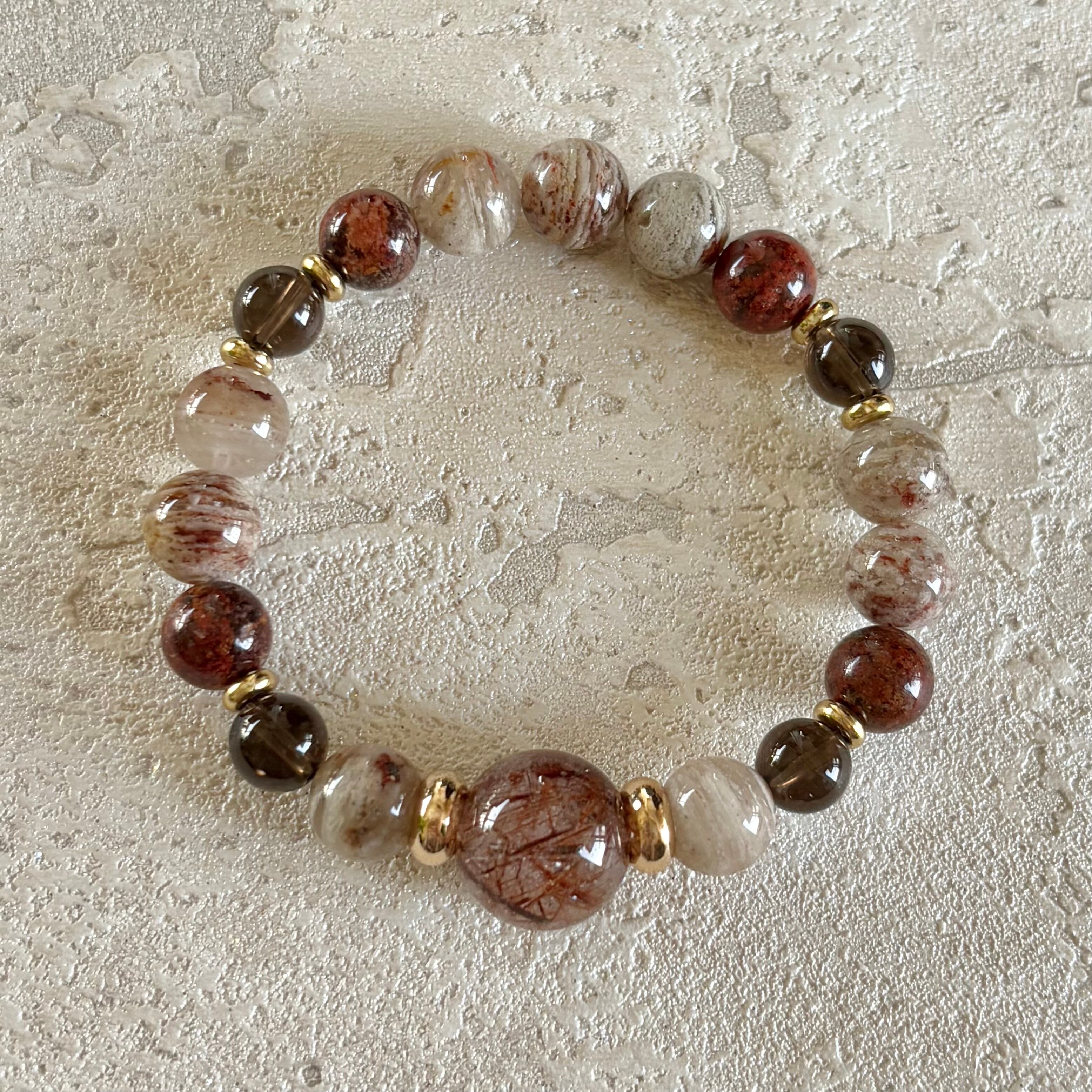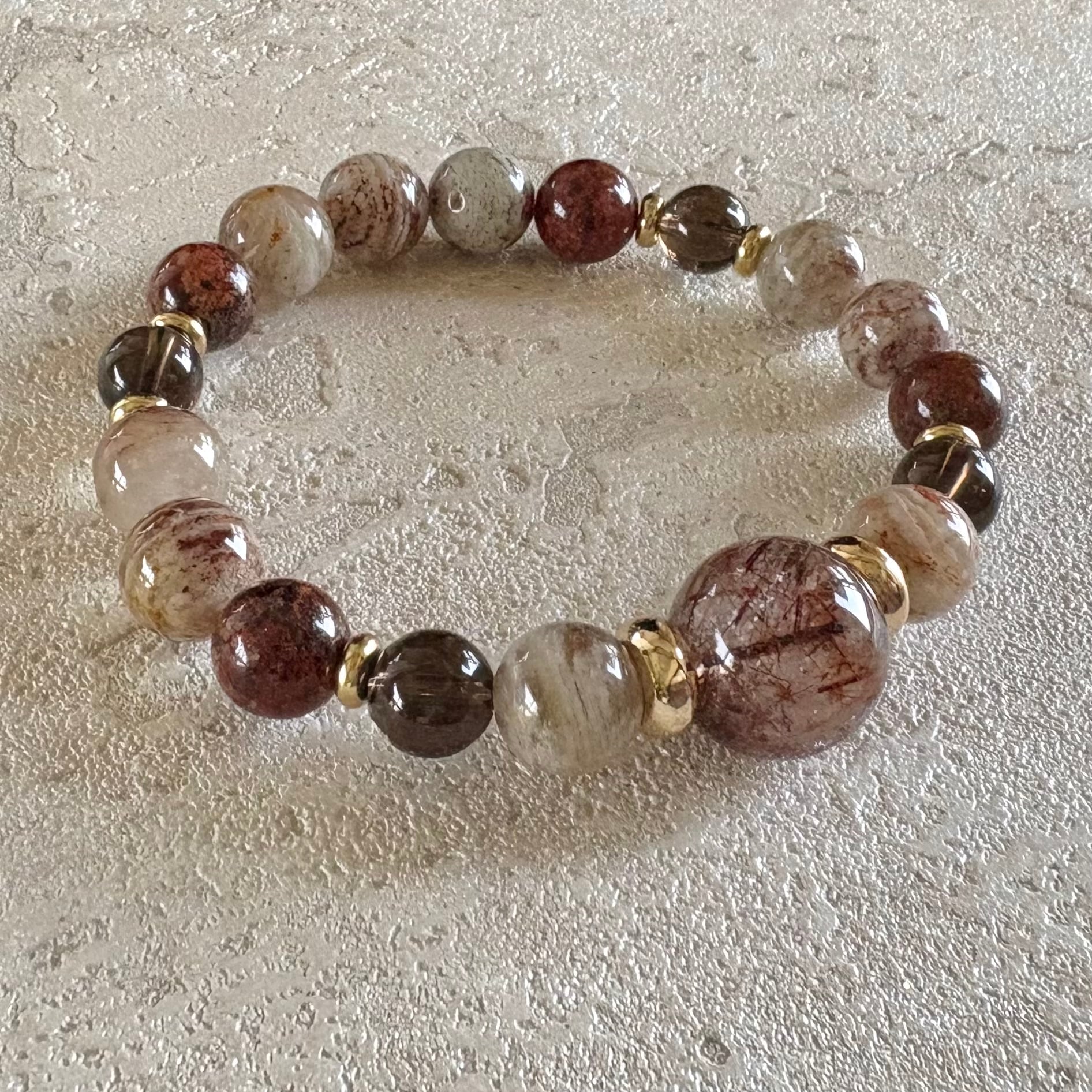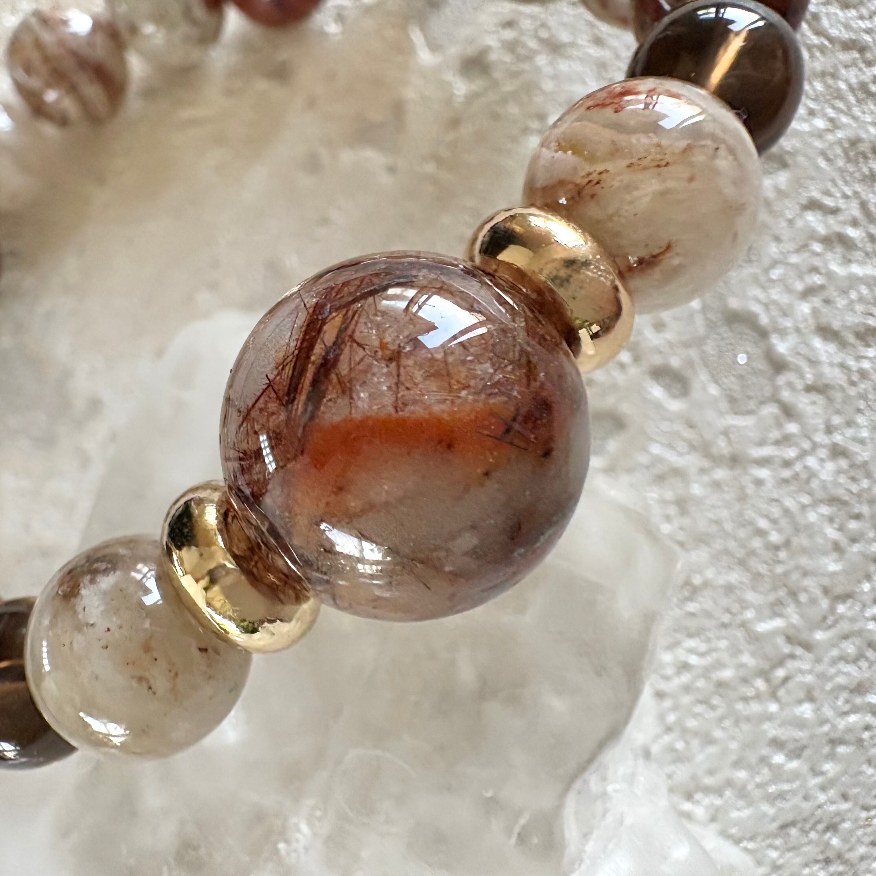 正財運・仕事運✴︎ガーデンルチルクォーツ×千層ガーデンクォーツ×スモーキークォーツ デザインブレスレット