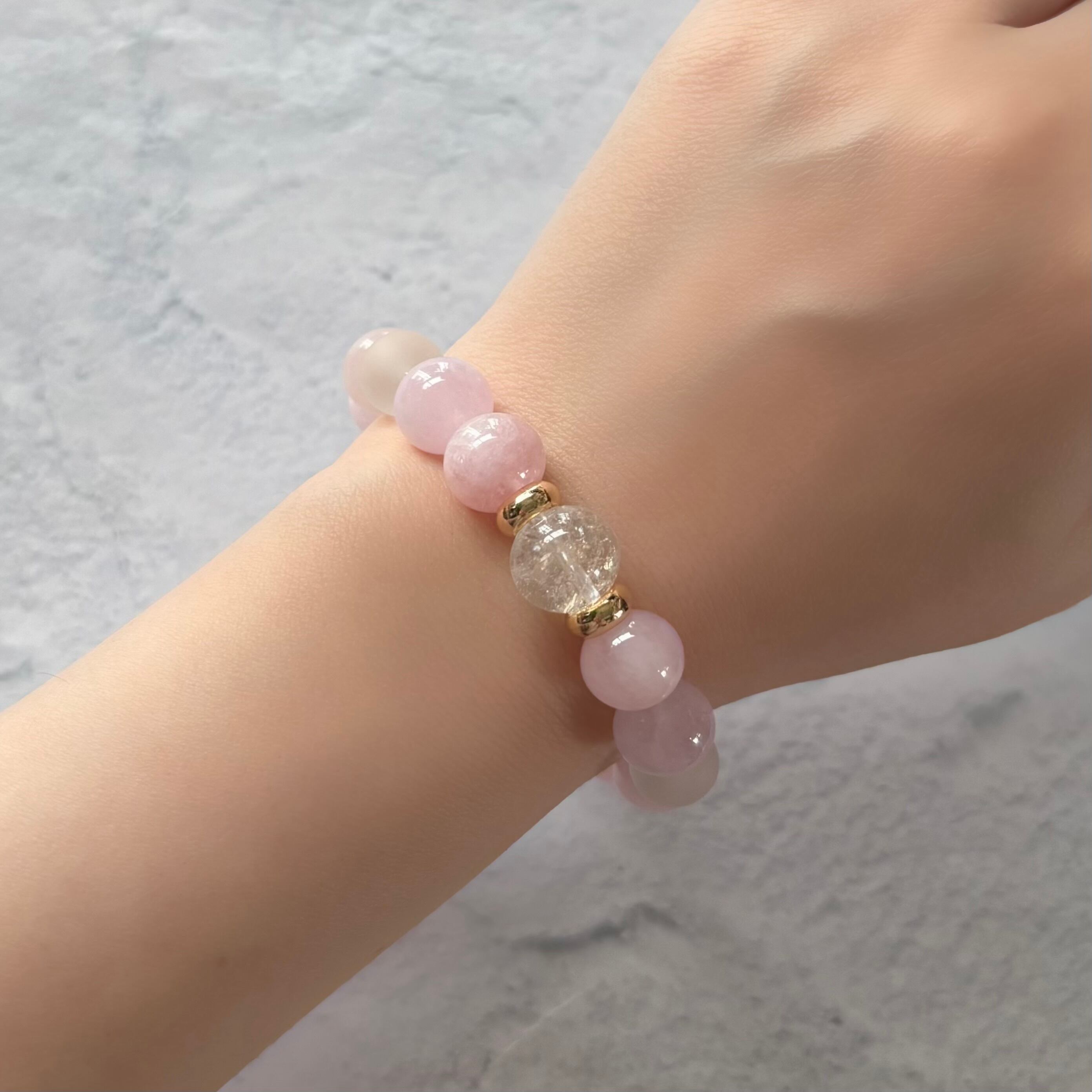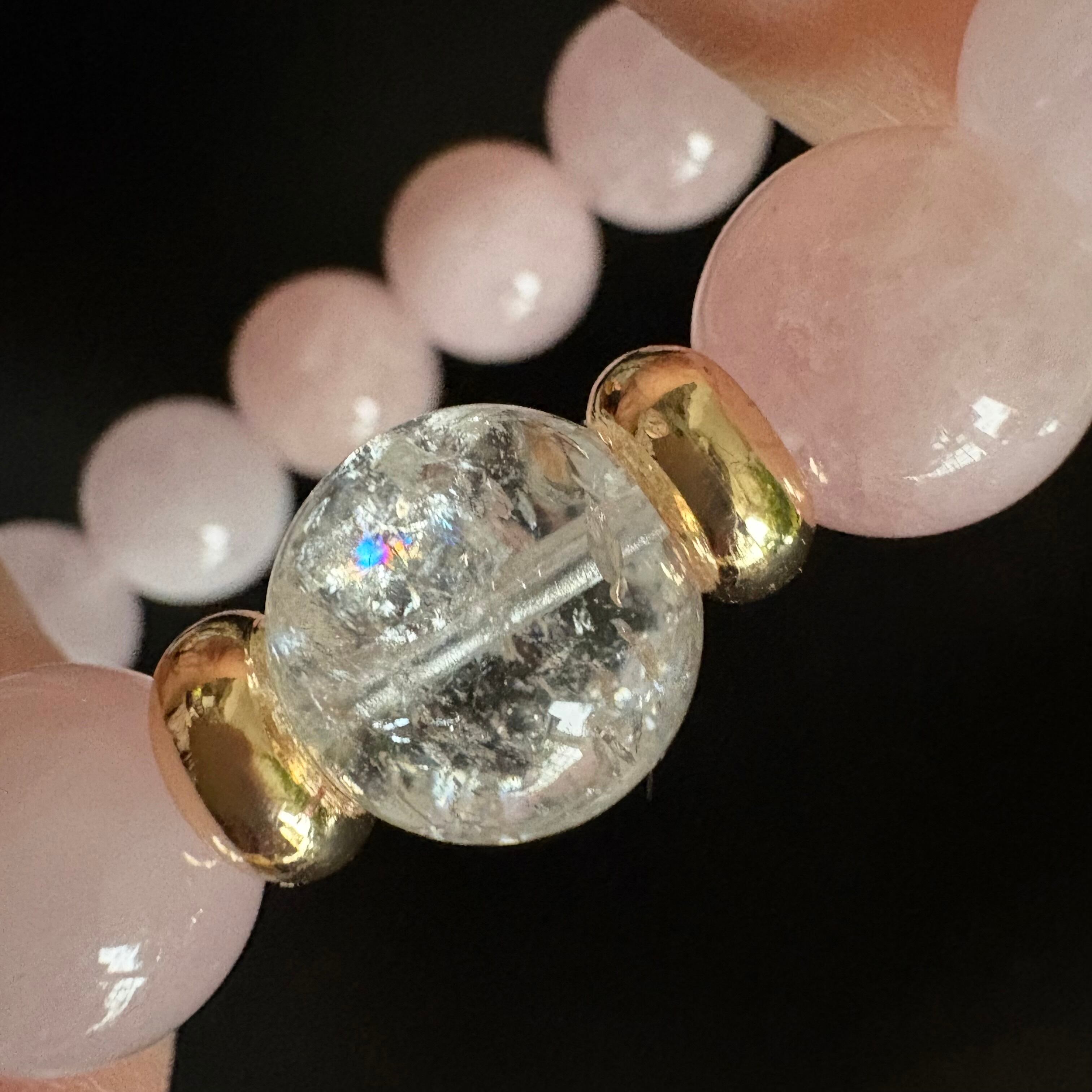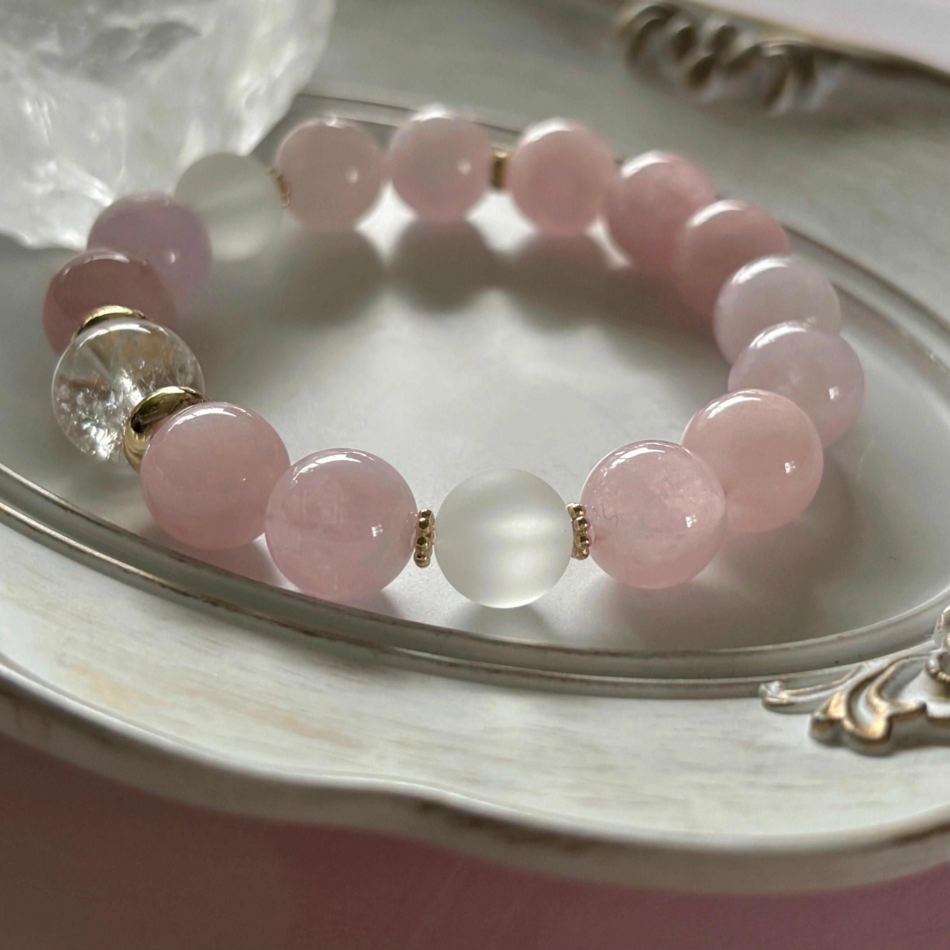 春色ブレスレット✴︎モルガナイト×アイリスクォーツ×フロスト水晶 デザインブレスレット