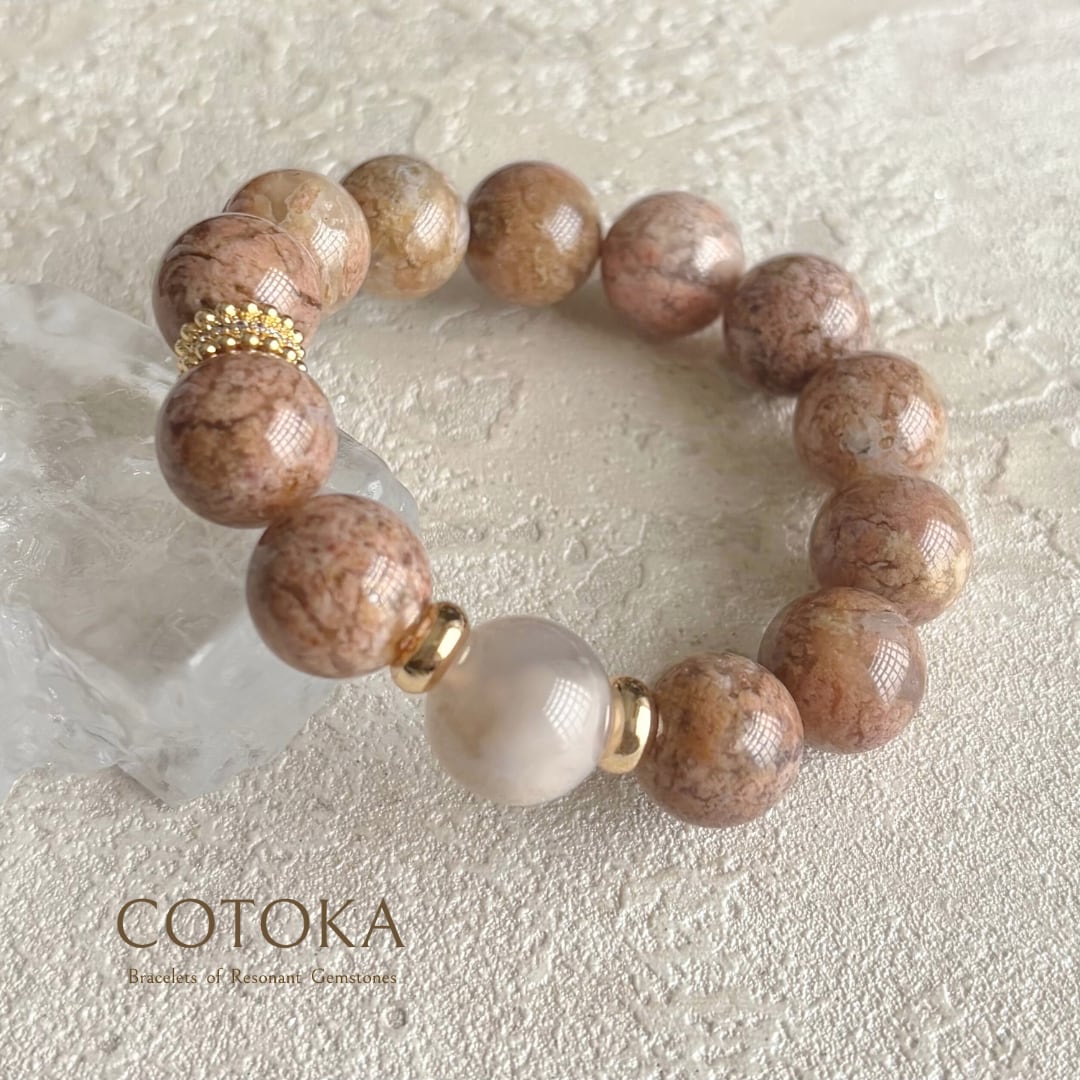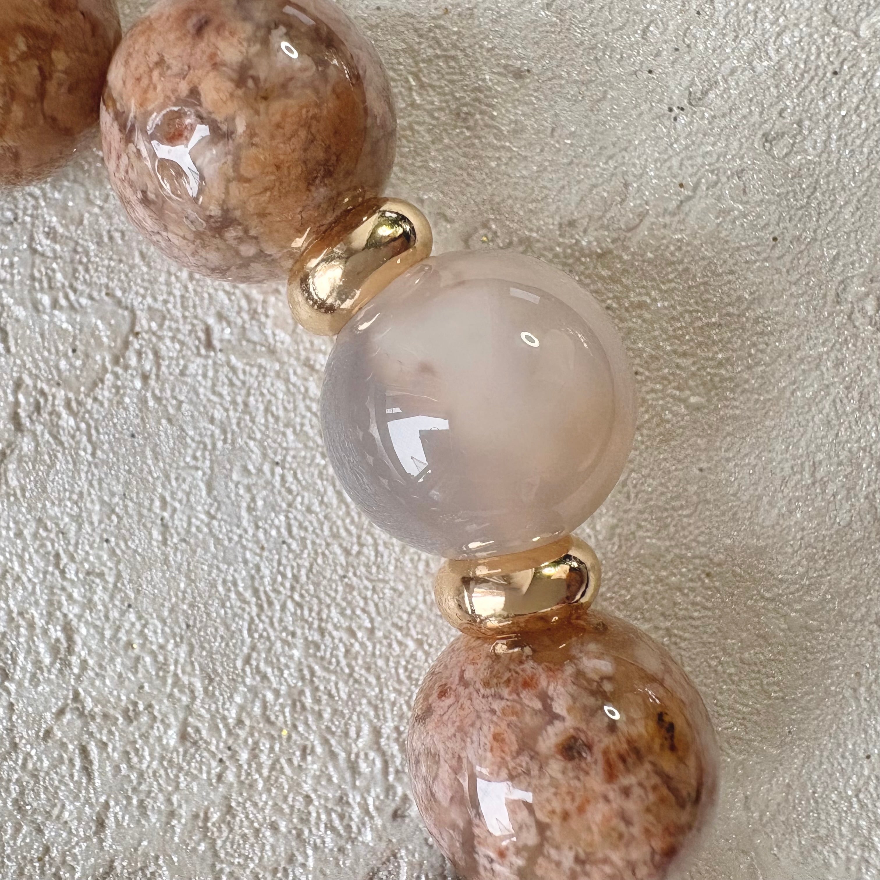 大玉ブレスレット✶アラシャンアゲートインクォーツ×桜瑪瑙のデザインブレスレット