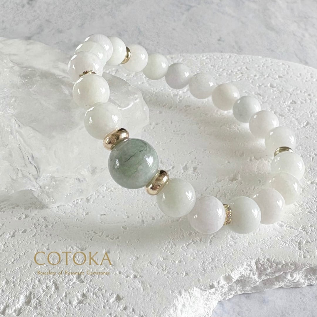 国石・糸魚川翡翠 × 白翡翠 凛とした気品のデザインブレスレット