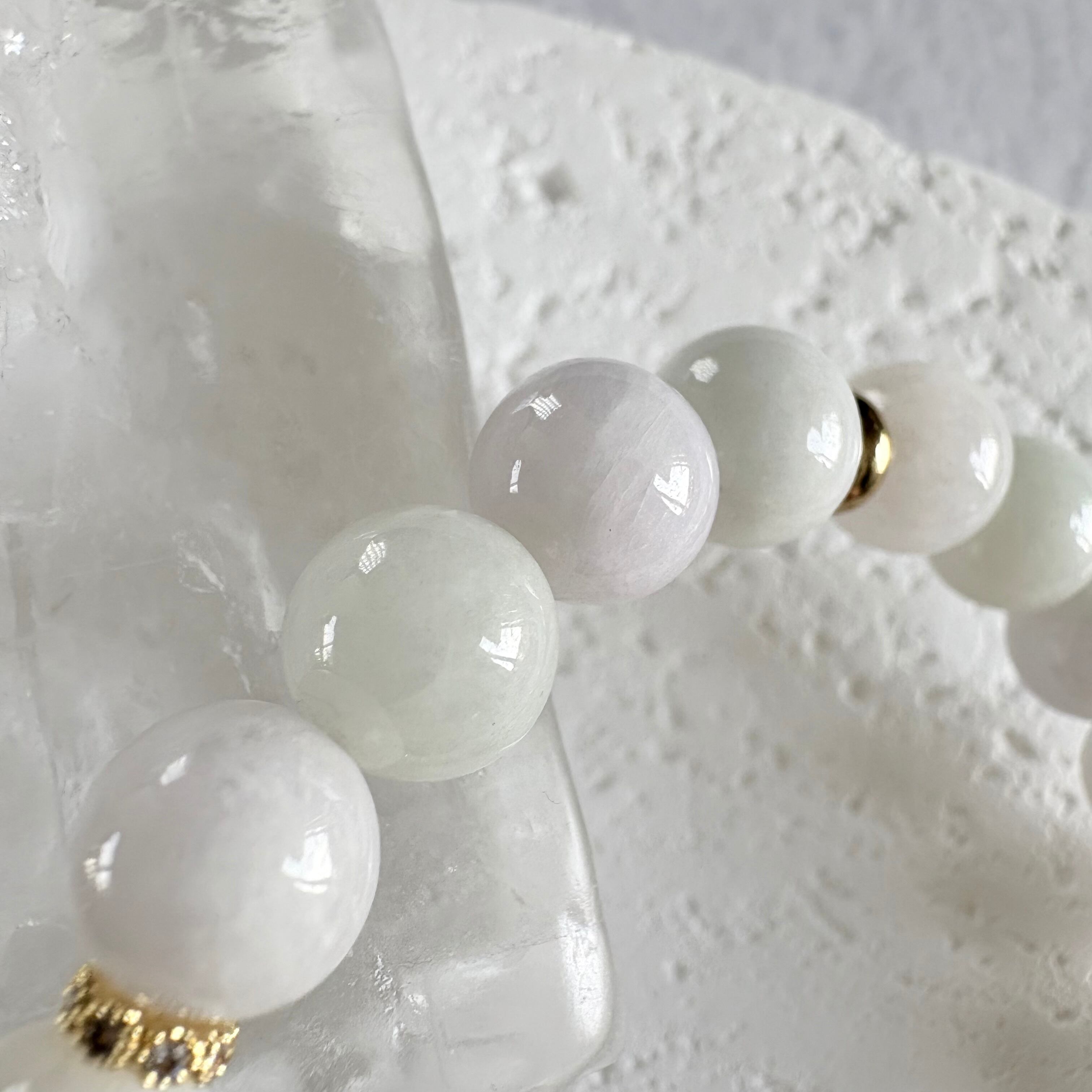 翡翠ならではの品格を持ちながらも、どこか可憐さも感じられるブレスレット。