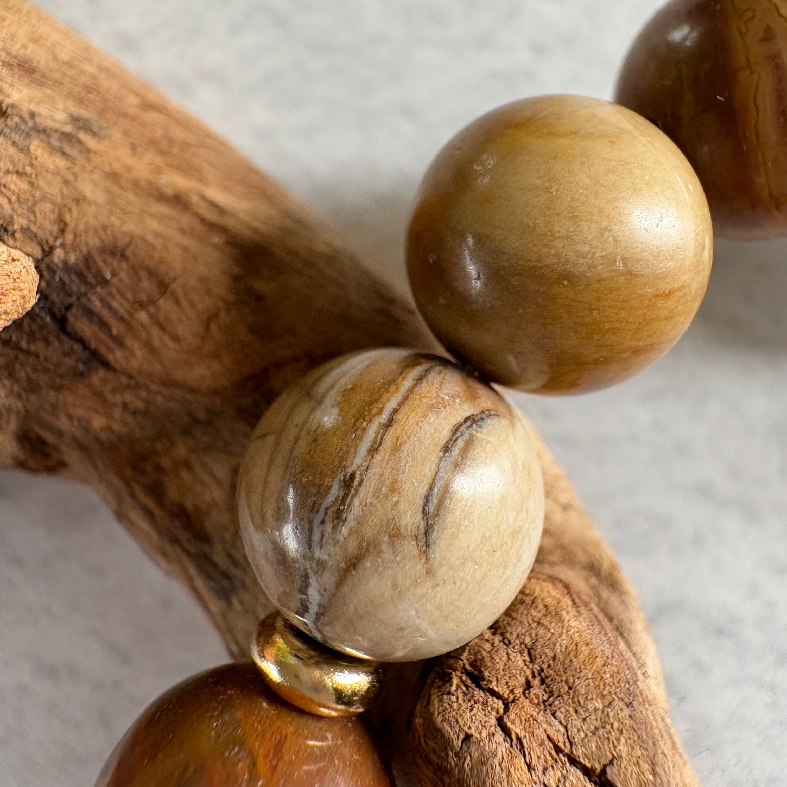 悠久の時を纏う│ペトリファイドウッド(珪化木)×ブラウンガーデンクォーツ×スモーキークォーツの天然石デザインブレスレット