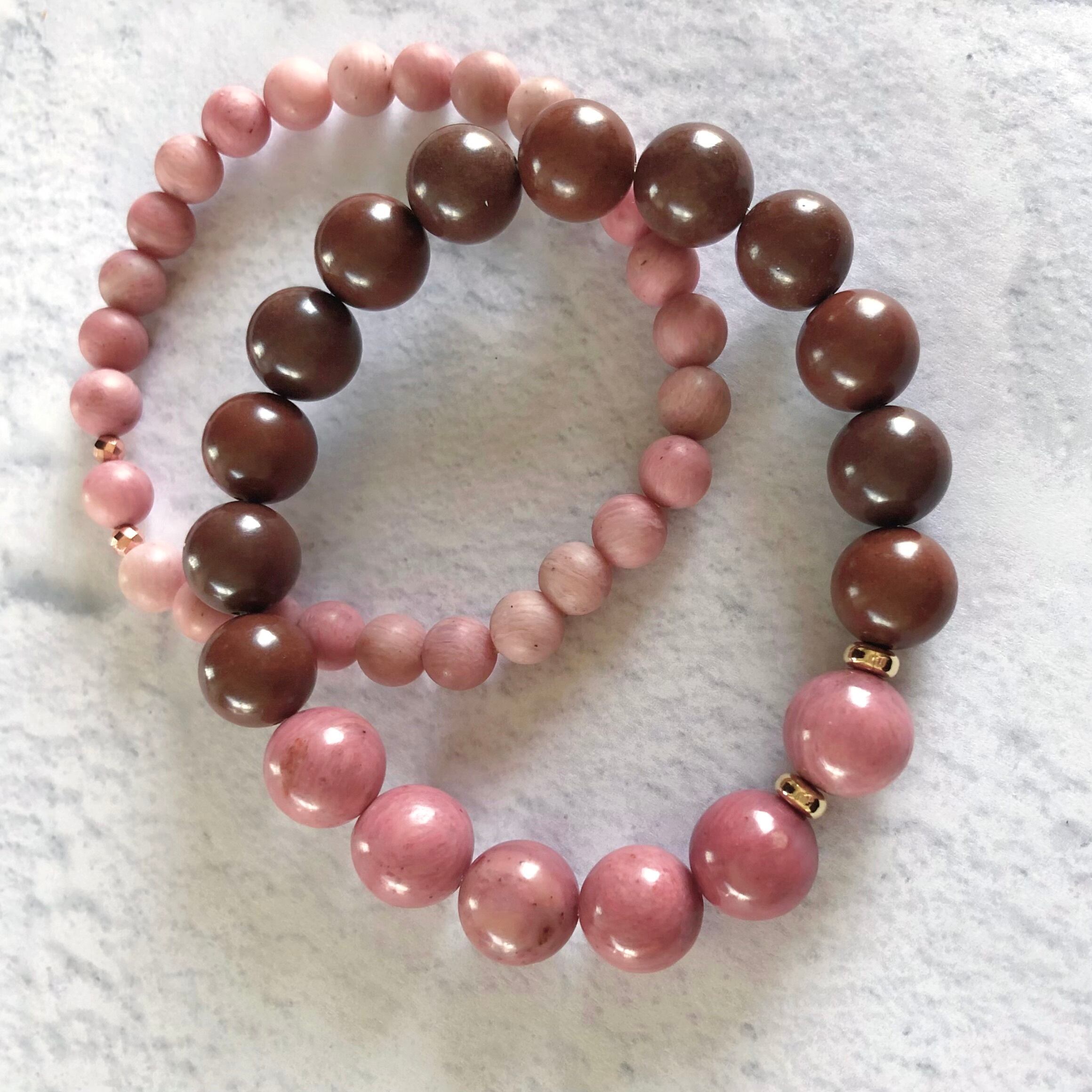 ストロベリーチョコレートのようなピーモンタイトとセドナストーンを組み合わせたブレスレットのお得な2本セットです。