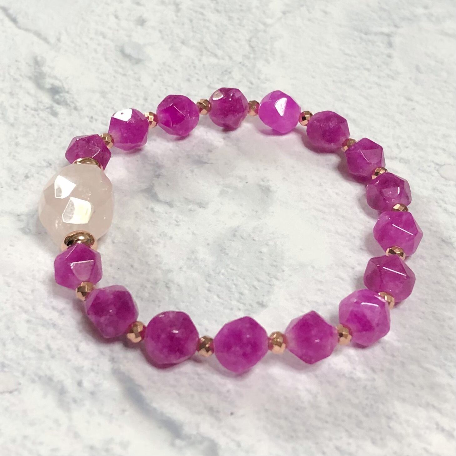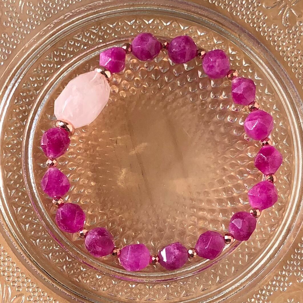 新しい出会いや愛を引き寄せる助けとなる天然石ブレスレットです。パーツはピンクゴールドで統一しています。