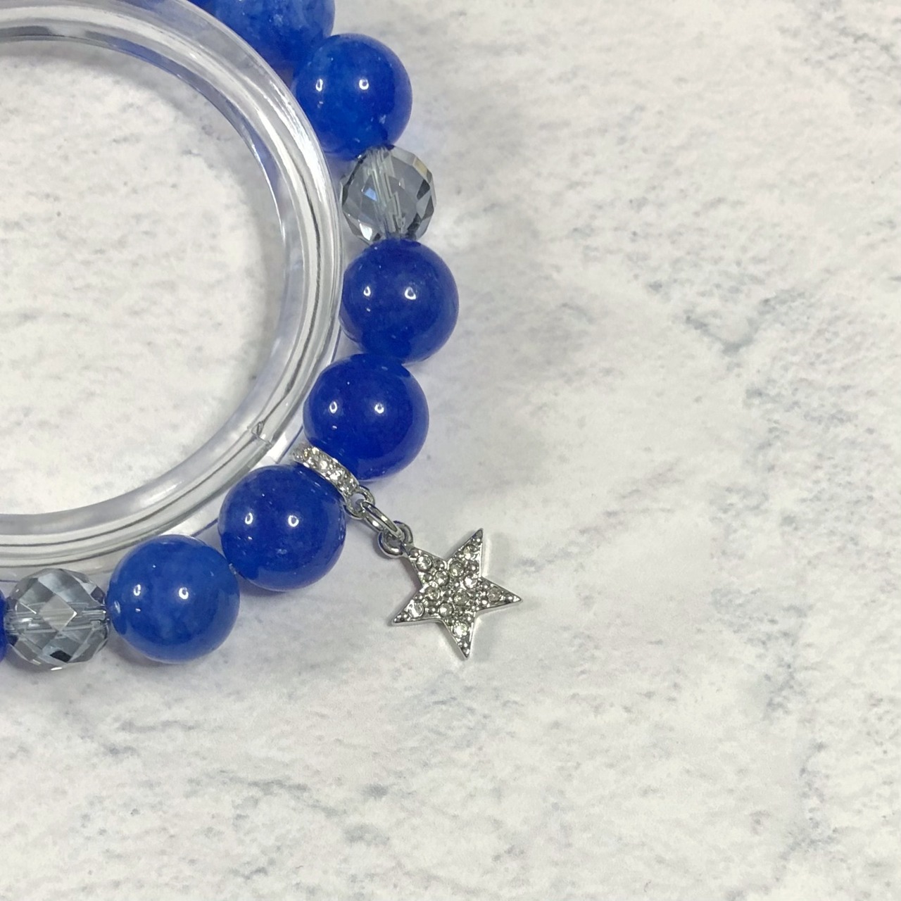 ブレスレット パワーストーン パワーストーンブレスレット 天然石 天然石ブレスレット ラピスラズリ ブルーカルセドニー 直感力 直感力アップ 星 スター チャーム 青 ブルー 宇宙 邪気払い