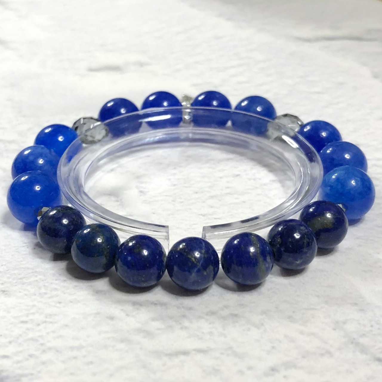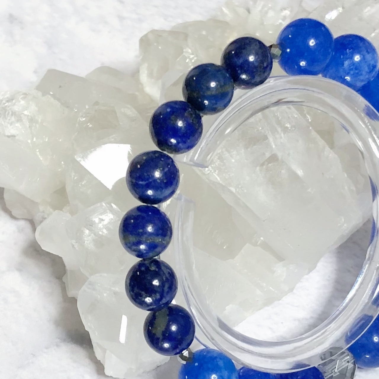 ラピスの青と銀の星屑☆直感力UP ラピスラズリ×ブルーカルセドニーブレスレット