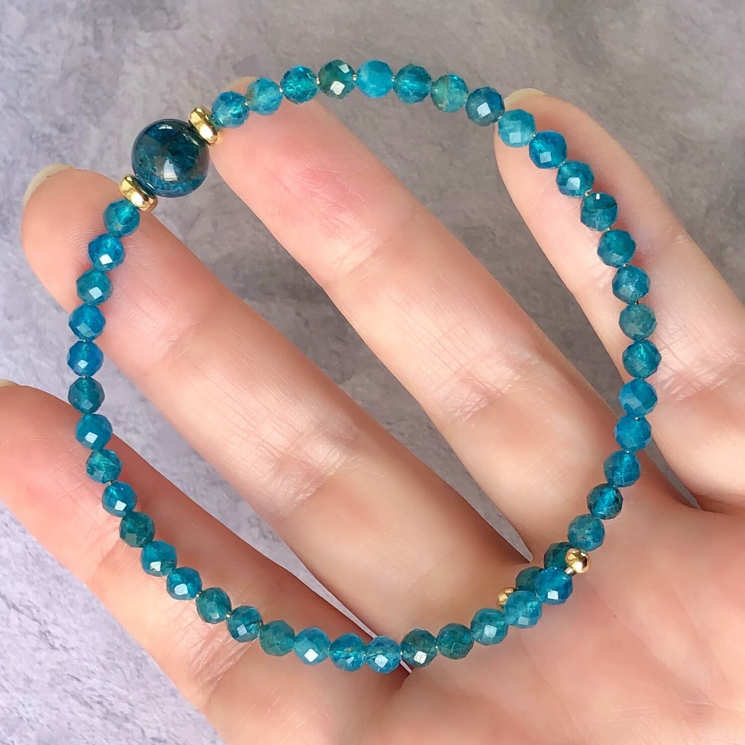 ストレス・不安の緩和 ネオンブルーアパタイトとディープアパタイトの天然石ワイヤーブレスレット