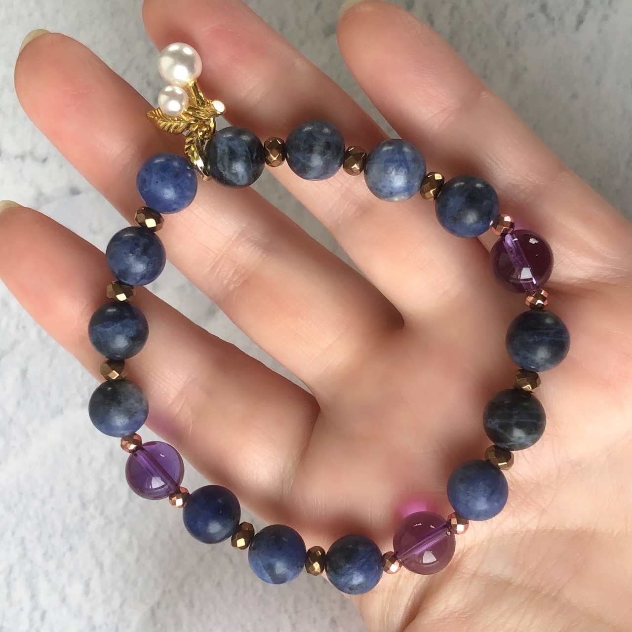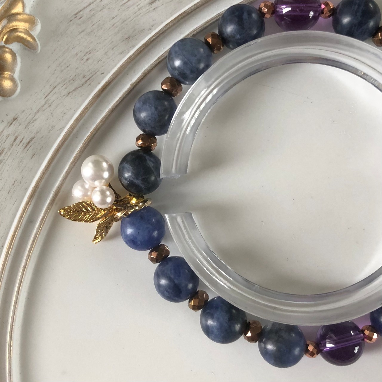 ブルーベリーのようなソーダライトと紫色が美しいアメジストを組み合わせました。