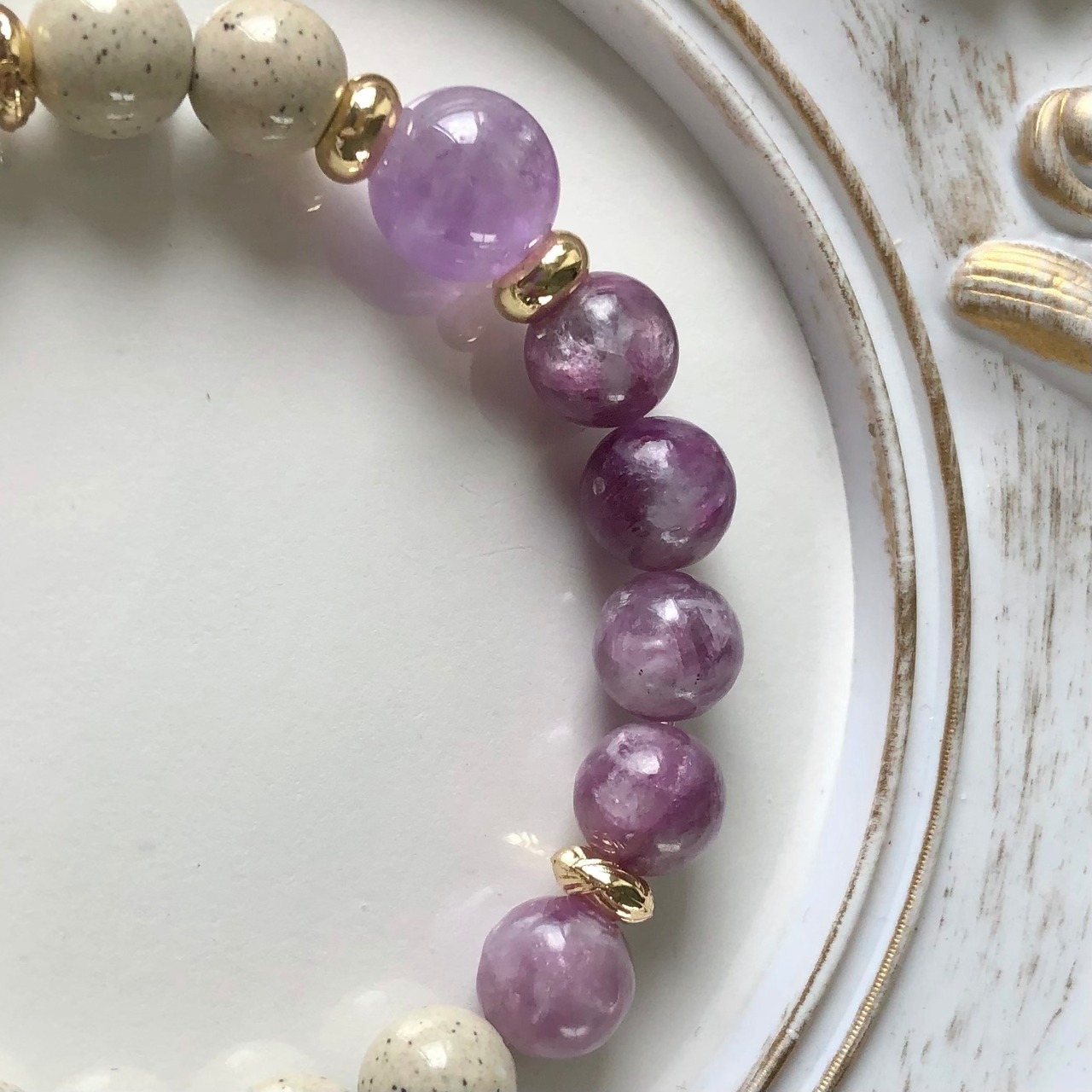 北投石・レピドライト・ラベンダーアメジストのデザインブレスレット