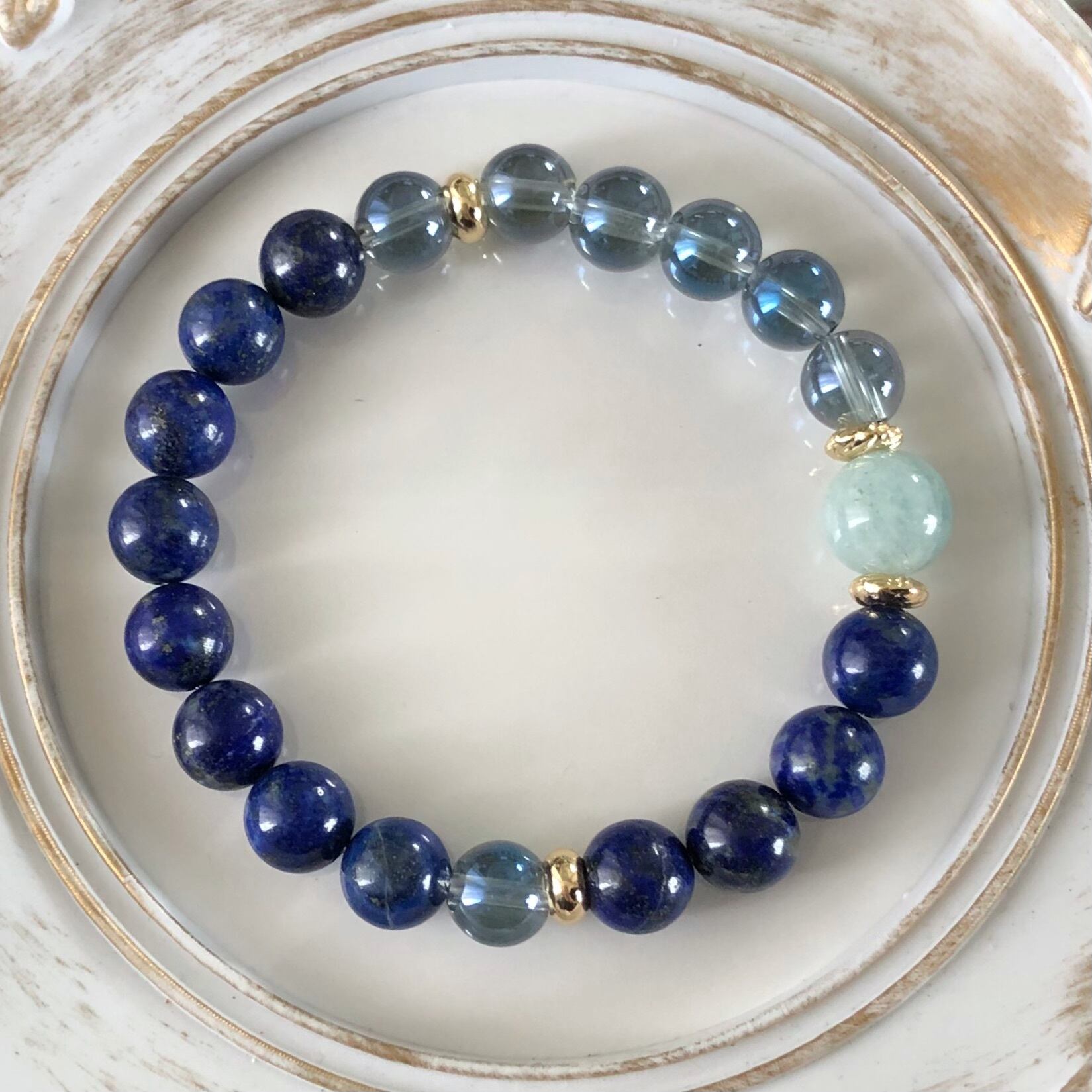 パワーストーンブレスレット 天然石ブレスレット ハンドメイド ハンドメイドアクセサリー お守りブレスレット デザインブレスレット ラピスラズリ アクアオーラ アクアマリン