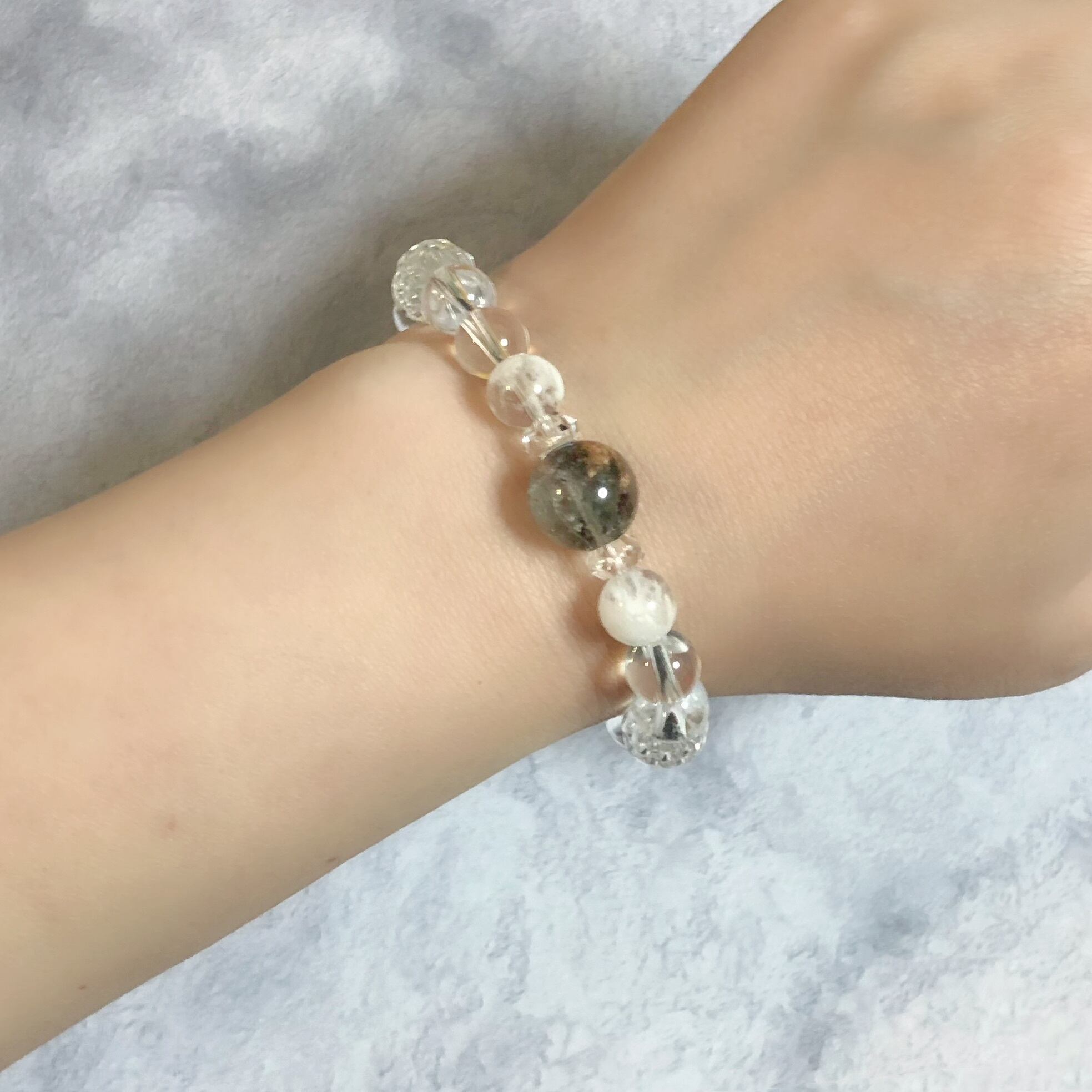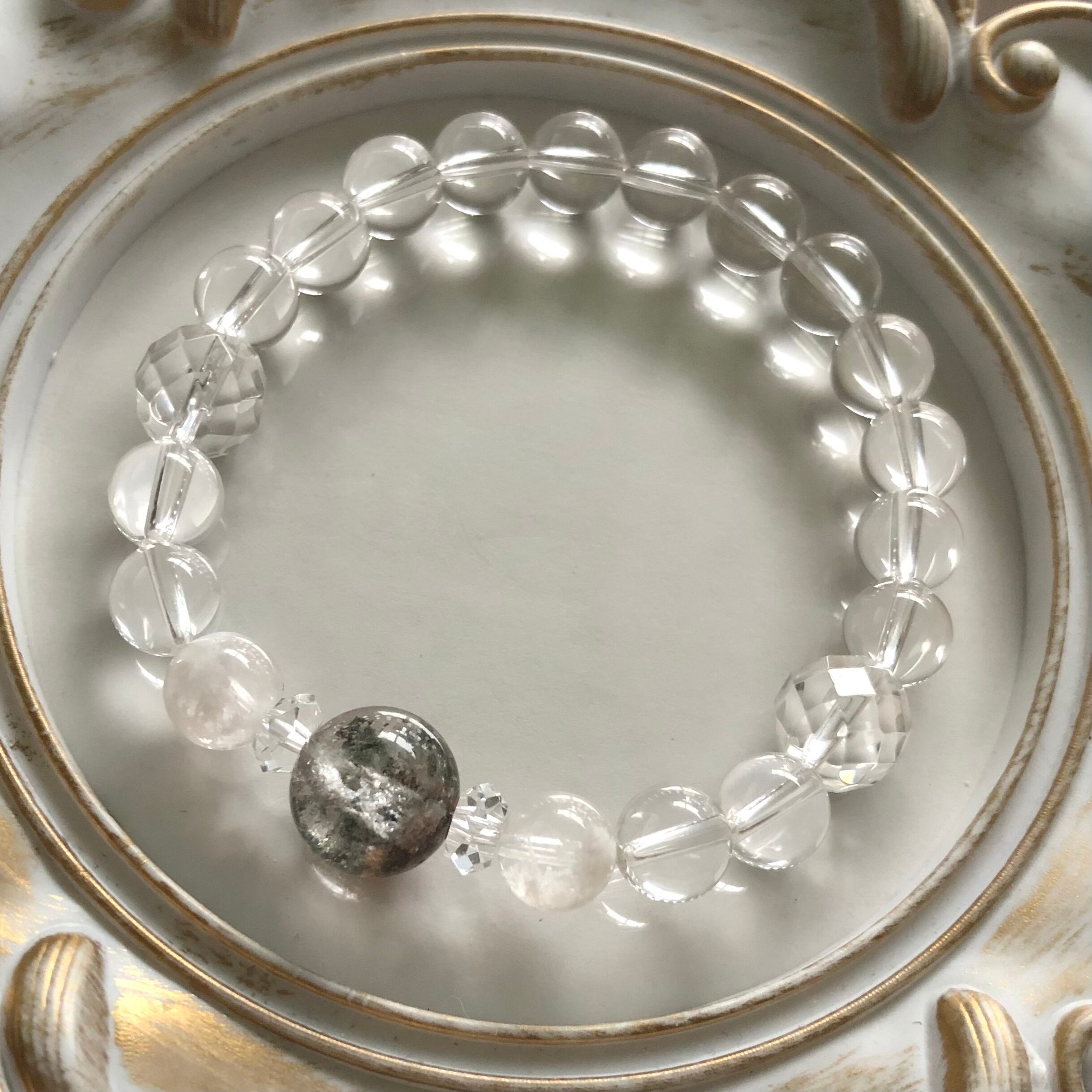 強力な浄化と癒し☆虹入りガーデンクォーツ×ホワイトセリサイトインクォーツ×天然水晶デザインブレスレット
