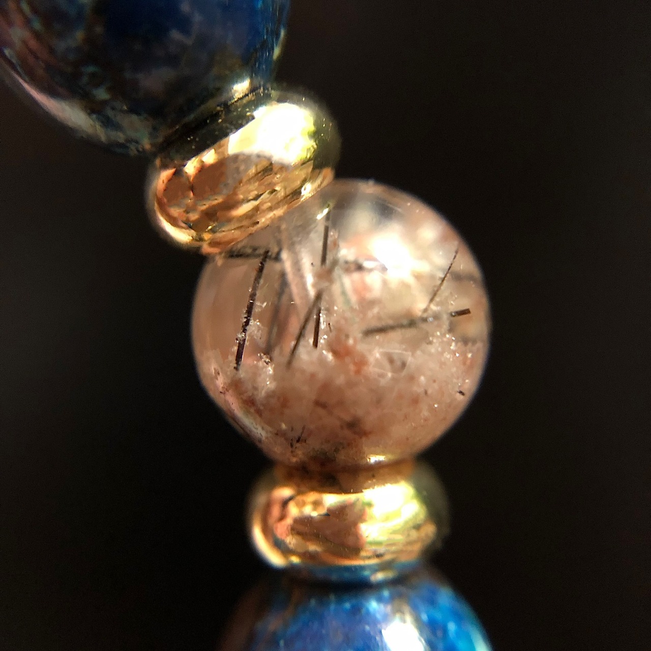 透明度の高い品質のガーデンクォーツと組み合わせています。ガーデンクォーツはネガティブなエネルギーを浄化し、前向きな未来を切り開く力があるとされています。