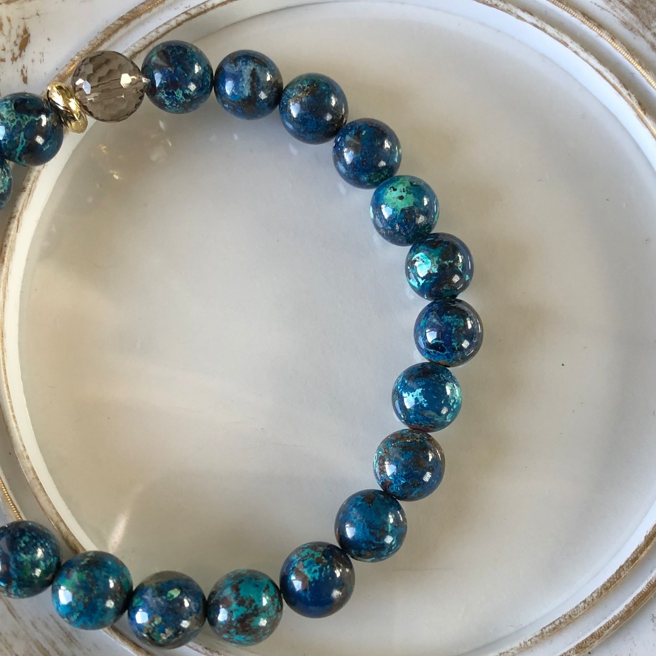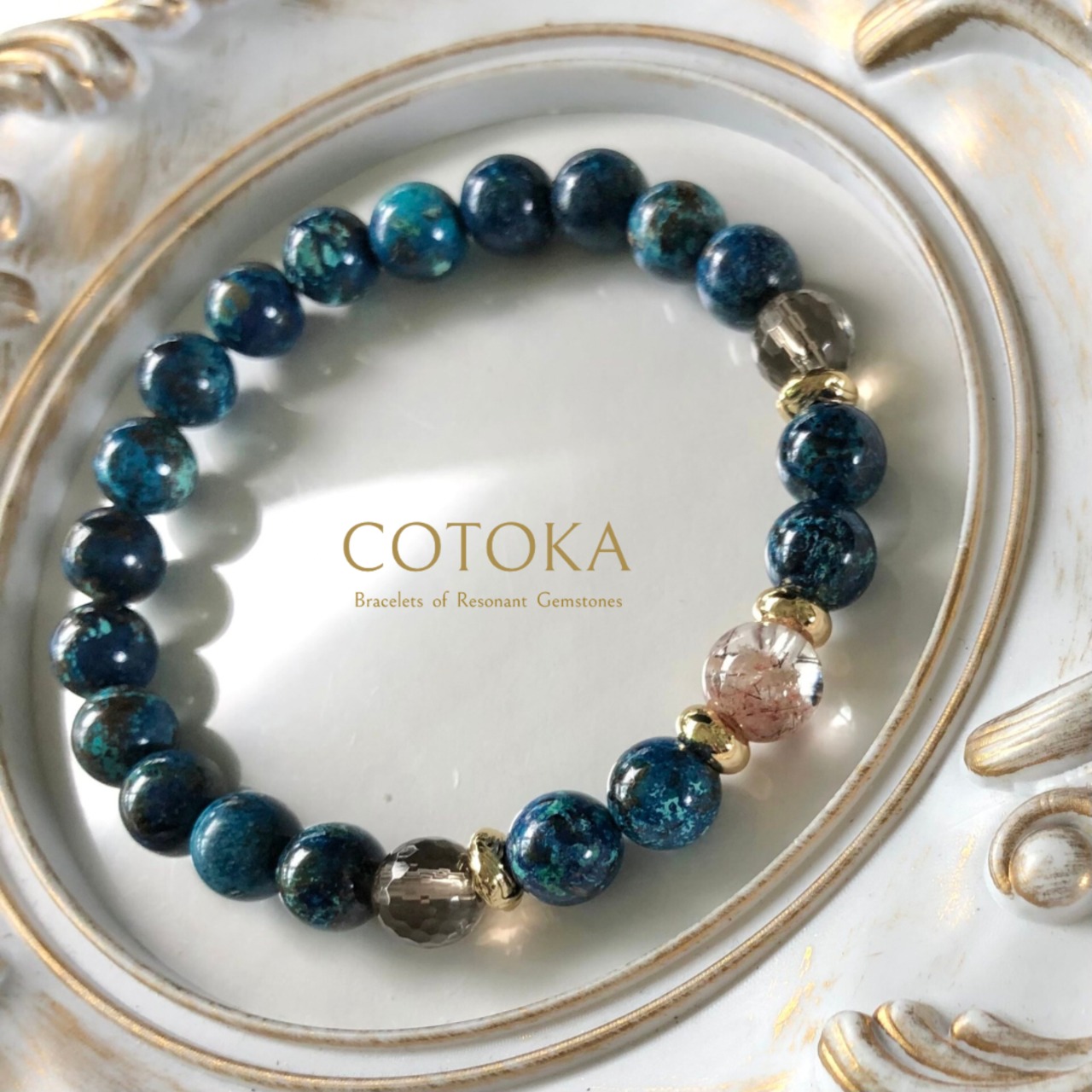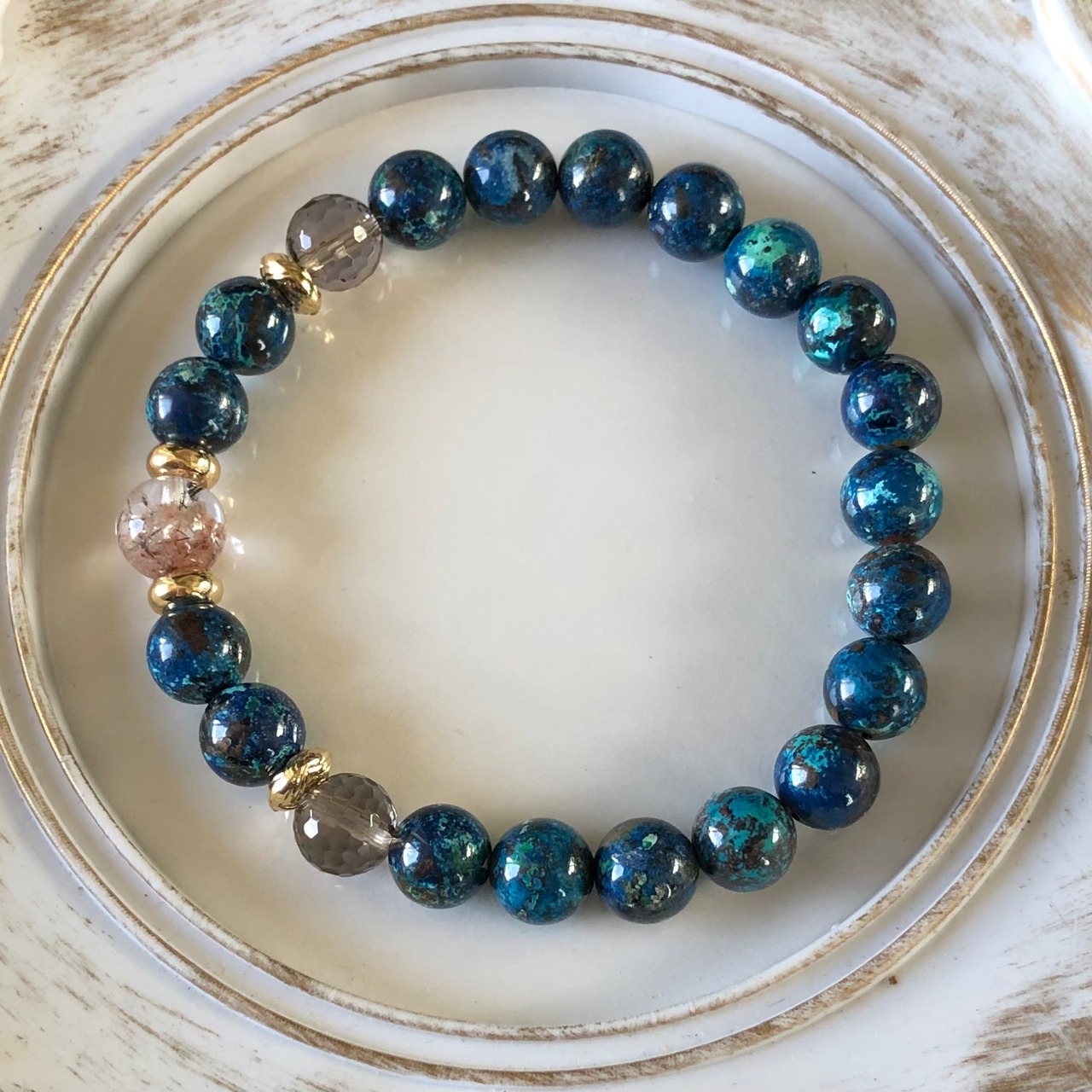 クリソコラ×ガーデンルチル入クォーツ×スモーキークォーツデザインブレスレット