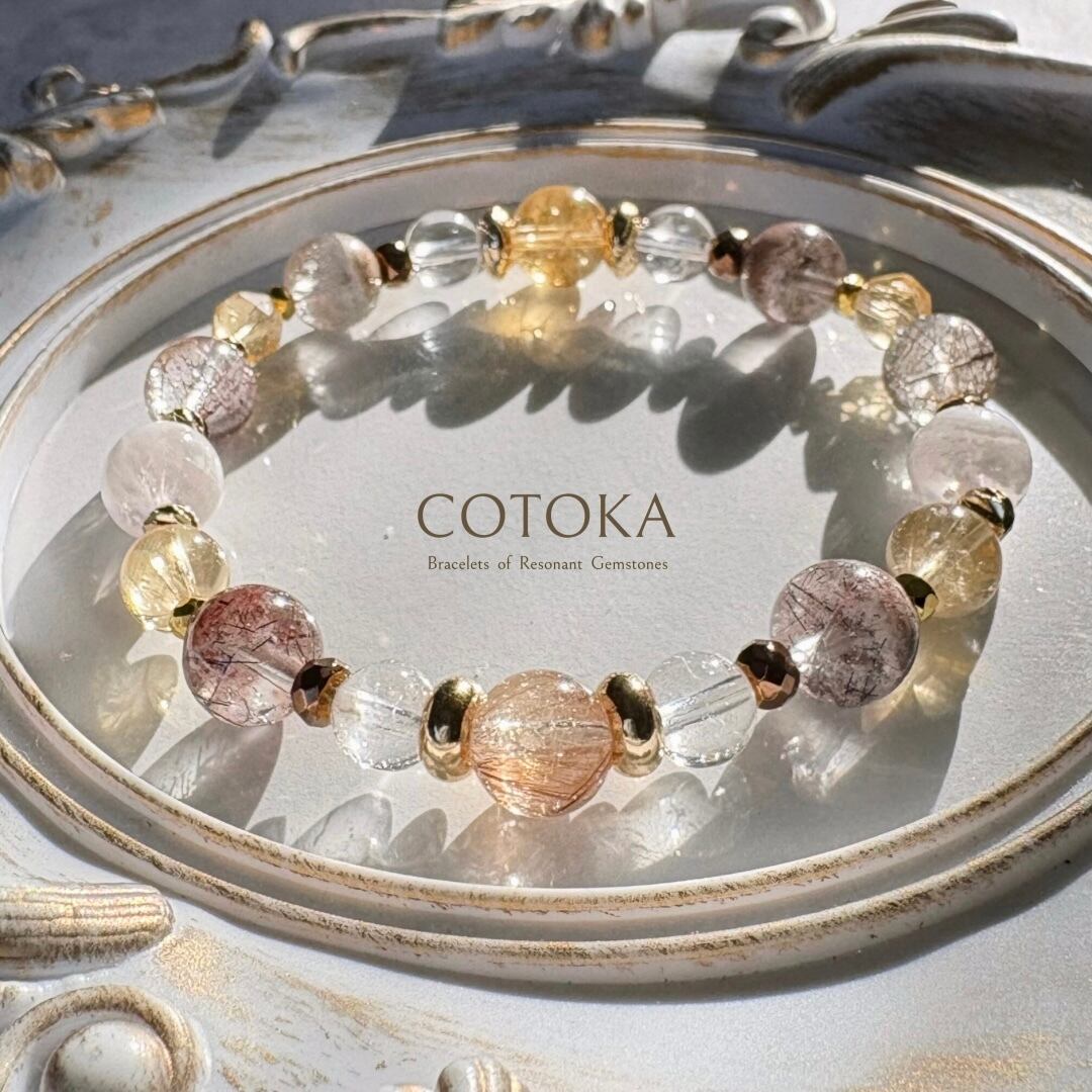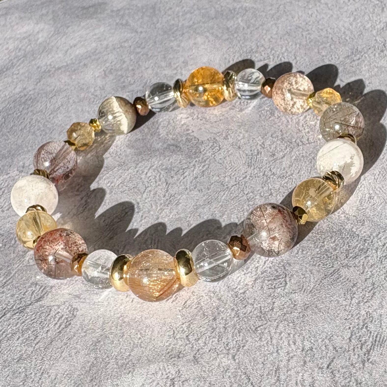 ルチルクォーツ×ガーデンクォーツ×シトリン×アイスクォーツ×セリサイトインクォーツデザインブレスレット