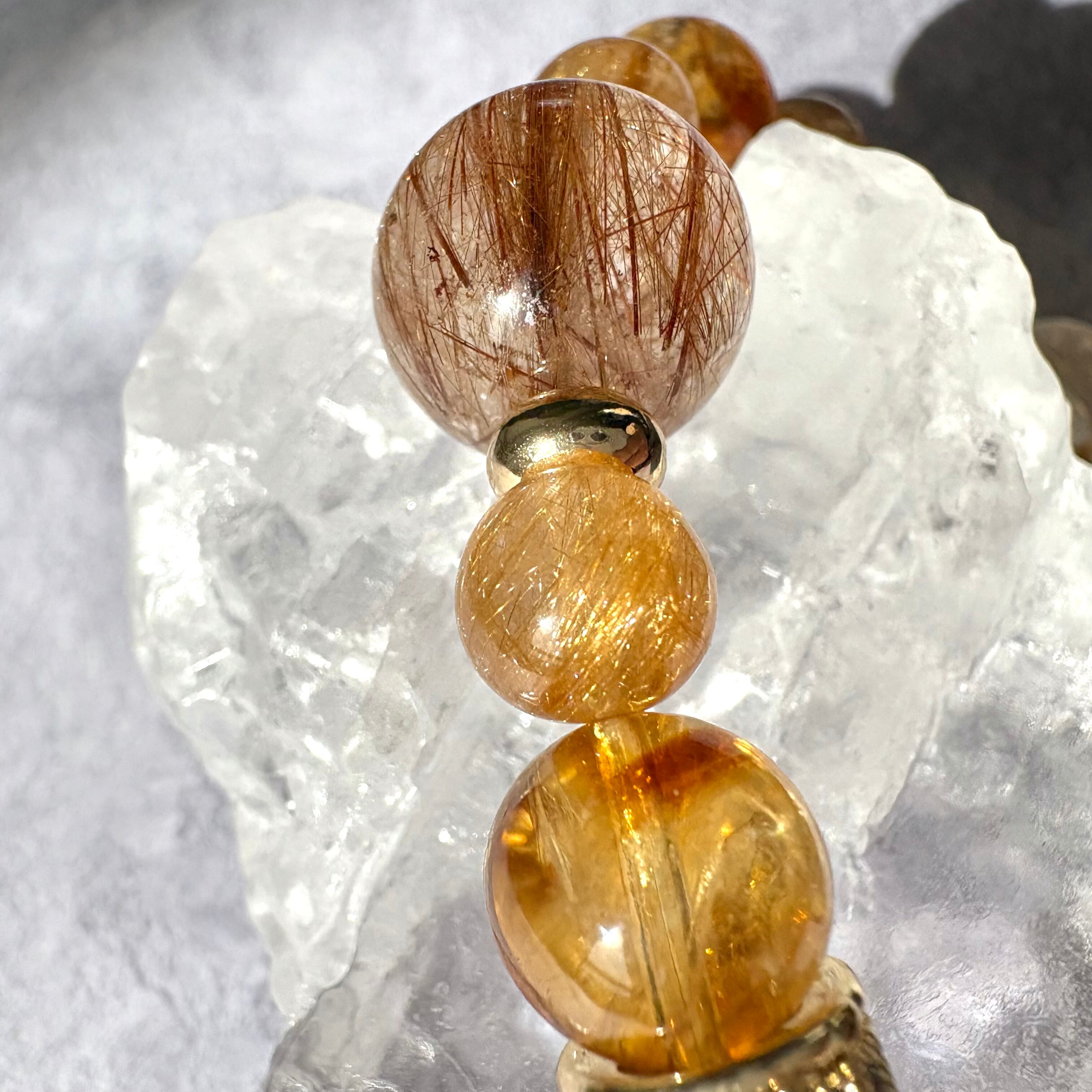 【金運プロジェクト】金運ブレスレット~ゴールド系B①~ ブロンズルチル×オレンジルチル×ガーデンクォーツ×シトリン
