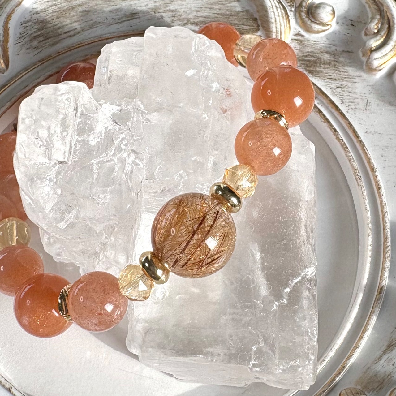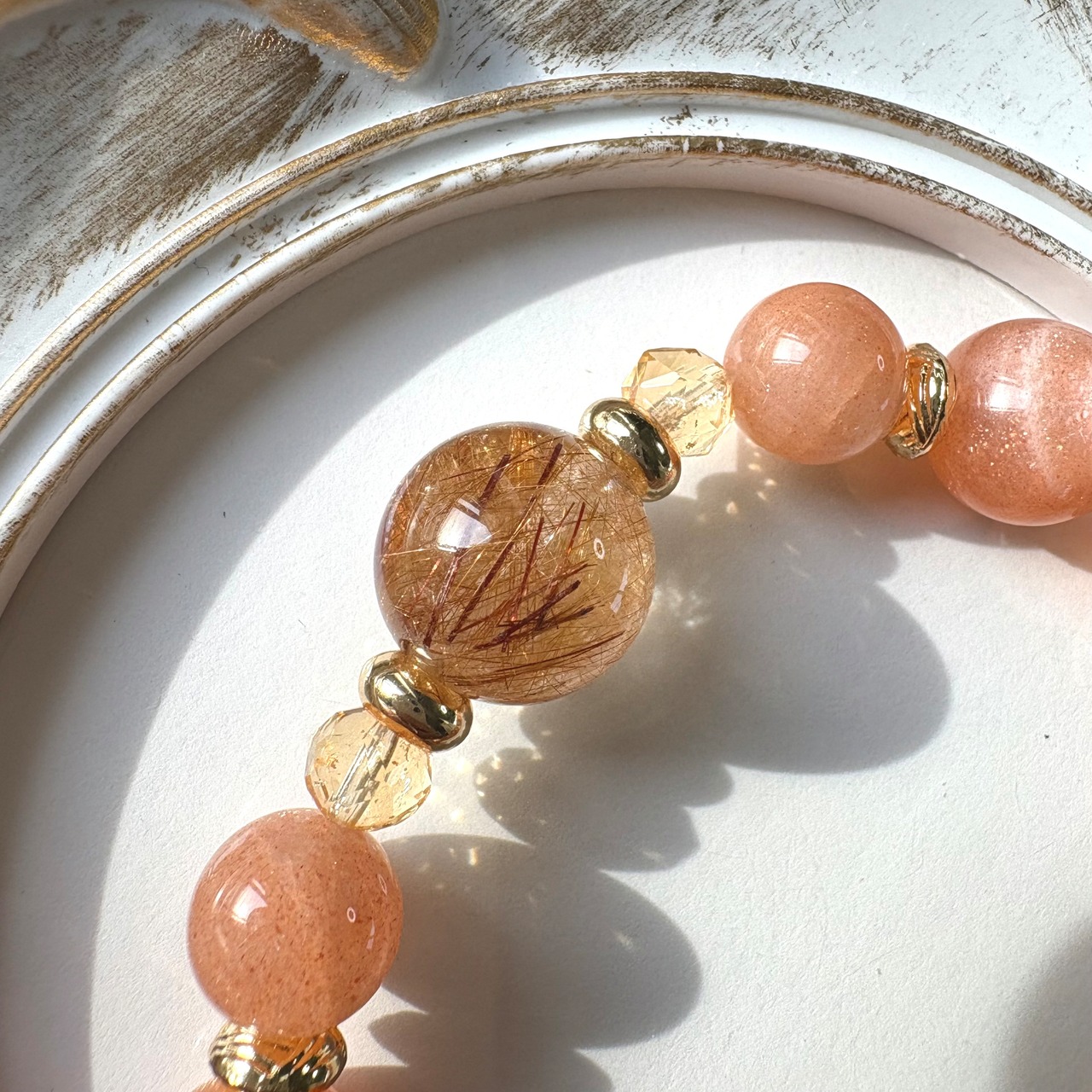 ブロンズルチル×サンムーンストーン×シトリンのデザインブレスレット