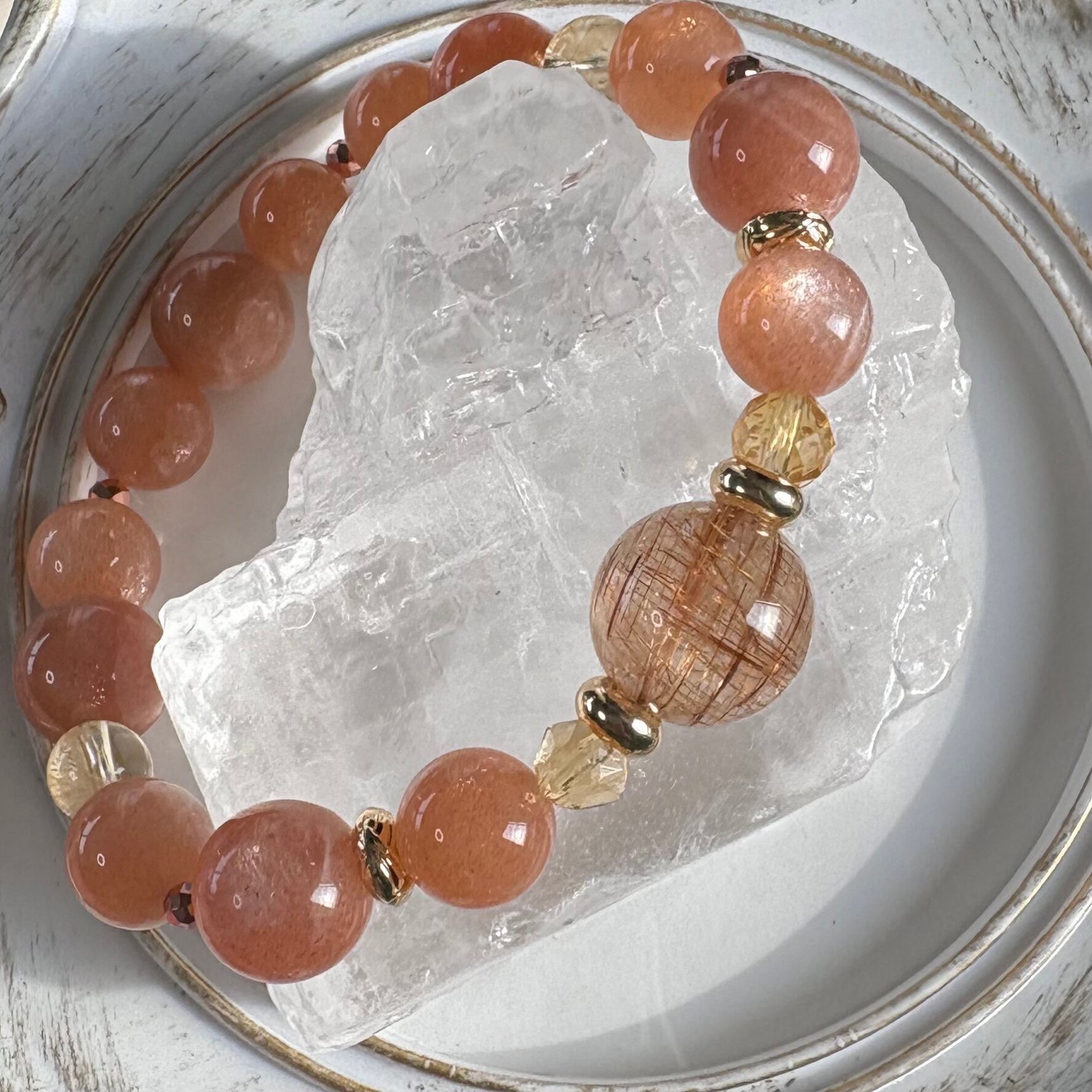 ブロンズルチル×サンムーンストーン×シトリンのデザインブレスレット