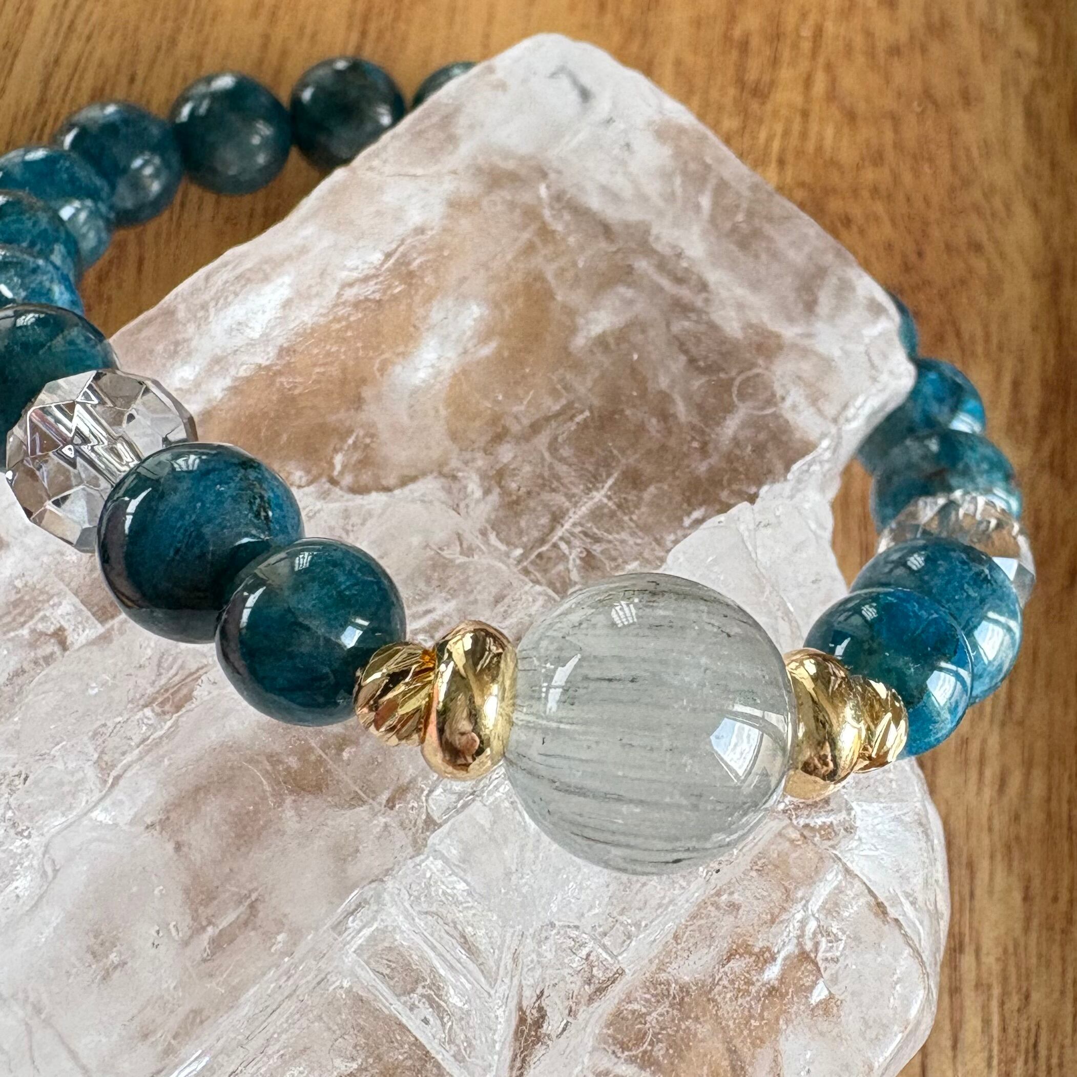 【真実を告げる伝達者の石✴︎ディープブルーアパタイト×ブルールチルデザインブレスレット】
