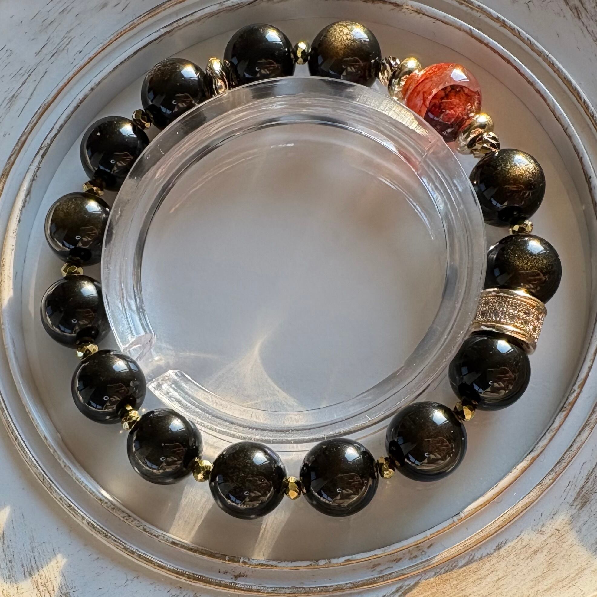 気品ある守護石✶ゴールデンオブシディアン×レッドヘマタイトインクォーツデザインブレスレット