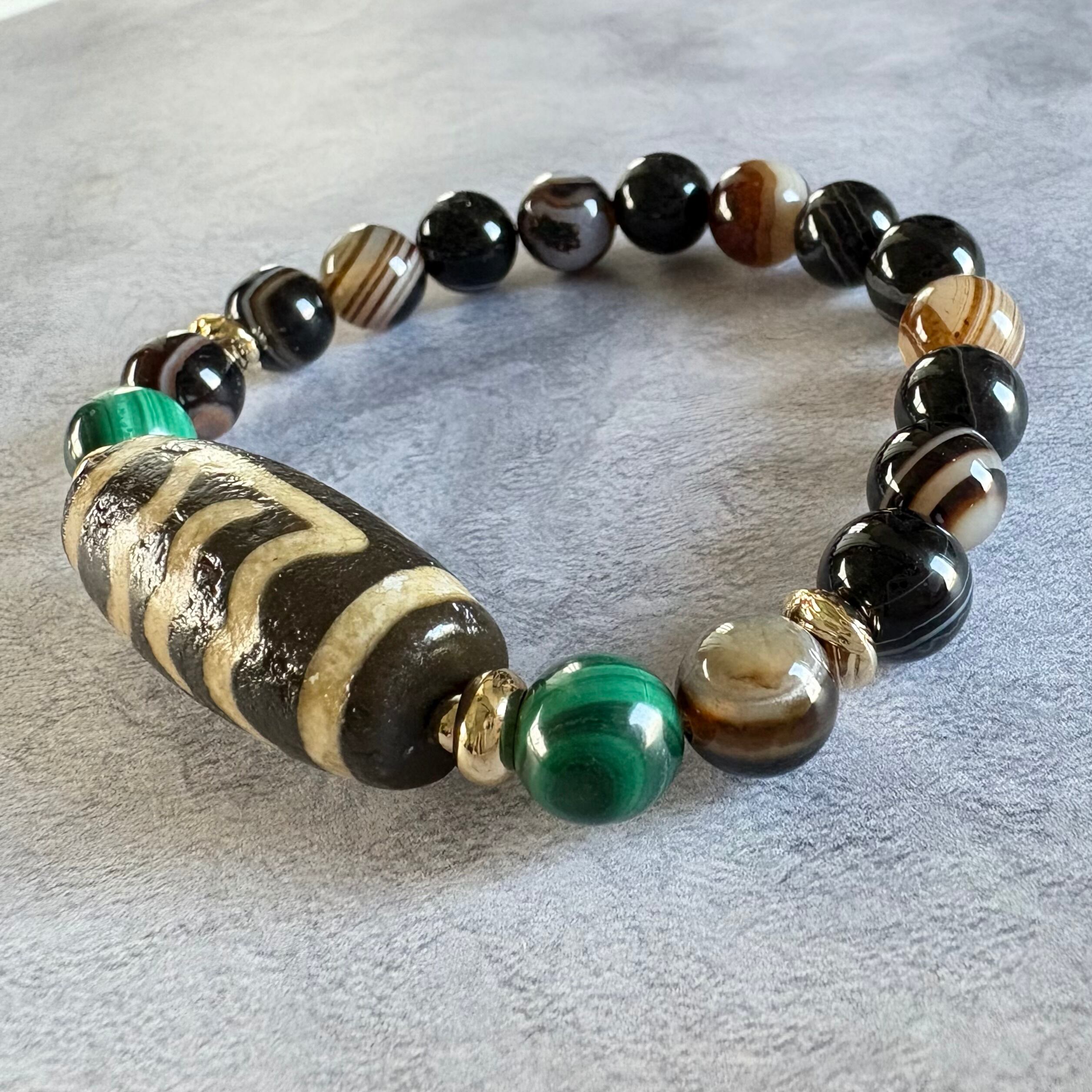 【大鳳鳥天珠×天眼石×マラカイトデザインブレスレット】