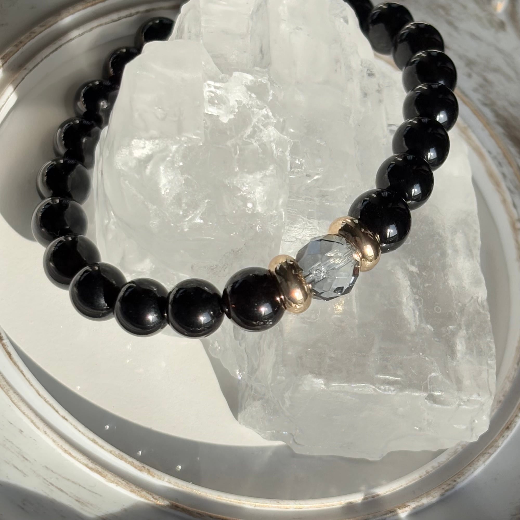 再販!守護の石☆天然モリオン×シルバ-フラッシュクリスタル お守りデザインブレスレット