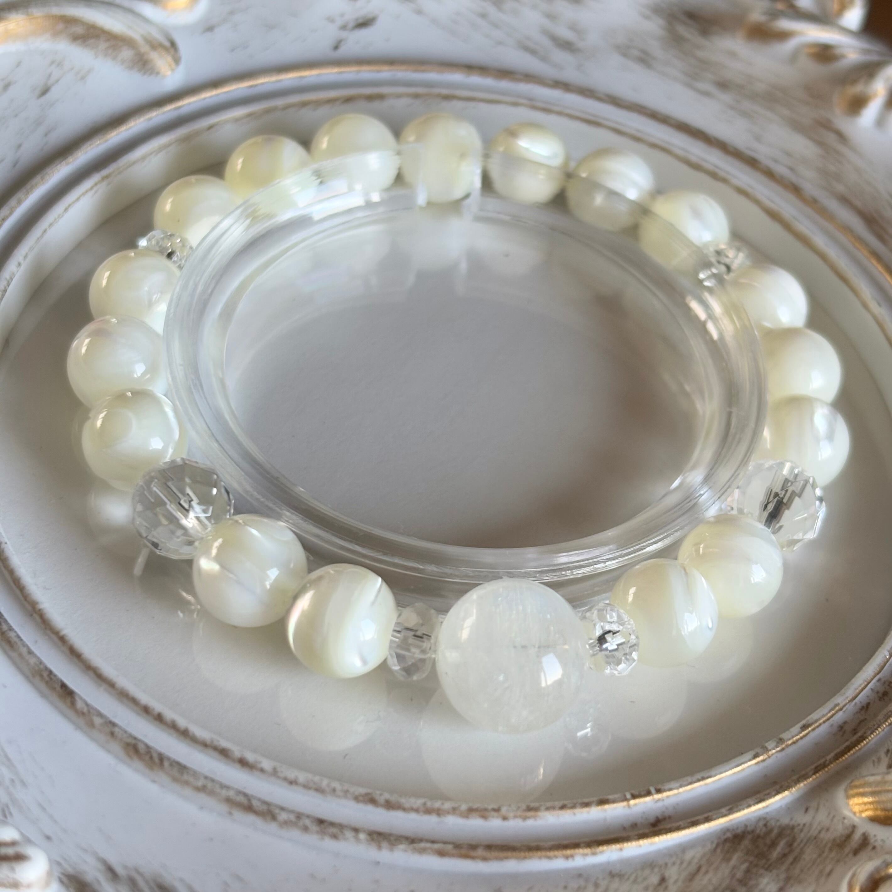 ブレスレット パワーストーン パワーストーンブレスレット 天然石 天然石ブレスレット マザーオブパール ムーンストーン 水晶 女性性を高める 白いブレスレット 女性のお守りブレスレット 母性愛 恋愛運