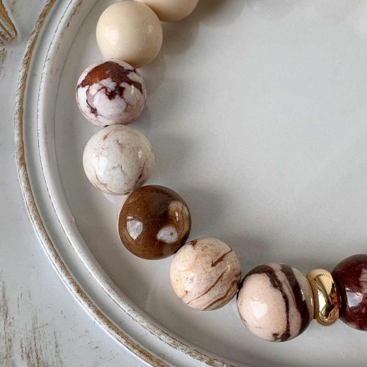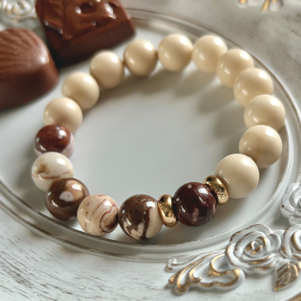 再販!カプチーノ♥ホワイトチョコレートのような天然石デザインブレスレット(リバーストーン×カプチーノジャスパー)